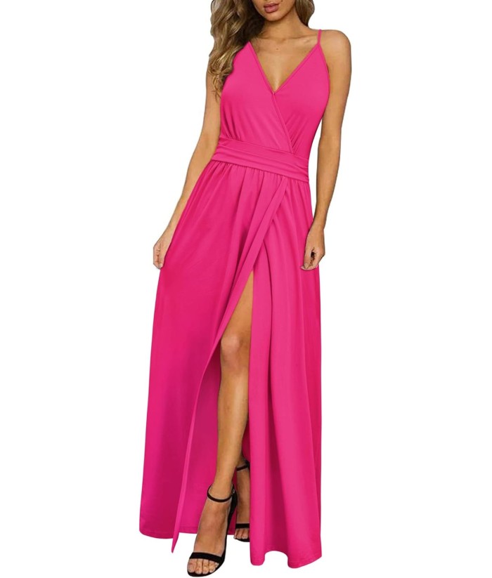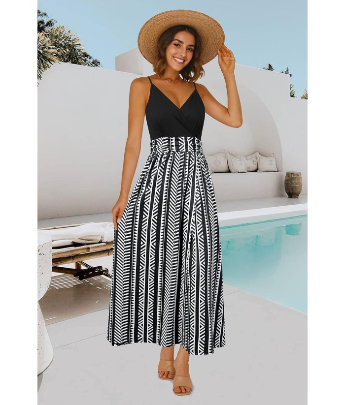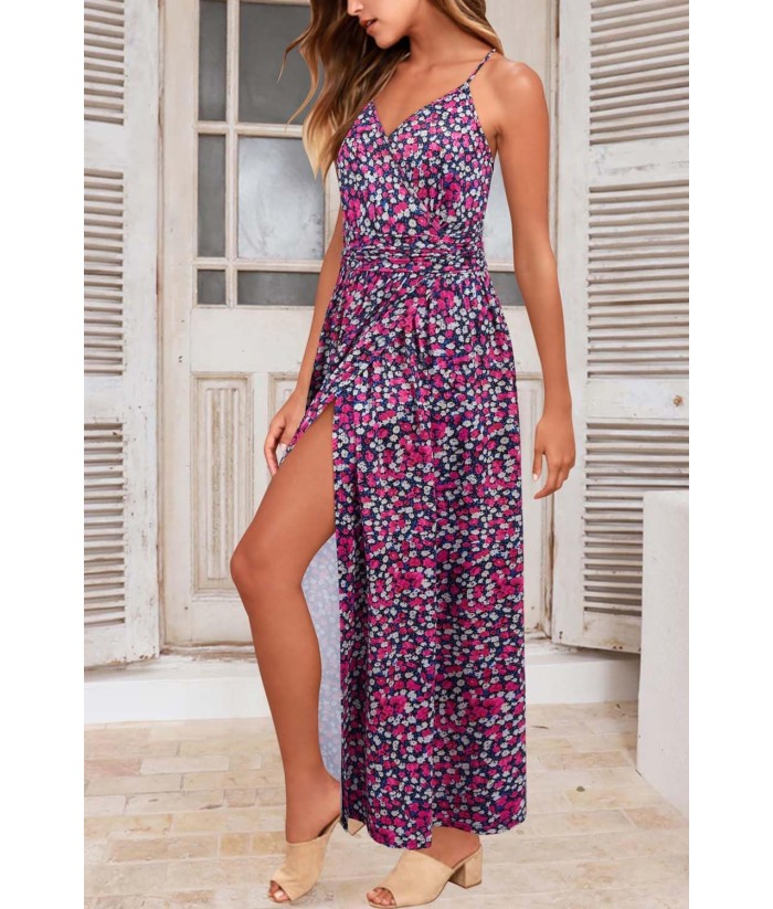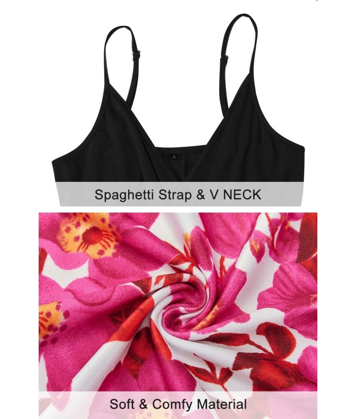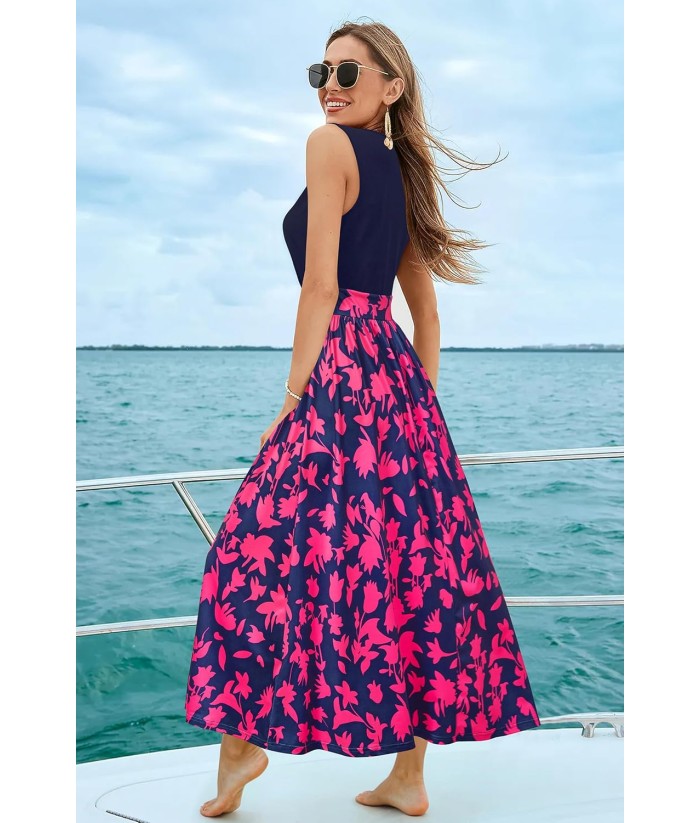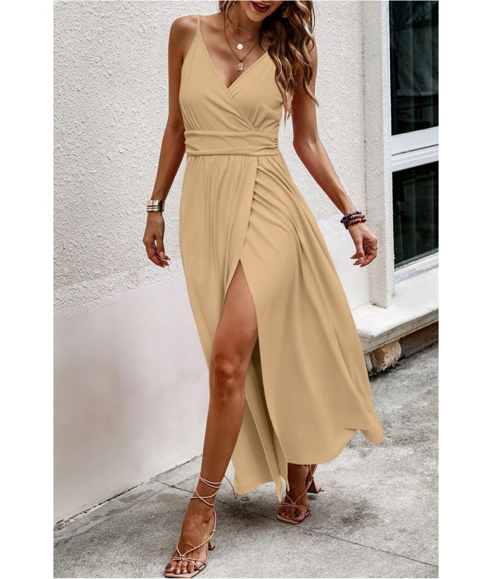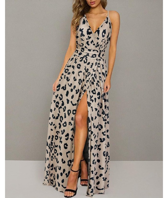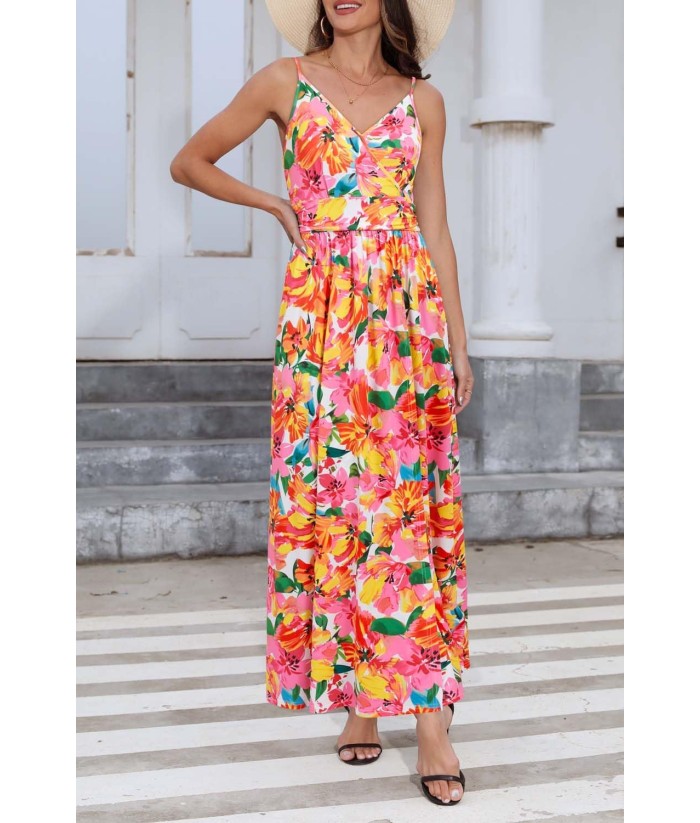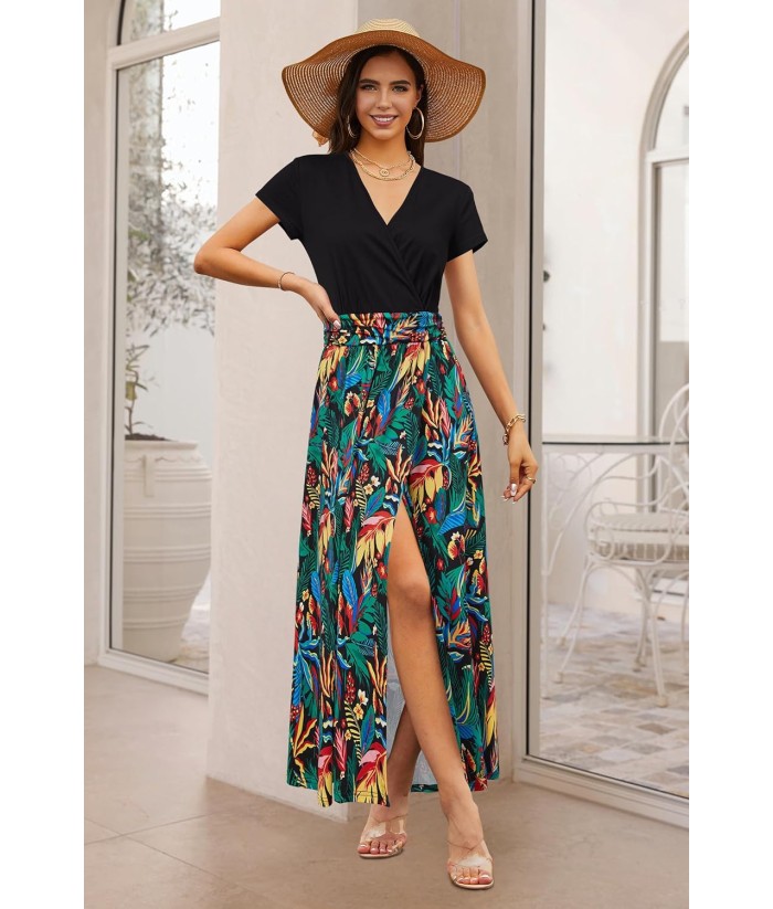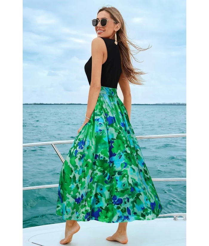 Newshows Women Summer 2025 Maxi Dress Vacation Floral Spaghetti Strap Spring Casual Boho Split Beach Long Flowy Sundress