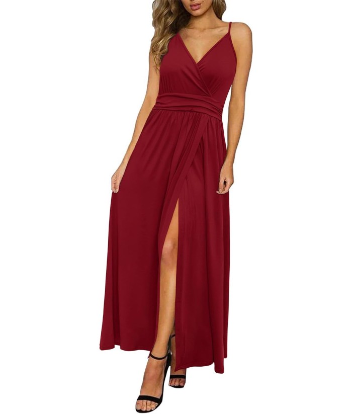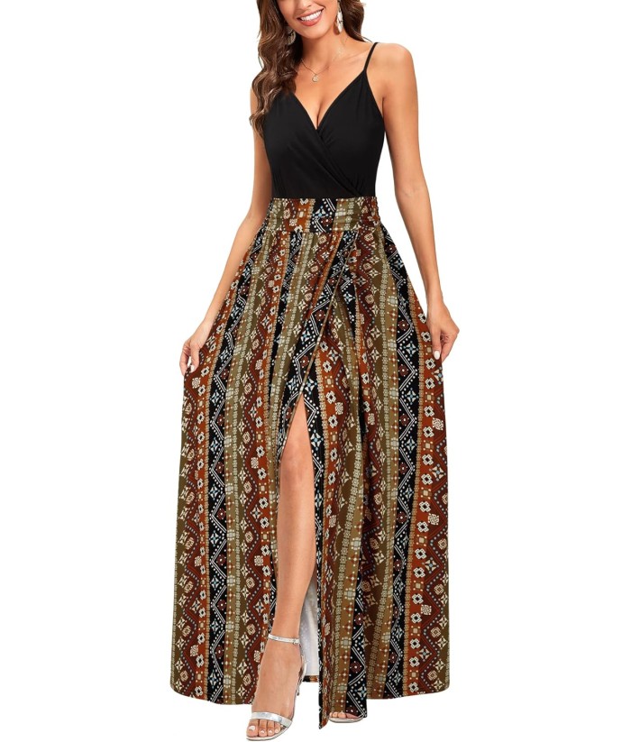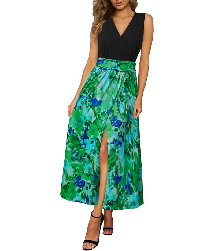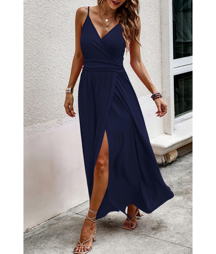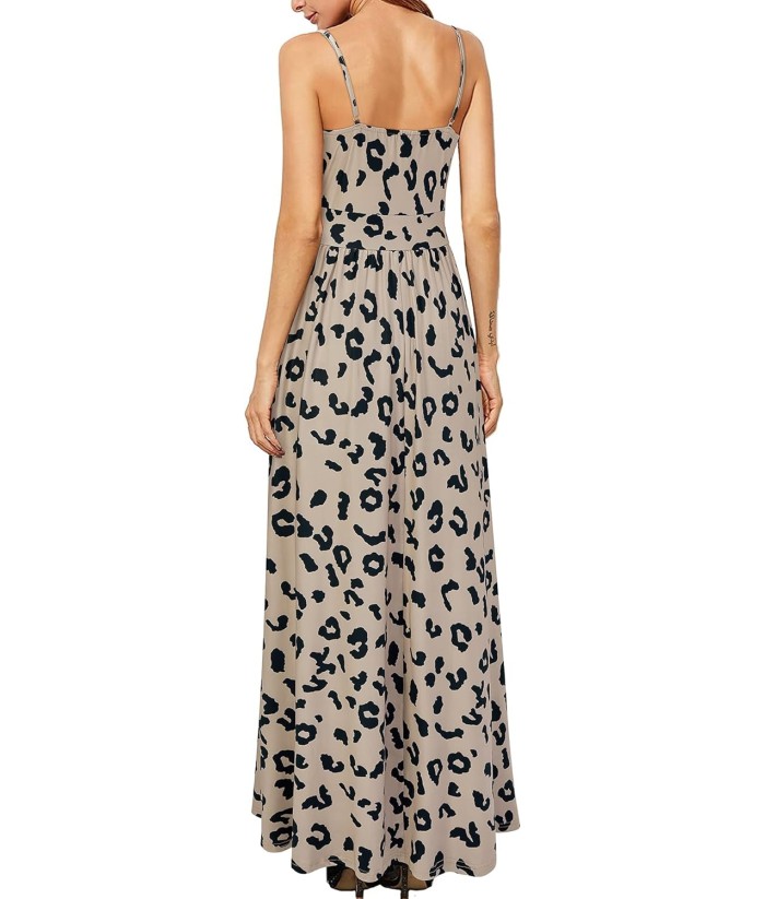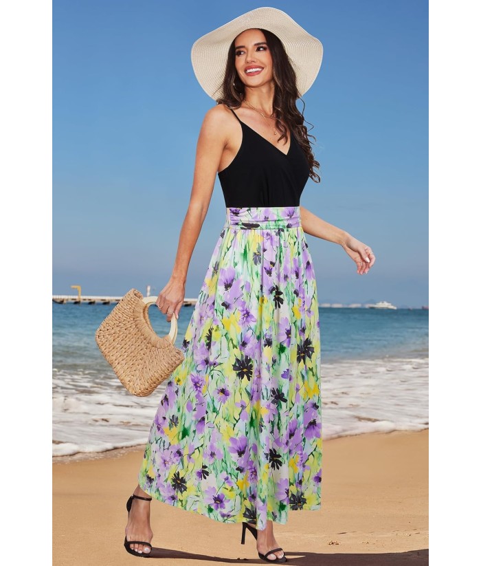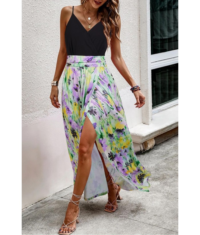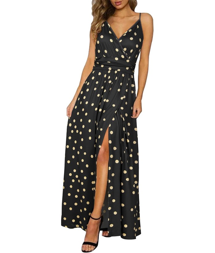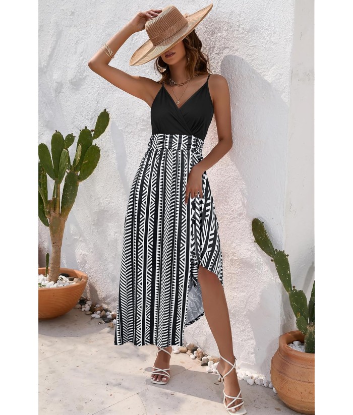 Newshows Women Summer 2025 Maxi Dress Vacation Floral Spaghetti Strap Spring Casual Boho Split Beach Long Flowy Sundress