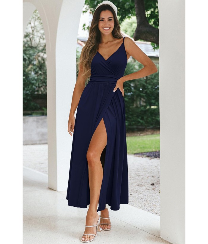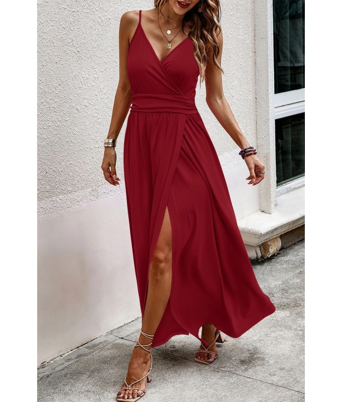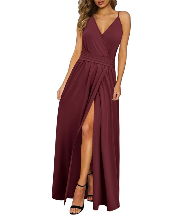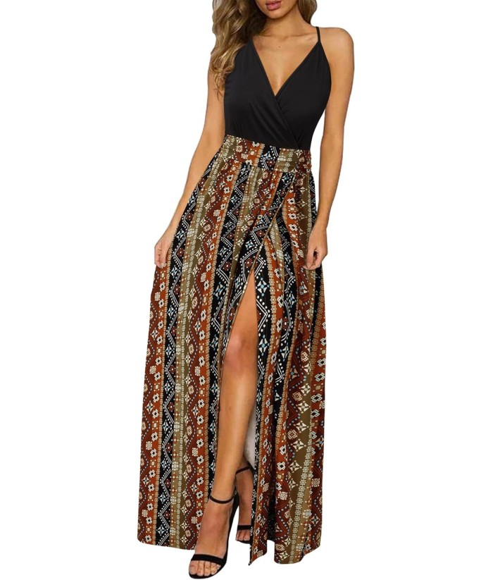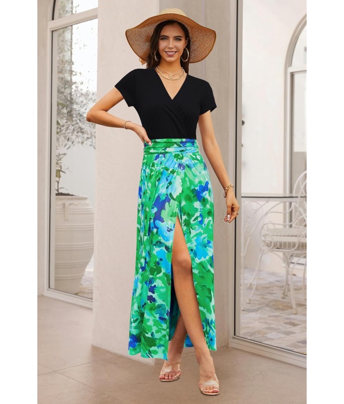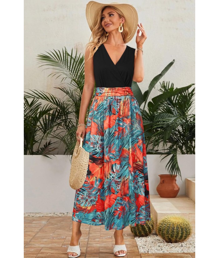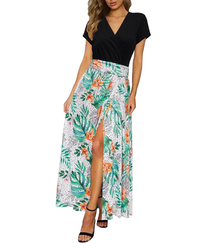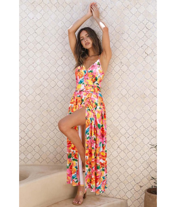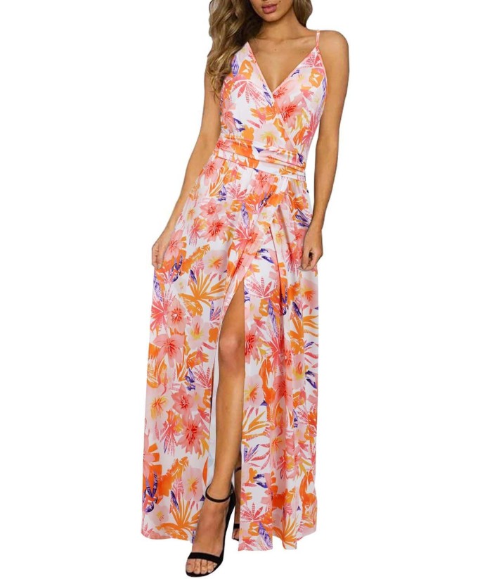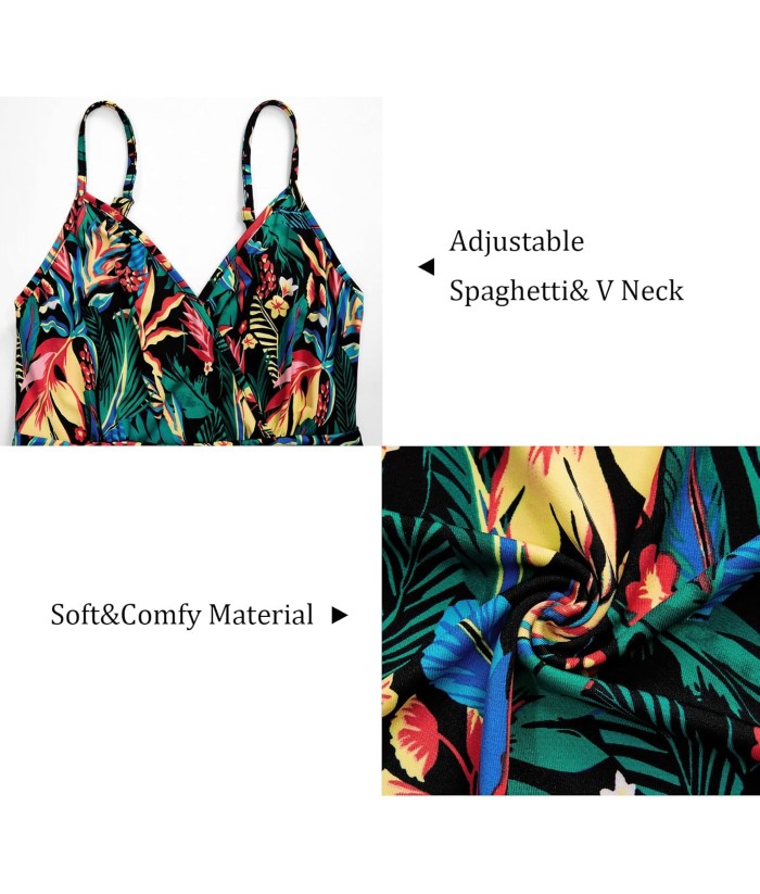 Newshows Women Summer 2025 Maxi Dress Vacation Floral Spaghetti Strap Spring Casual Boho Split Beach Long Flowy Sundress