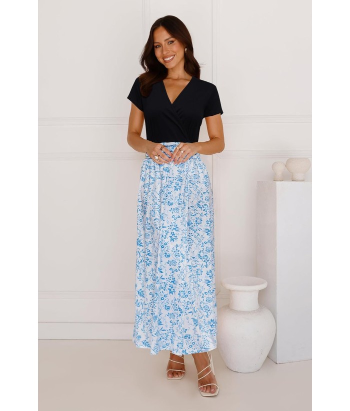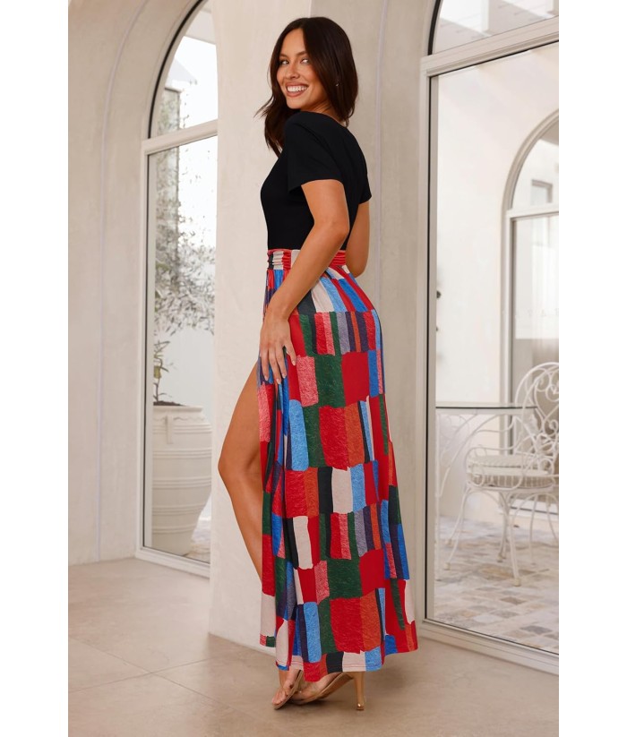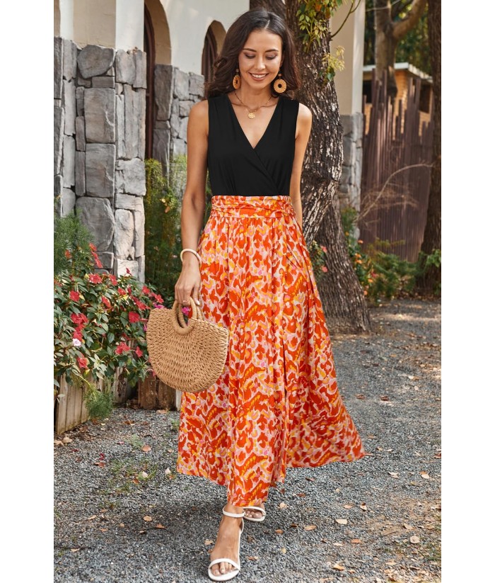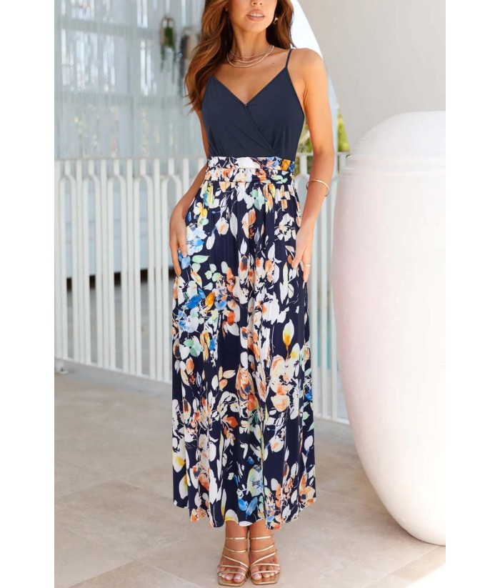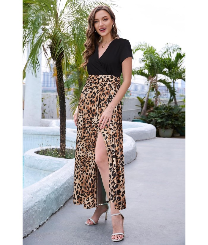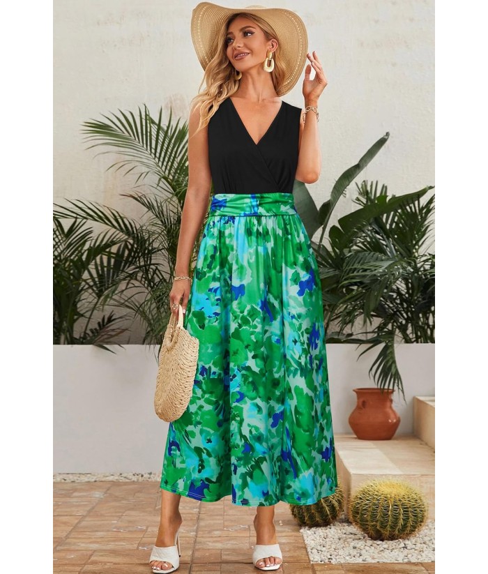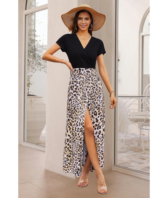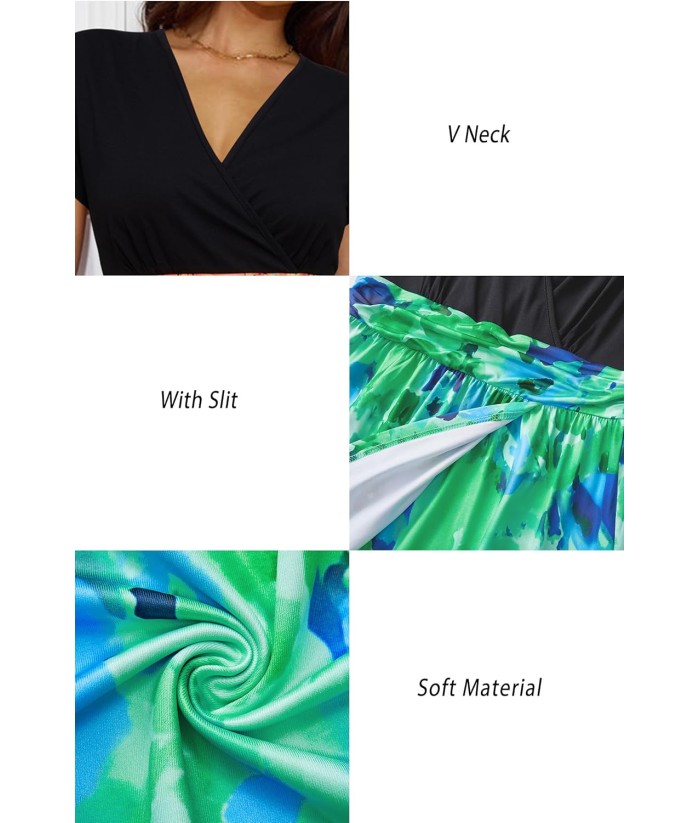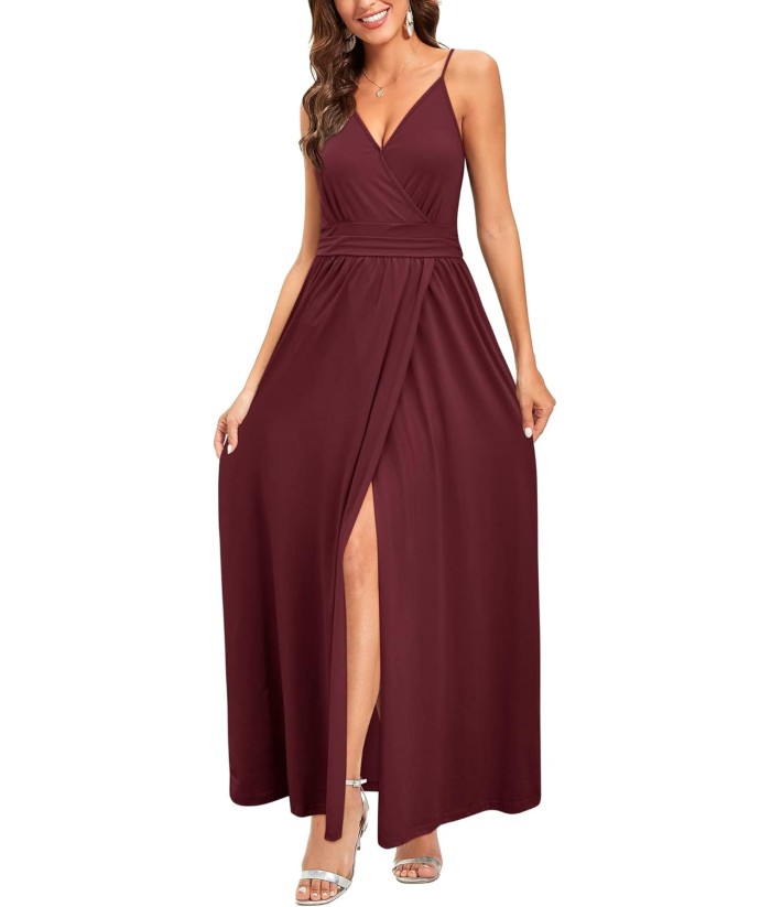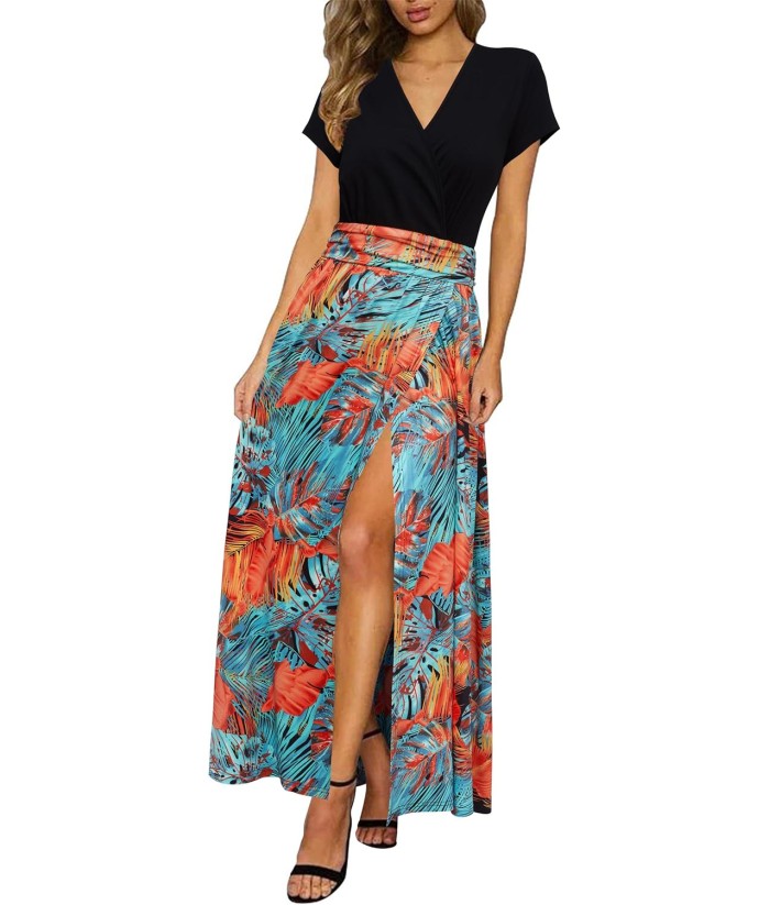 Newshows Women Summer 2025 Maxi Dress Vacation Floral Spaghetti Strap Spring Casual Boho Split Beach Long Flowy Sundress