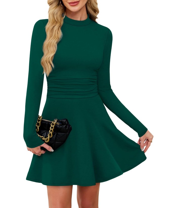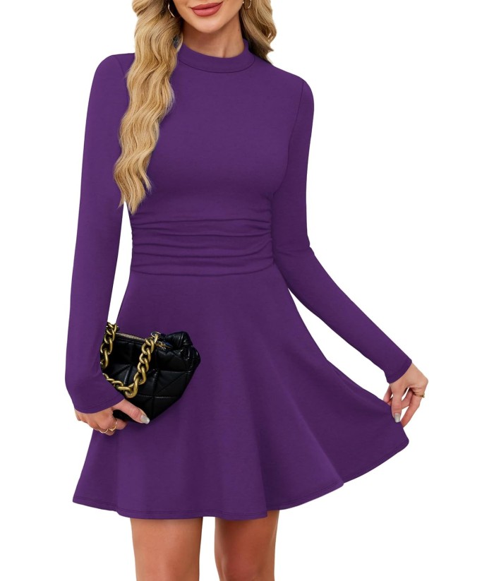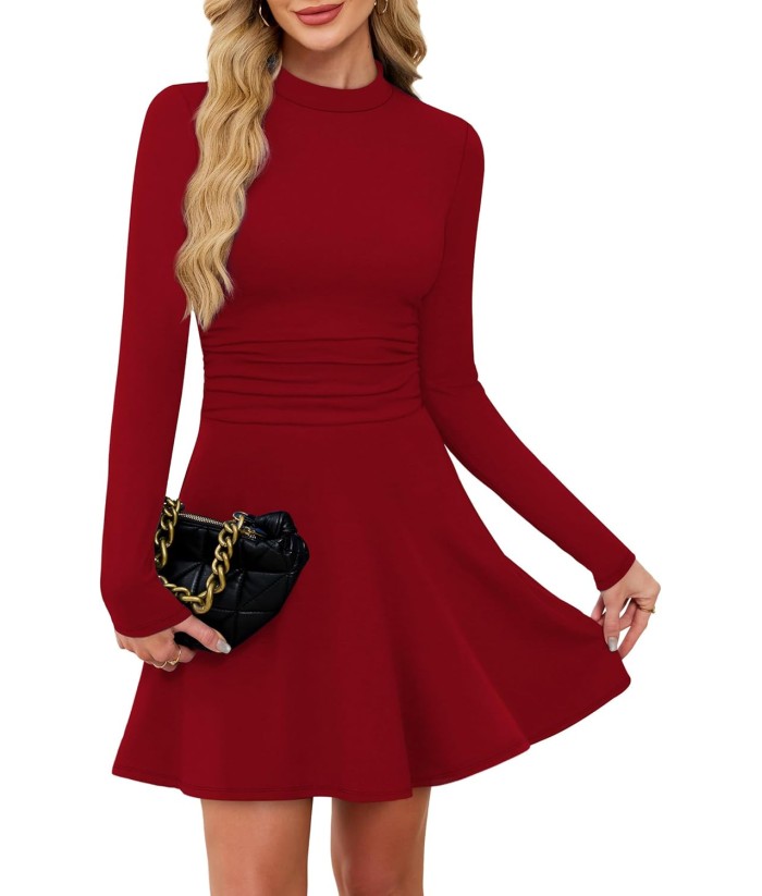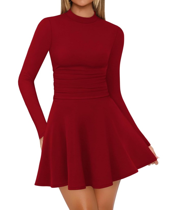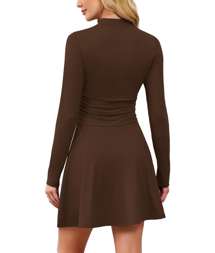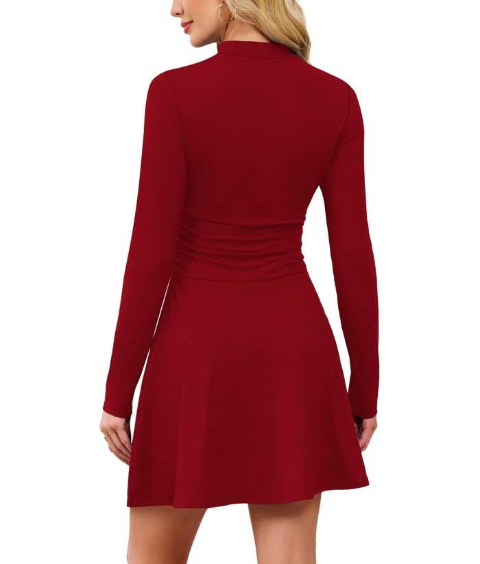OFEEFAN Long Sleeve Dress Fall Homecoming Formal Party Club Mini Dresses Date Outfits