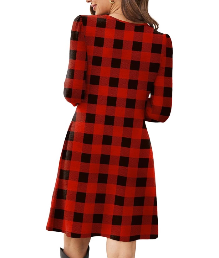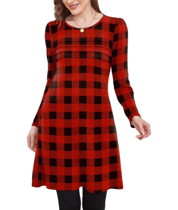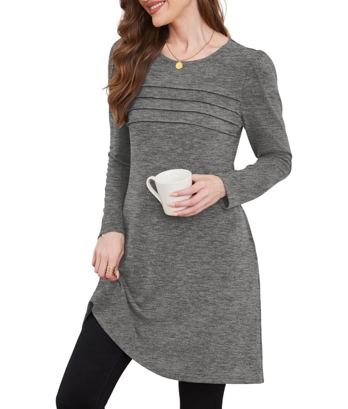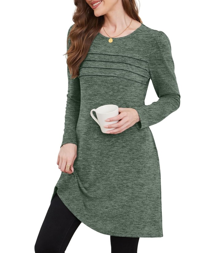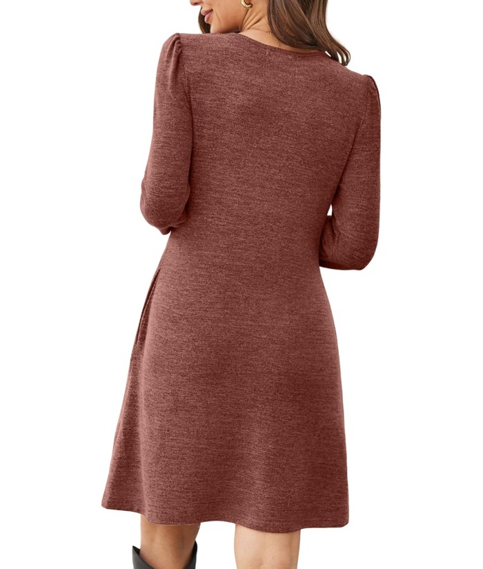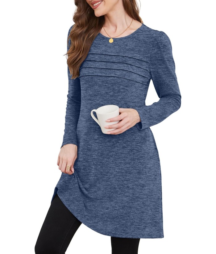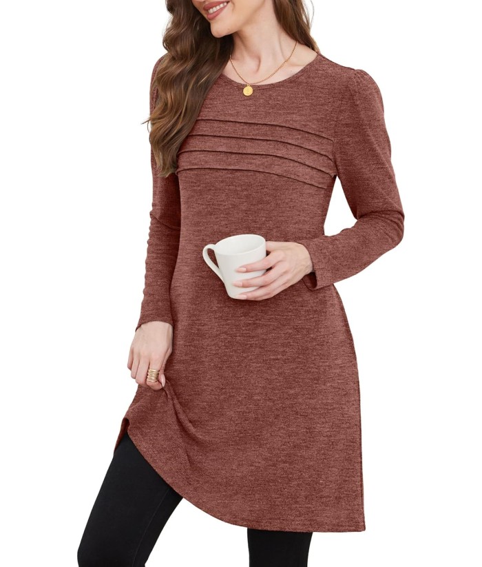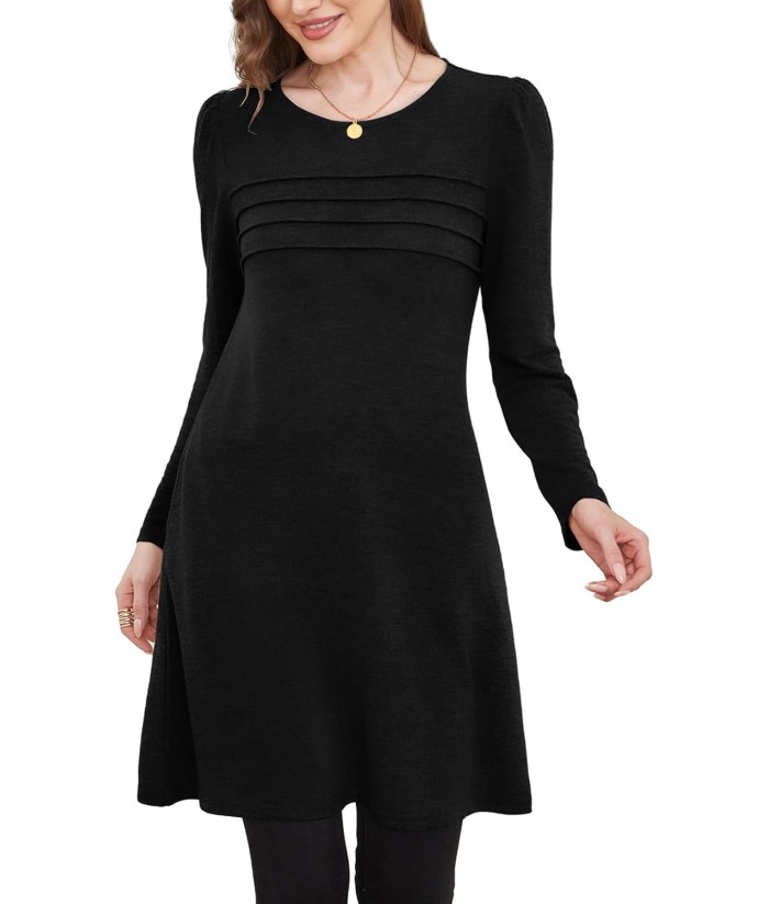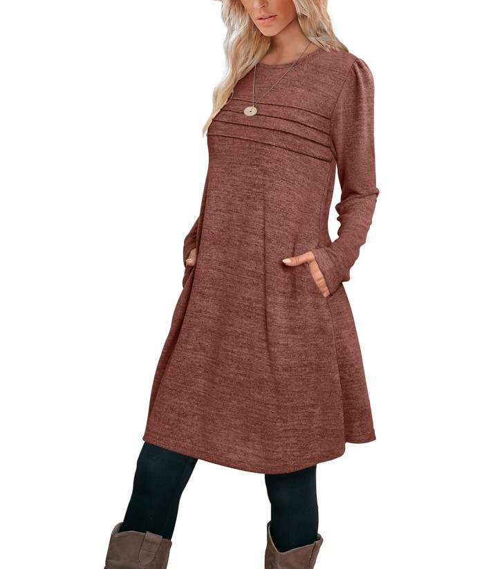 OFEEFAN Womens Long Sleeve Tunic Dress Fall Fashion Sweater Dress with Pockets Pleated Front Casual Winter