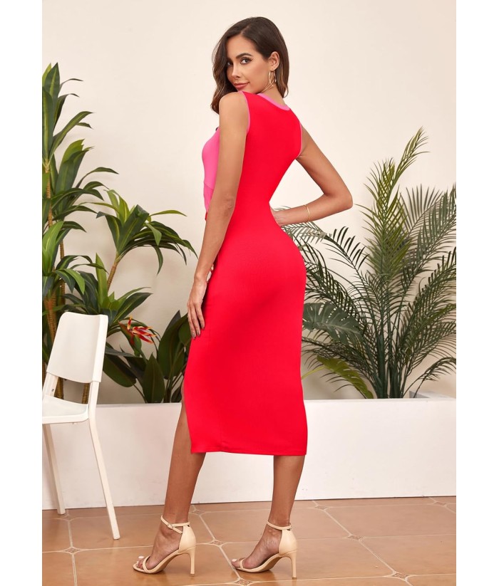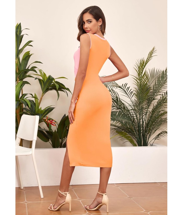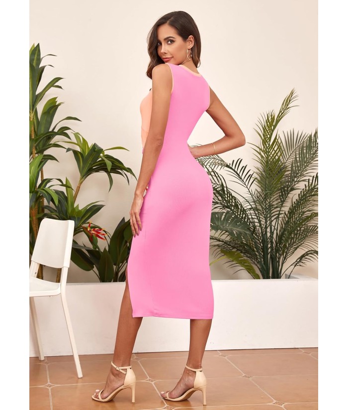 oten Women's Casual Sleeveless Cutout Twist Front Side Slit Ribbed Knit Party Bodycon Midi Dresses