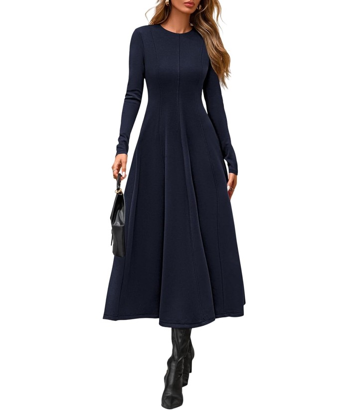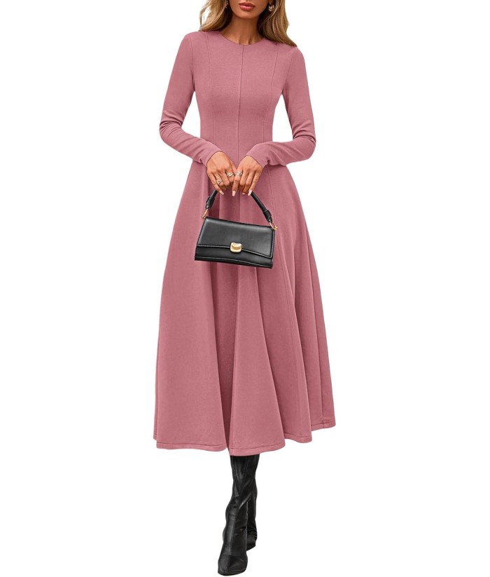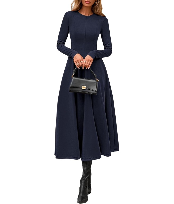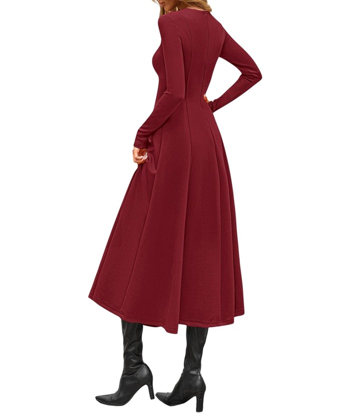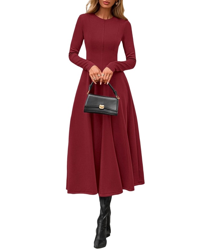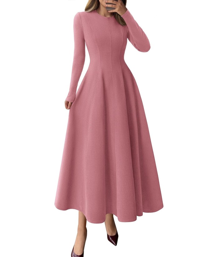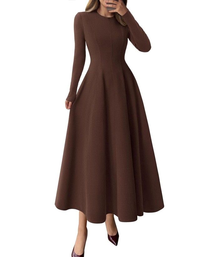 PRETTYGARDEN Cocktail Dresses for Women 2025 Elegant Classy Fall Long Sleeve Midi A Line Flowy Modest Winter Party Dress