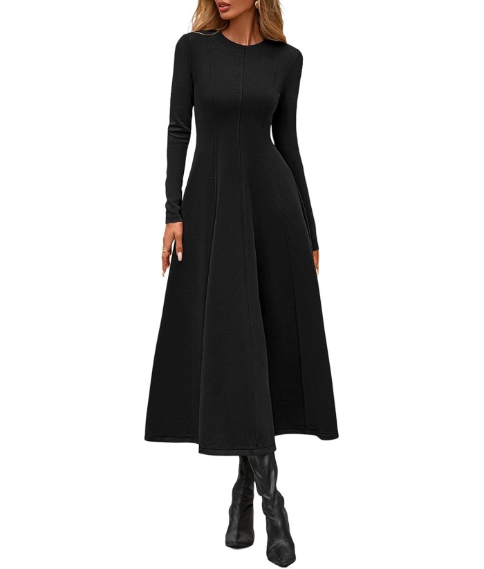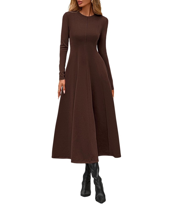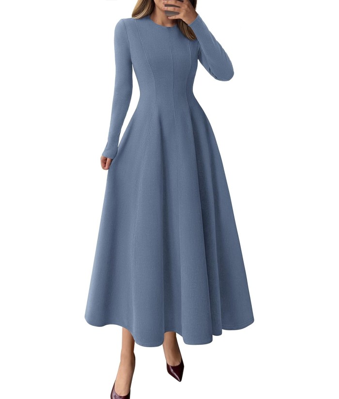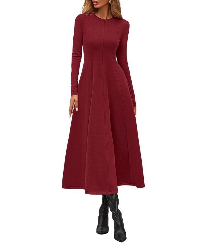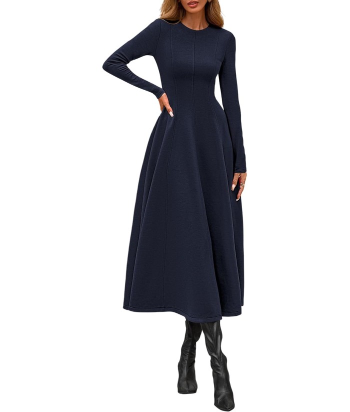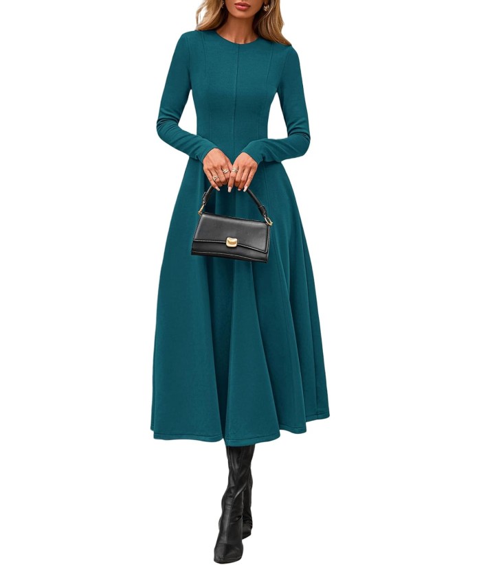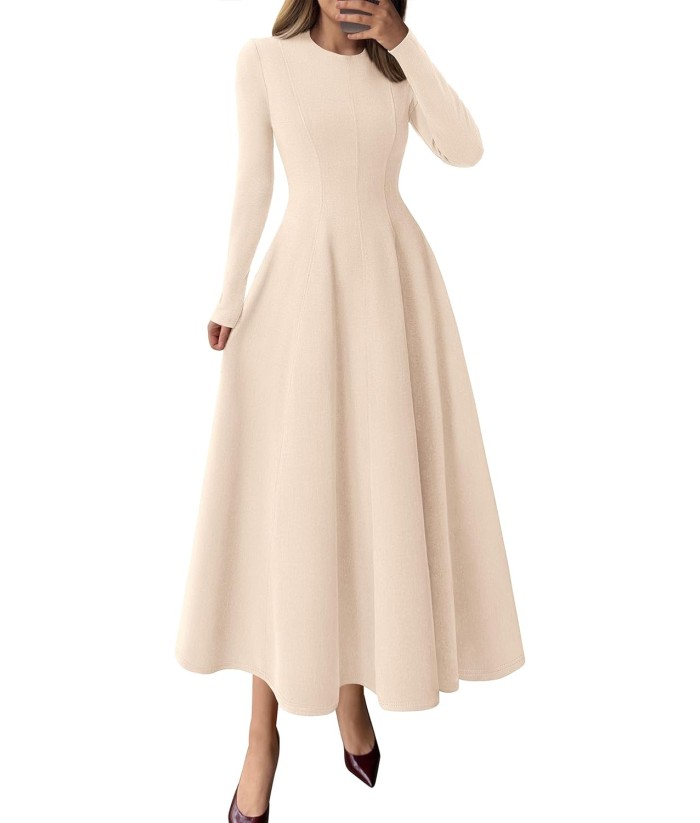 PRETTYGARDEN Cocktail Dresses for Women 2025 Elegant Classy Fall Long Sleeve Midi A Line Flowy Modest Winter Party Dress