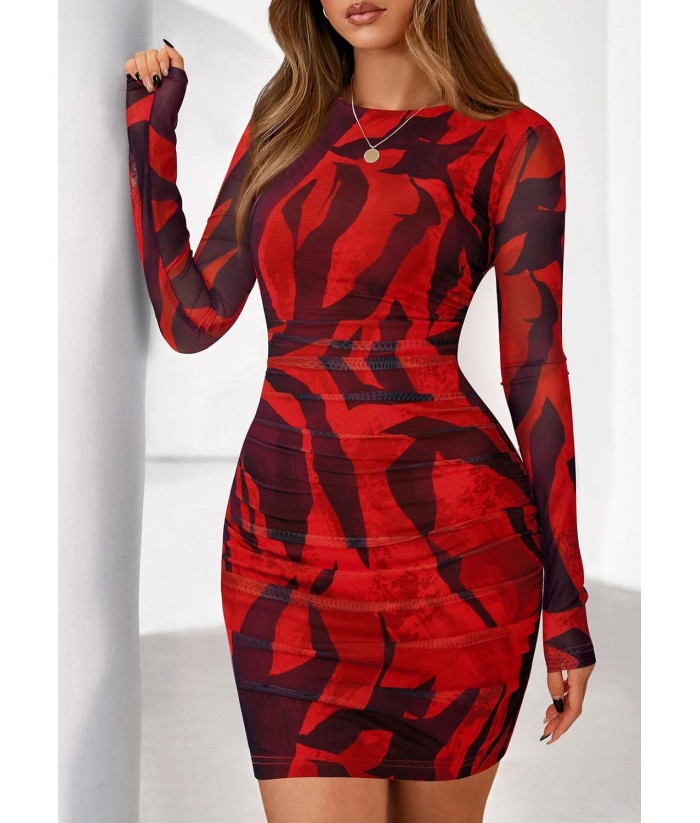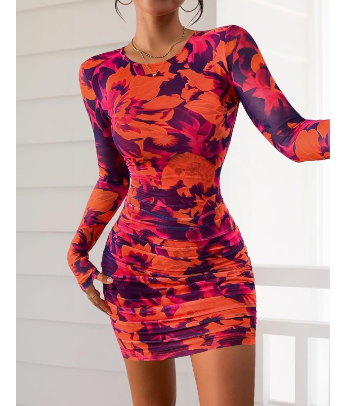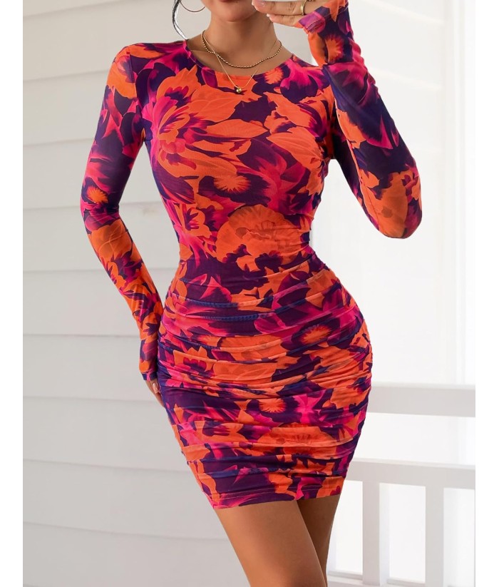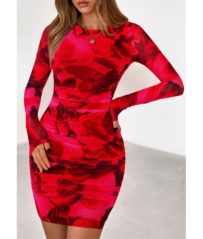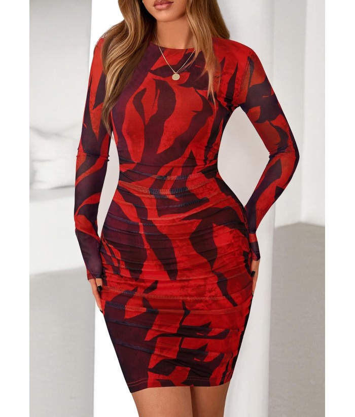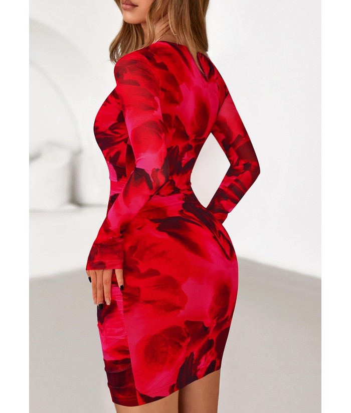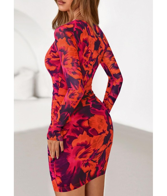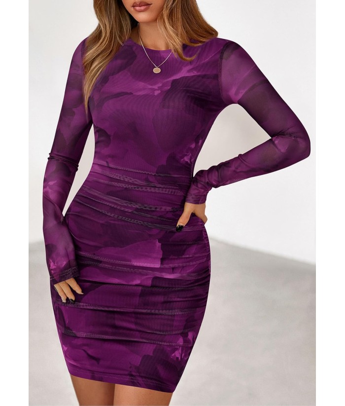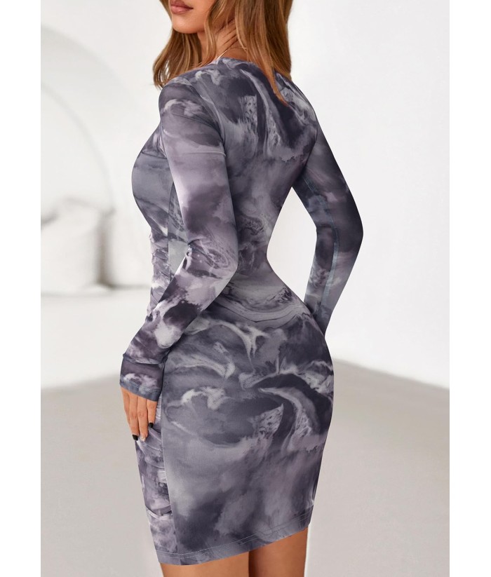 PRETTYGARDEN Women Long Sleeve Mini Fall Dress 2025 Tie Dye Print Bodycon Cocktail Party Club Outfits Homecoming Dresses