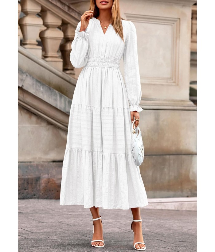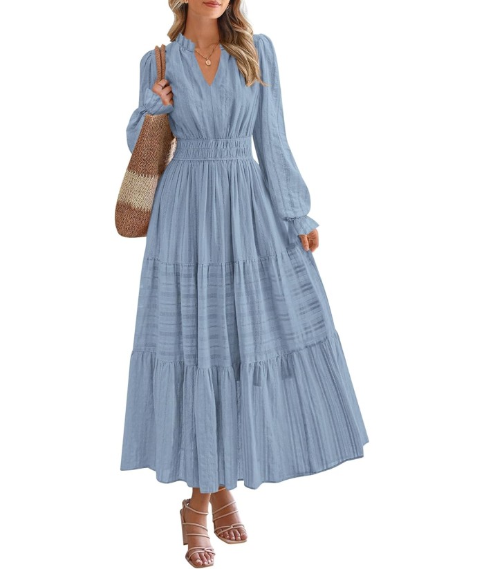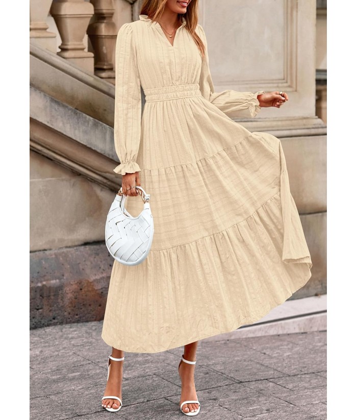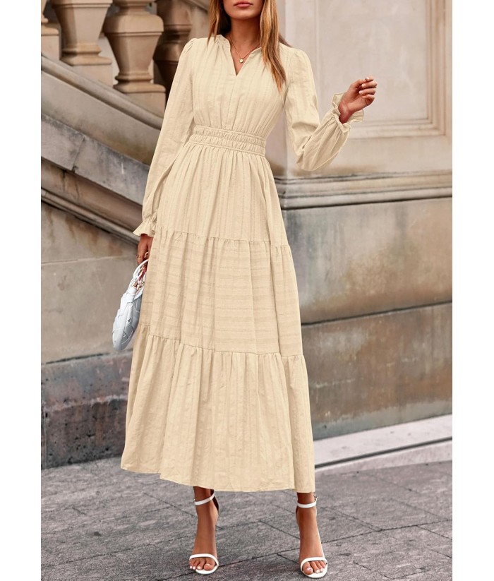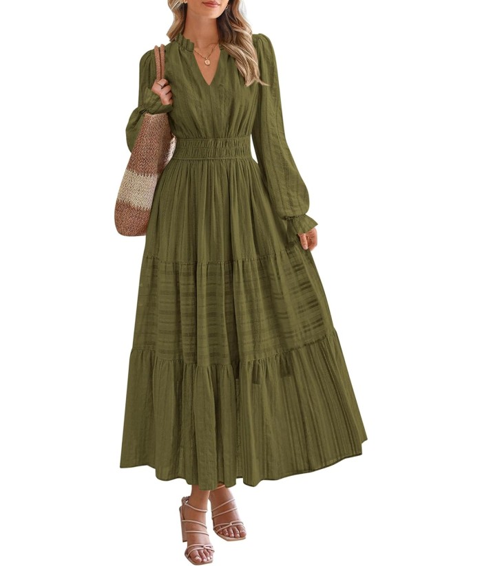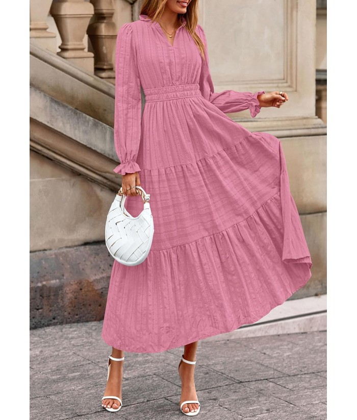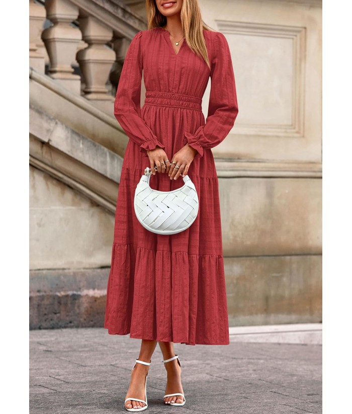 PRETTYGARDEN Women's 2025 Fall Wedding Guest Dresses Long Sleeve V Neck Flowy Elegant Holiday Party Maxi Dress with Pockets