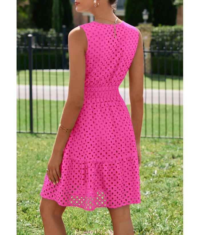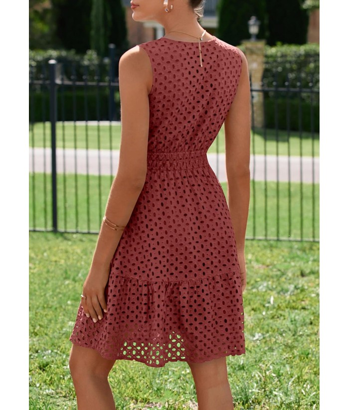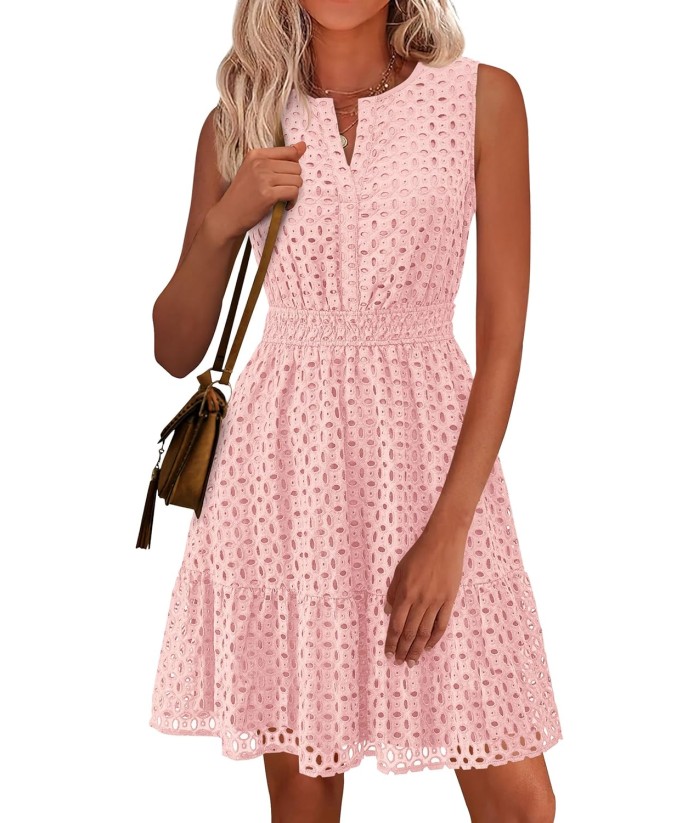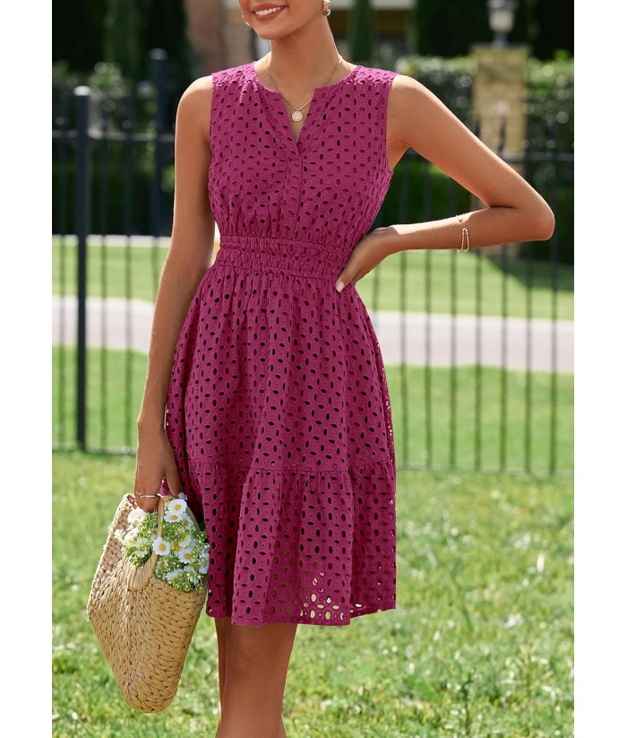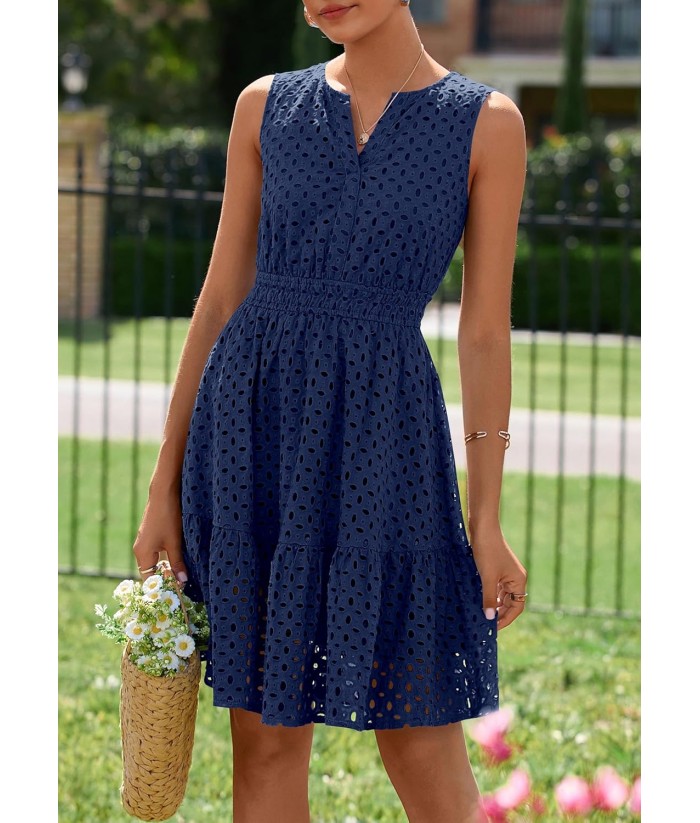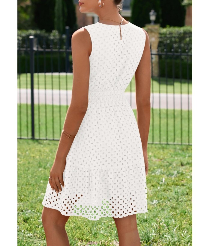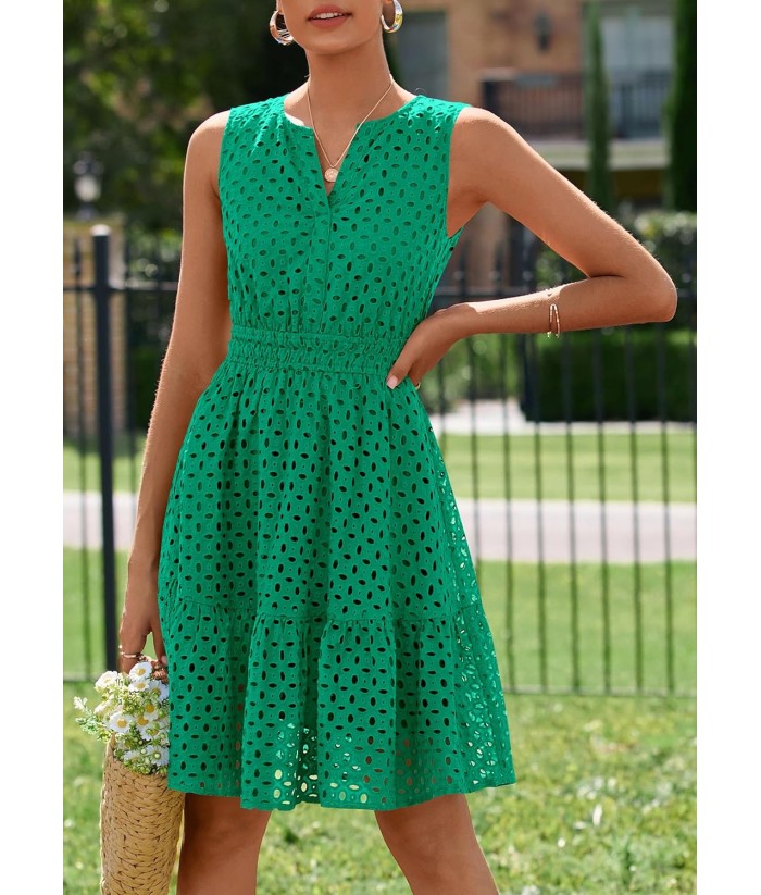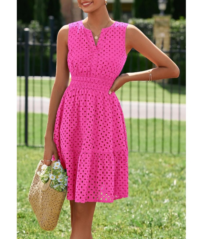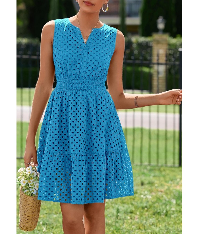 PRETTYGARDEN Women's Summer Dresses 2025 Sleeveless V Neck Eyelet Hollow Out Swing A Line Beach Vacation Sun Dress