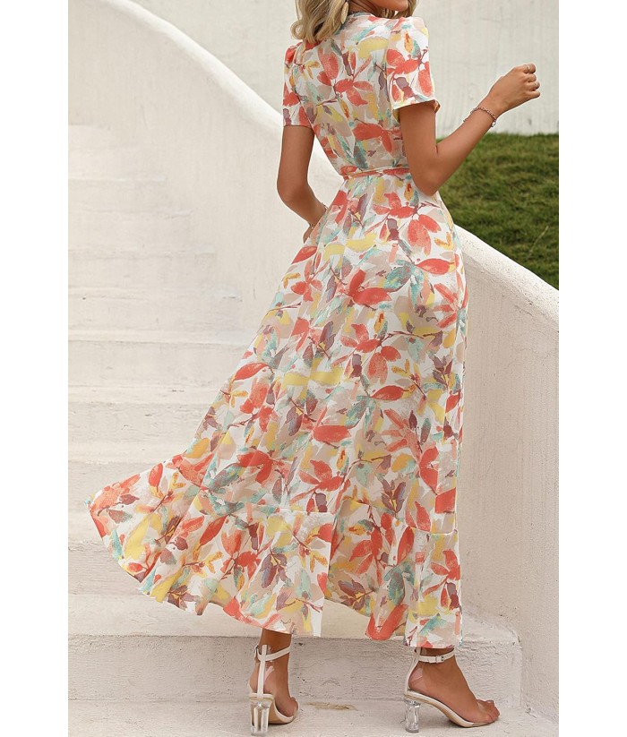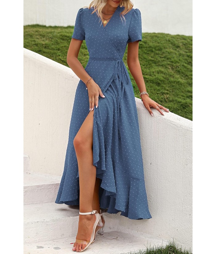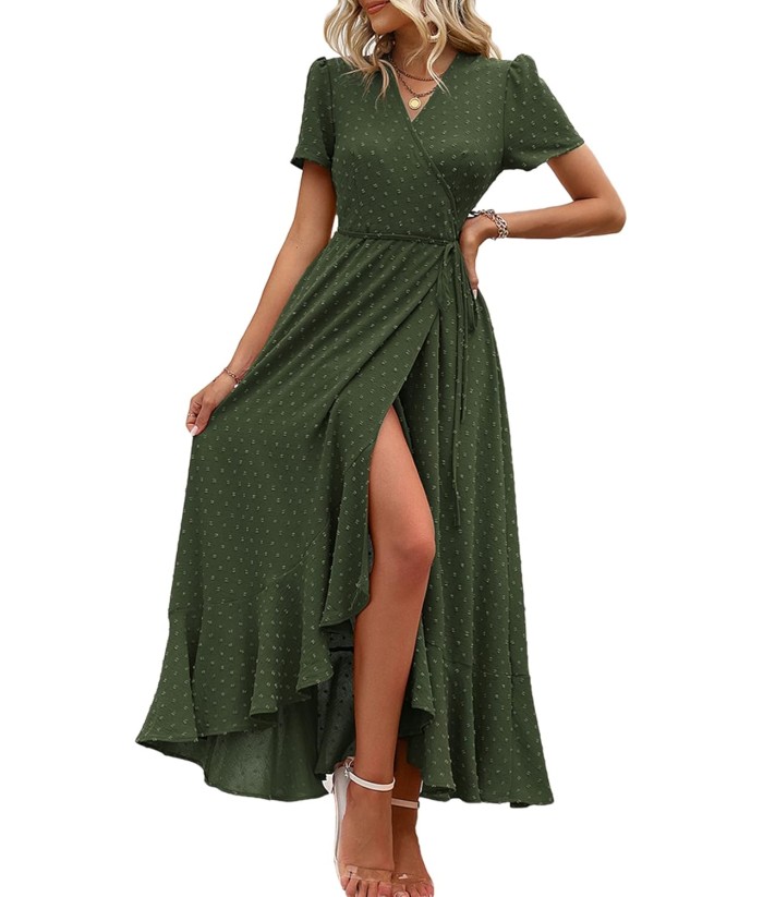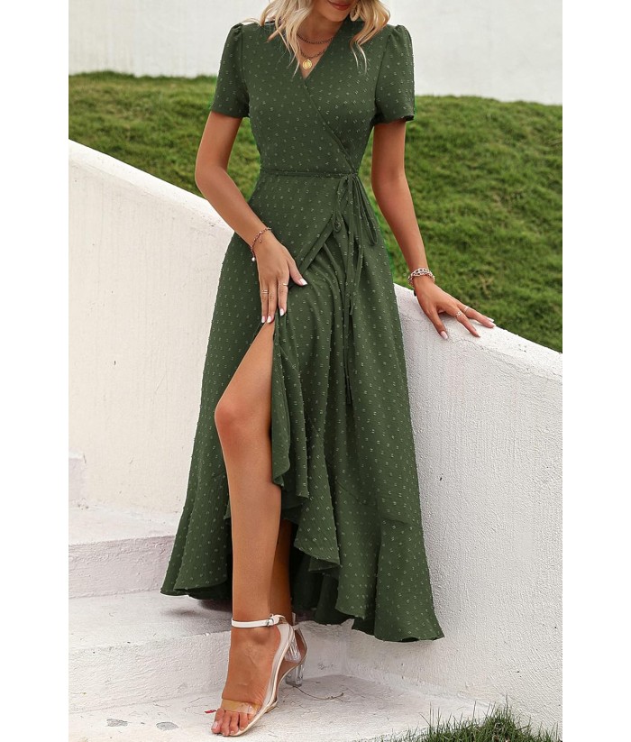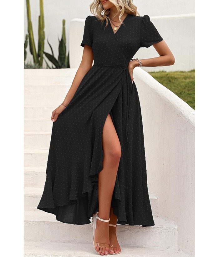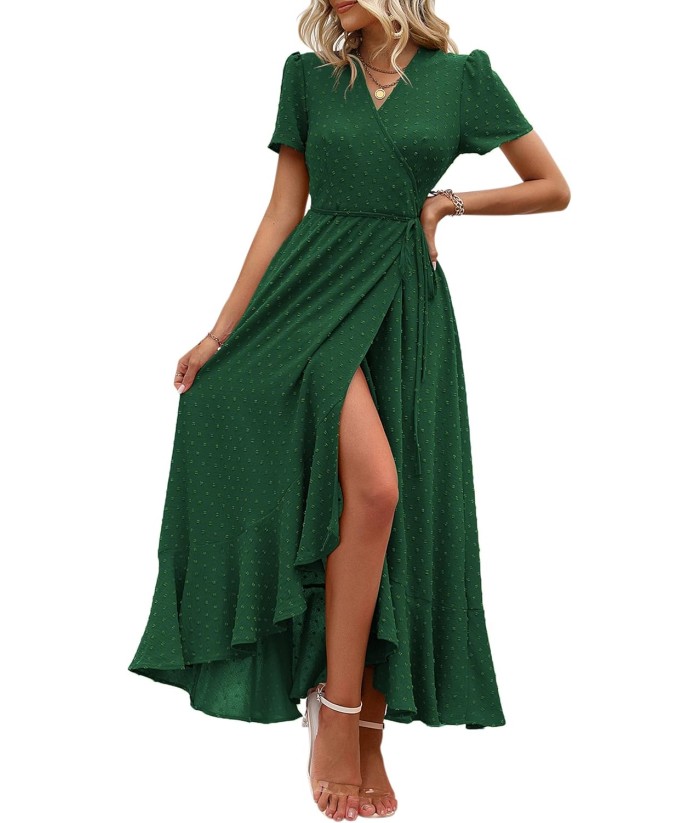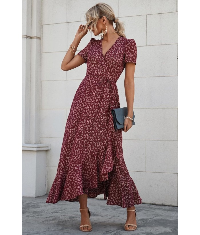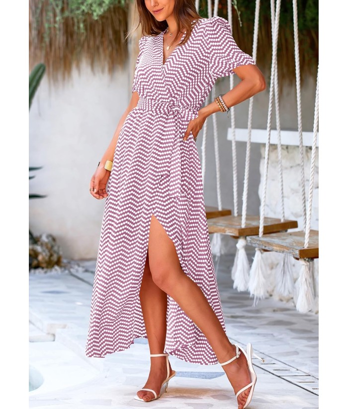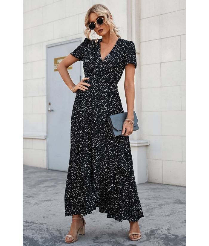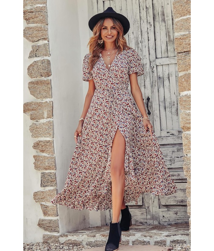 PRETTYGARDEN Women's Summer Maxi Dress Casual Wrap Floral Boho Short Sleeve V Neck Split Ruffle Beach Long Dresses