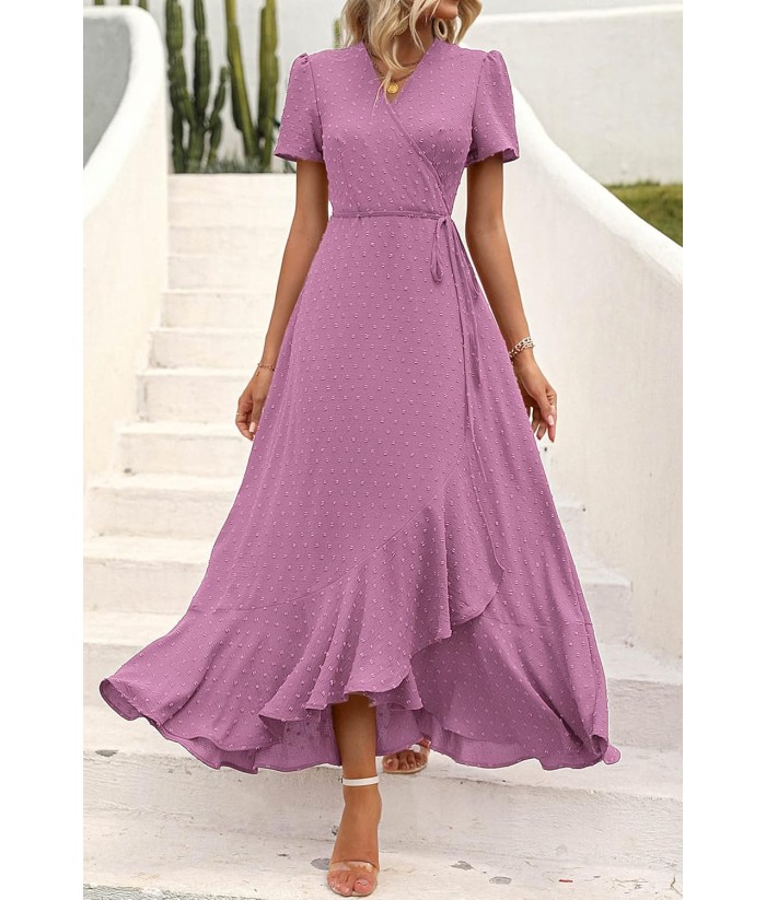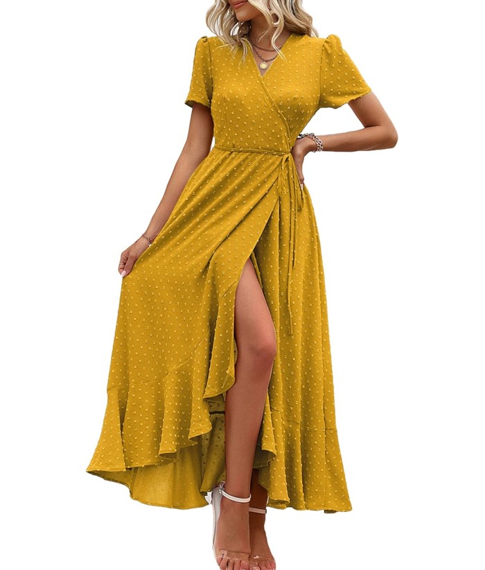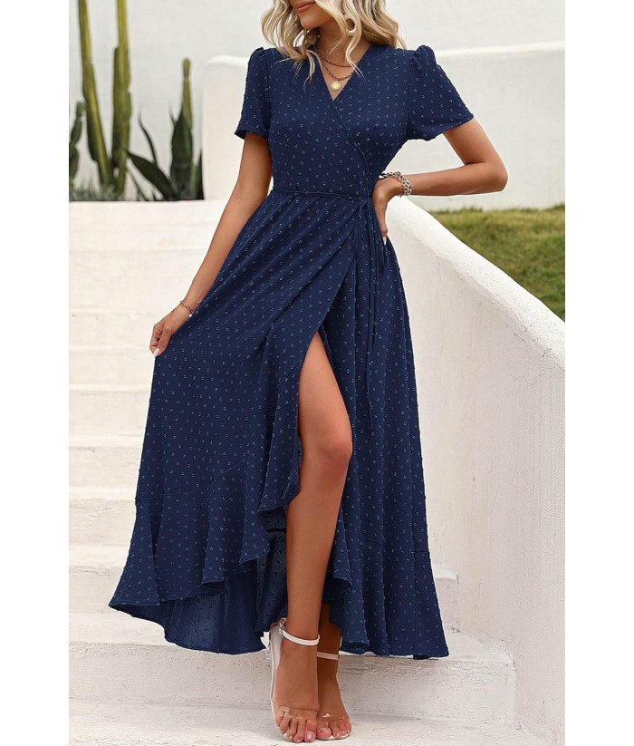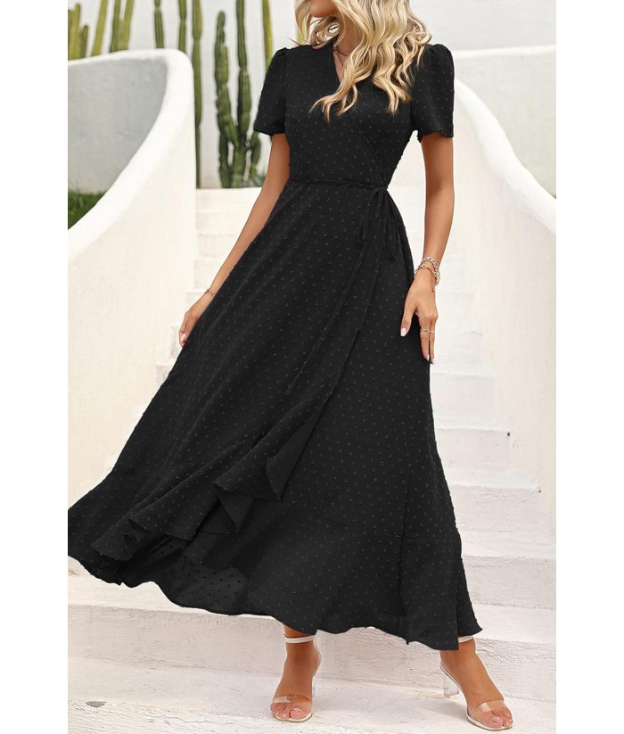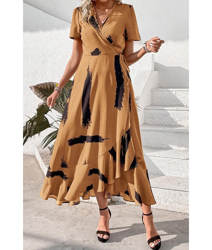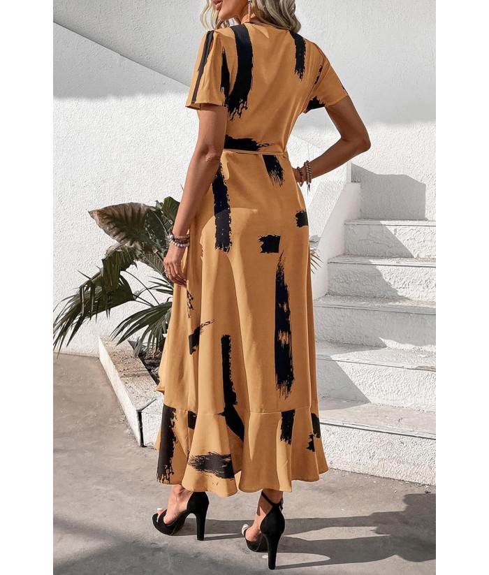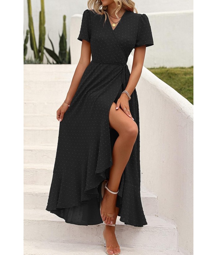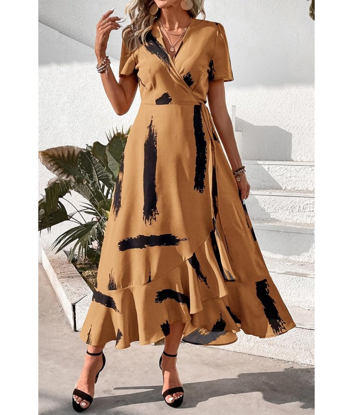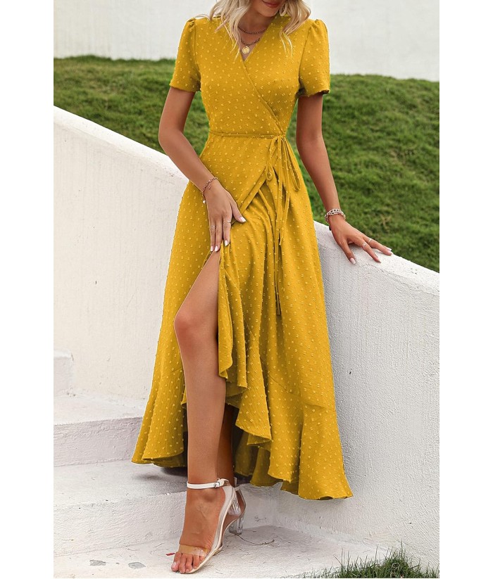 PRETTYGARDEN Women's Summer Maxi Dress Casual Wrap Floral Boho Short Sleeve V Neck Split Ruffle Beach Long Dresses