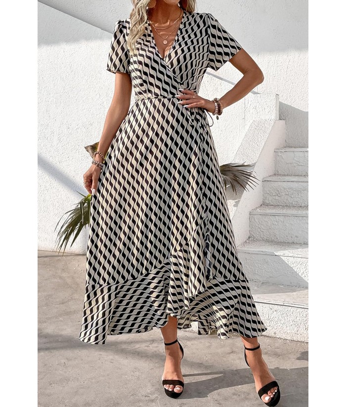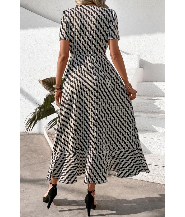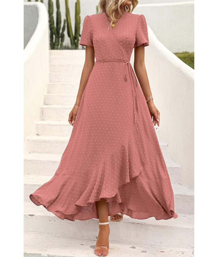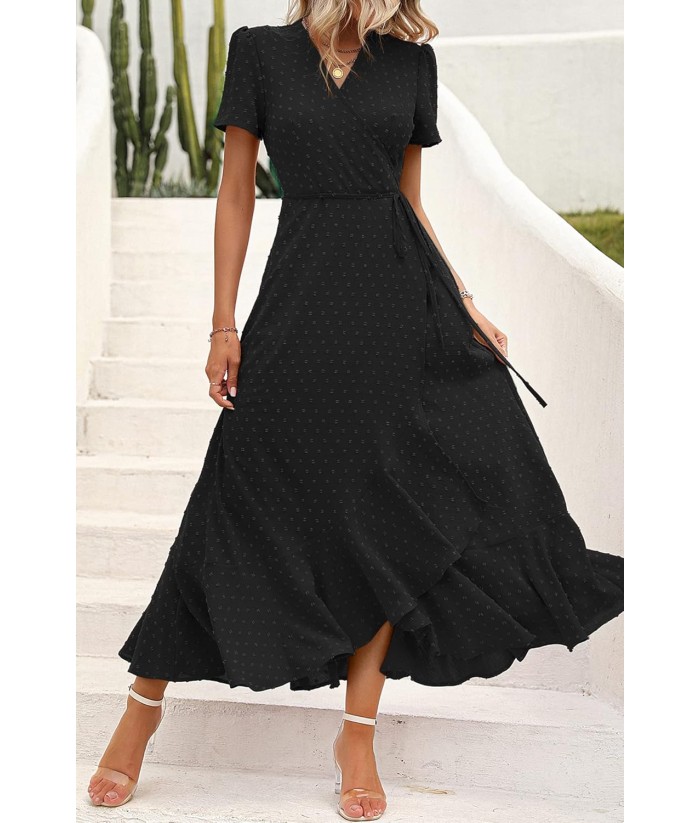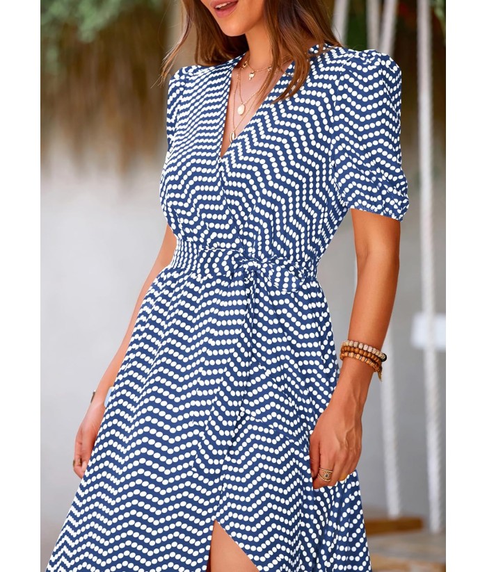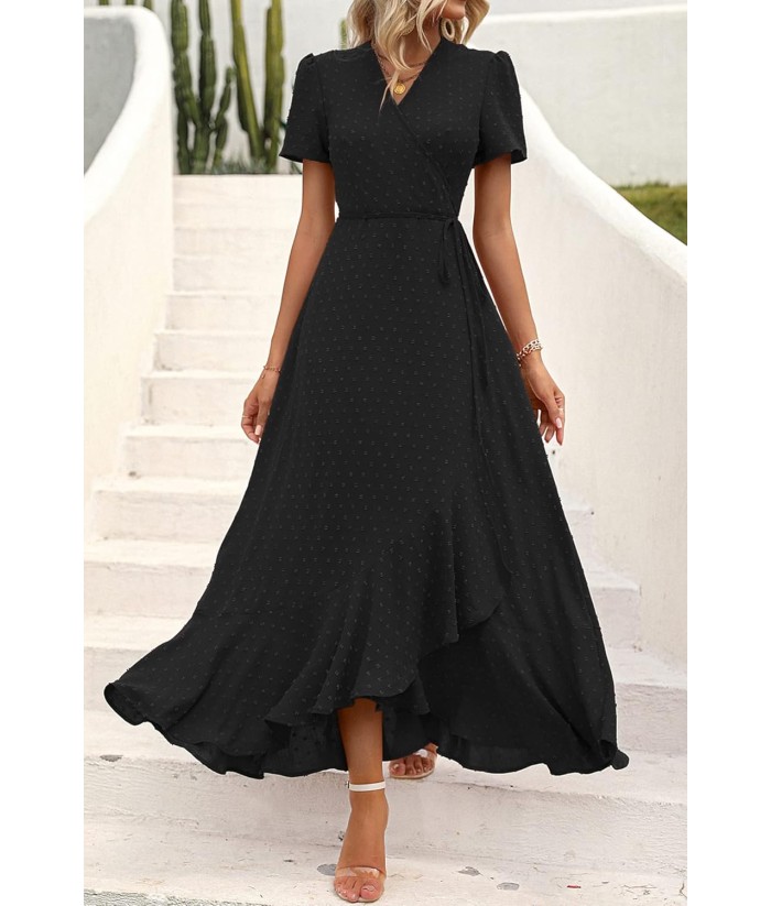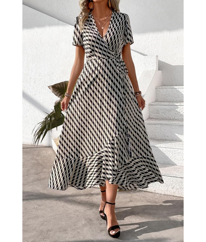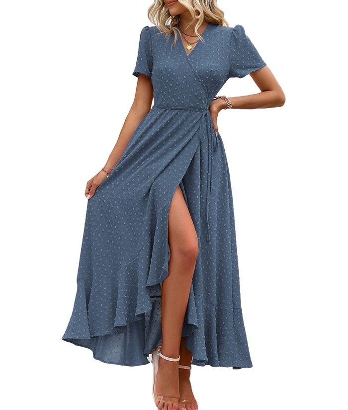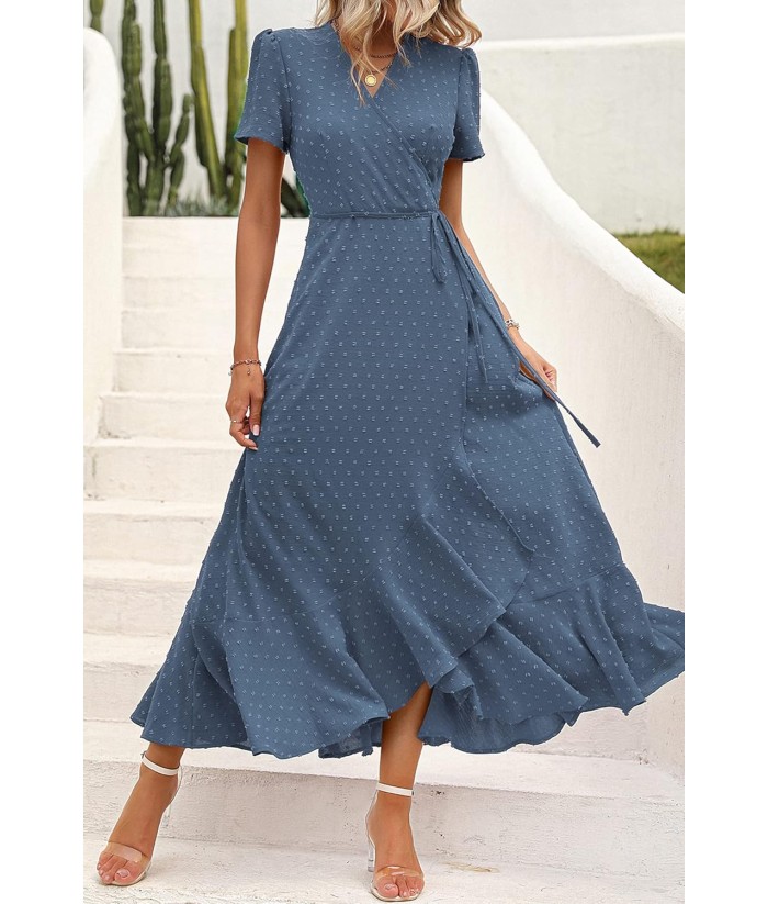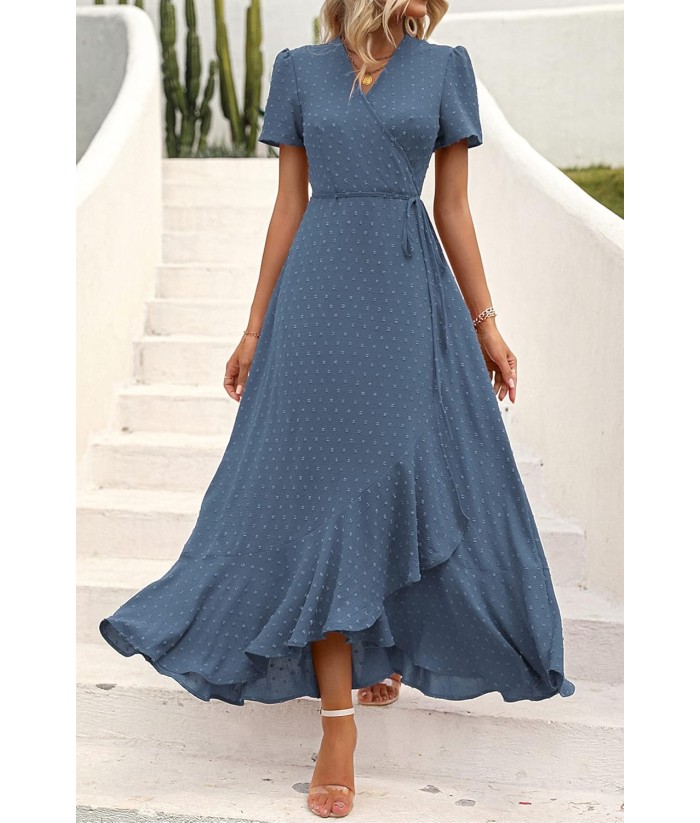 PRETTYGARDEN Women's Summer Maxi Dress Casual Wrap Floral Boho Short Sleeve V Neck Split Ruffle Beach Long Dresses