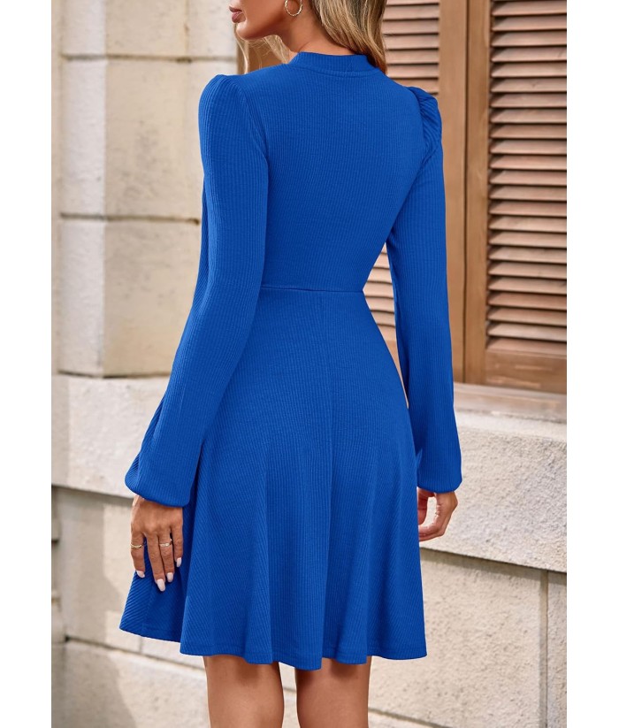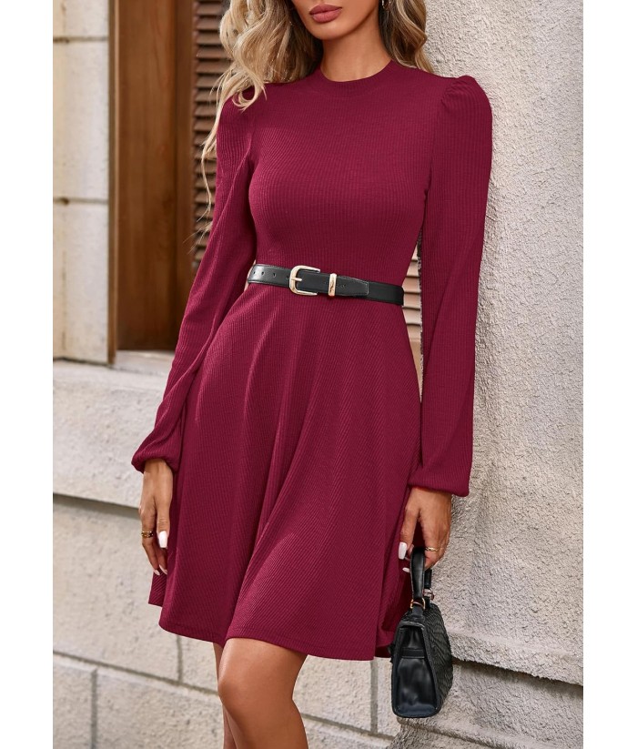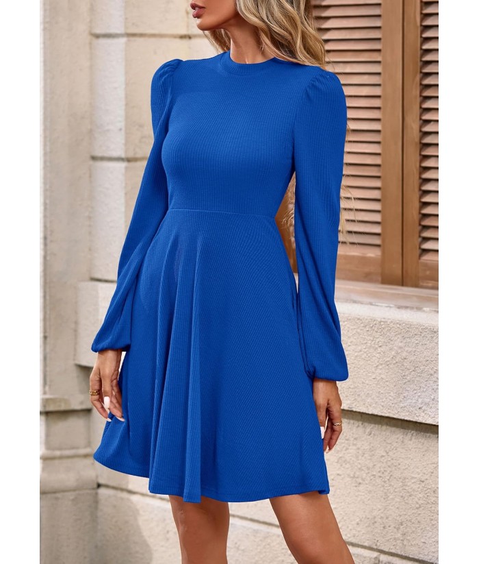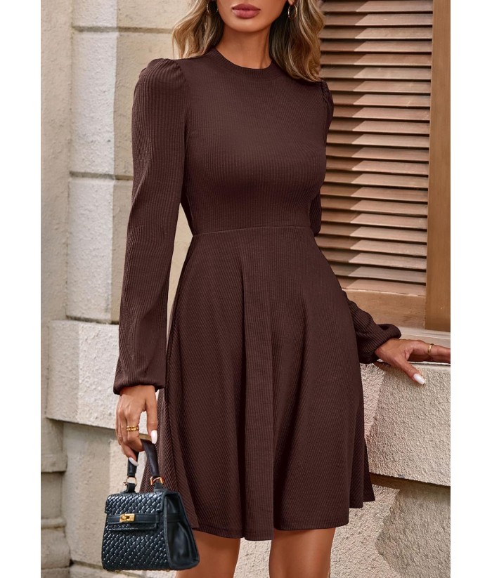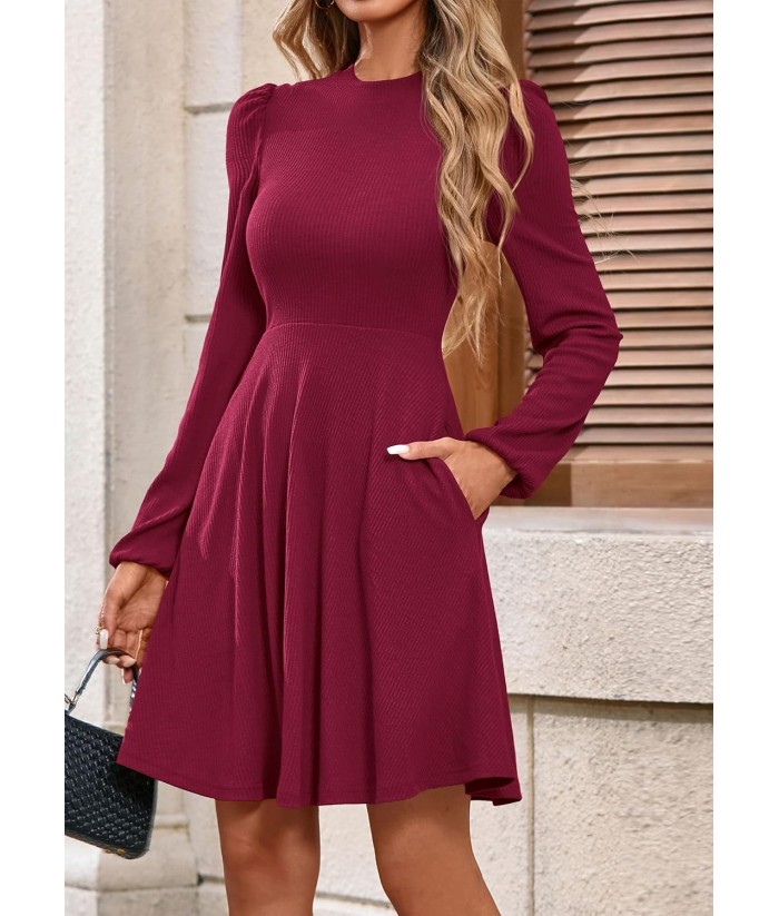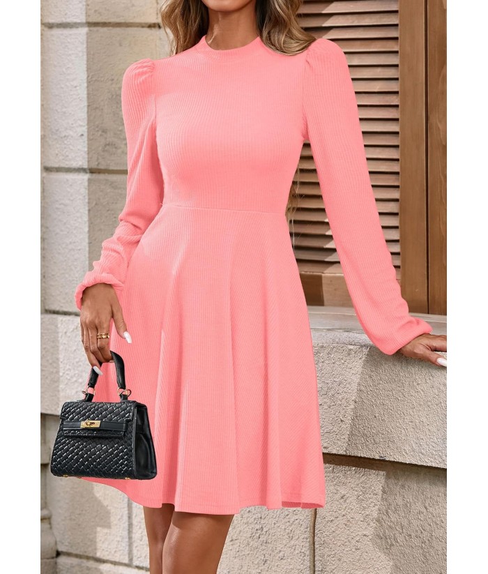 PRETTYGARDEN Womens Long Sleeve Mini Dress 2025 Fall Trendy Crewneck Ribbed Knit Soft A Line Flowy Summer Formal Dresses