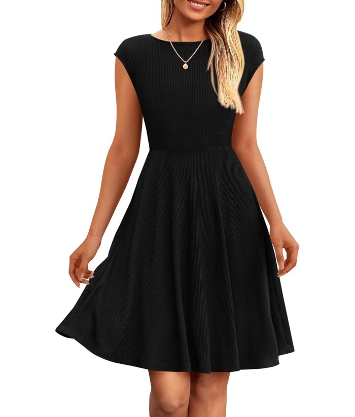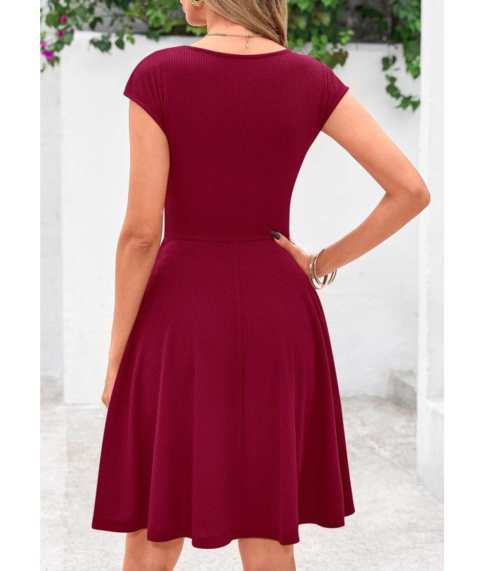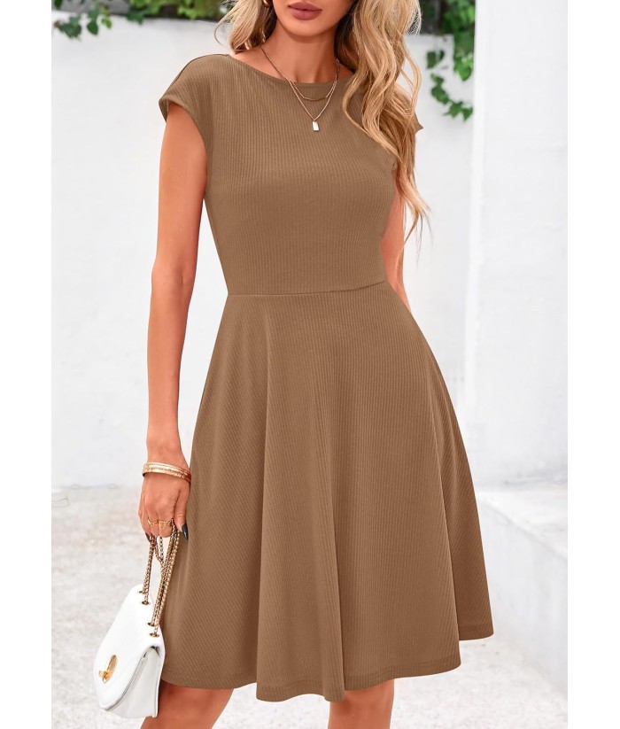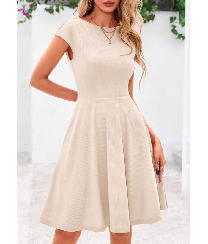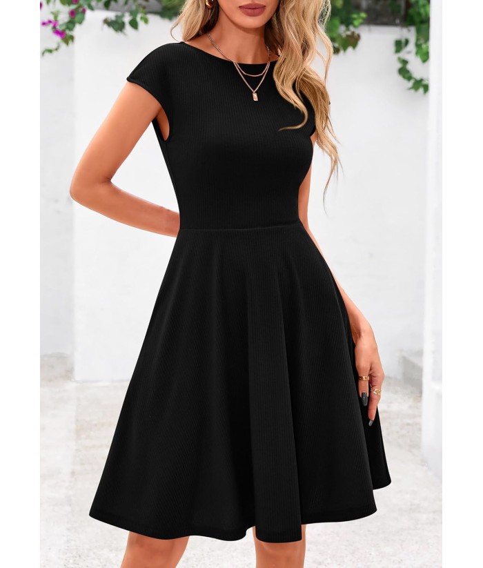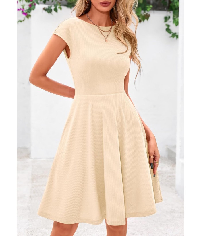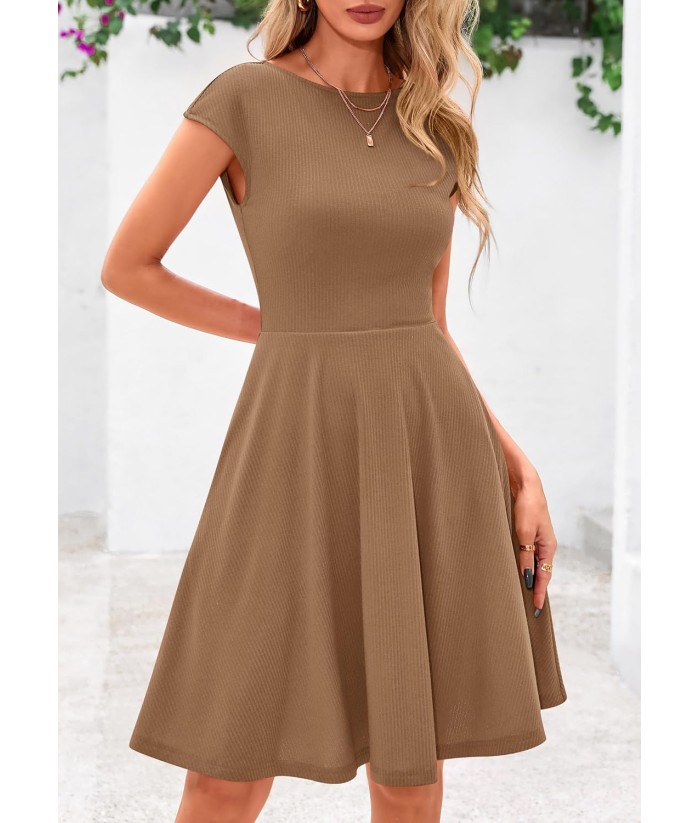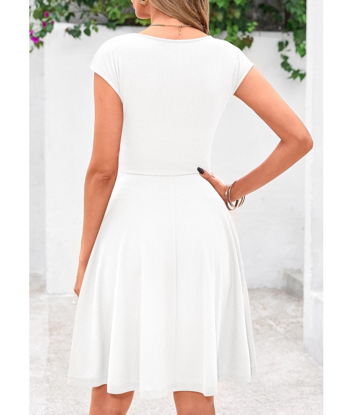 PRETTYGARDEN Womens Short Summer Dress 2025 Crewneck Cap Sleeve Ribbed Knit Casual Flowy A Line Mini Sundresses with Pockets