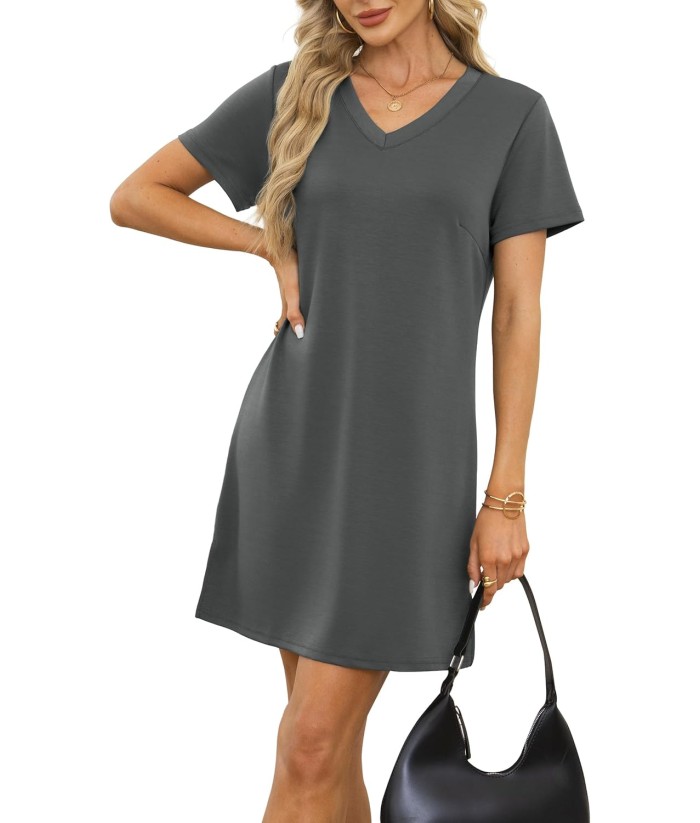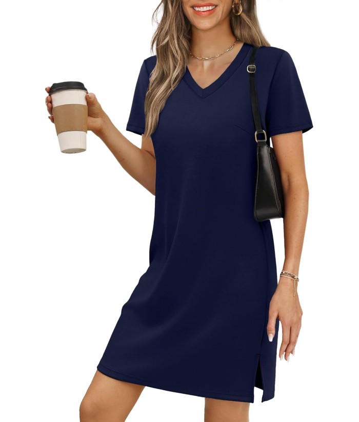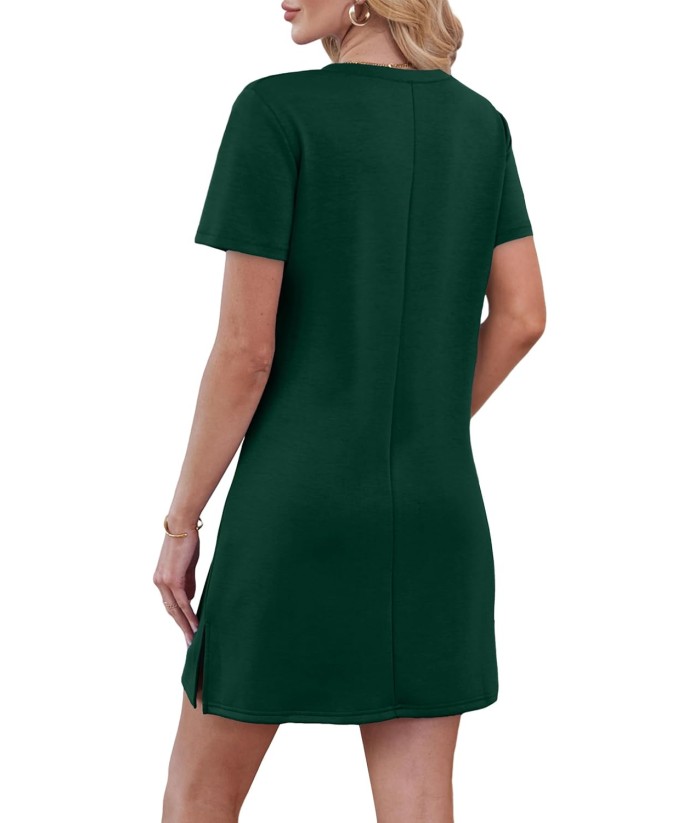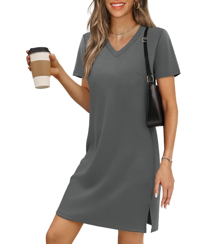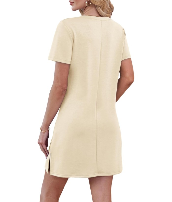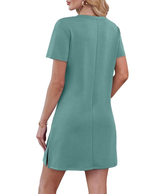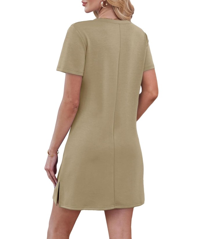 RUMIA Summer Casual Dresses for Women 2025 Vacation Dress V-Neck Short Sleeve Split Hem Beach Sundress
