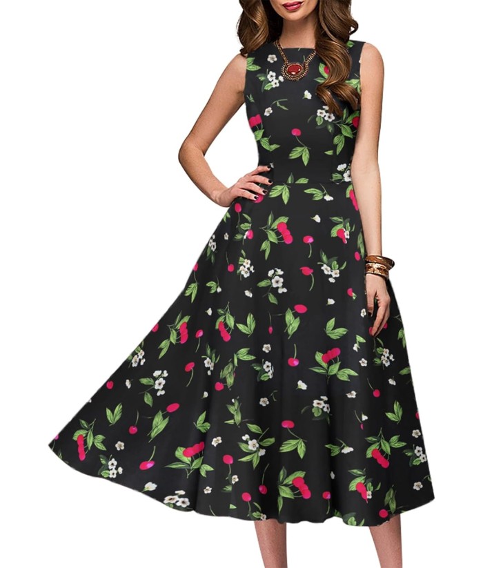Simple Flavor Women's Vintage Dress Sleeveless O-Neck Party Cocktail Dress