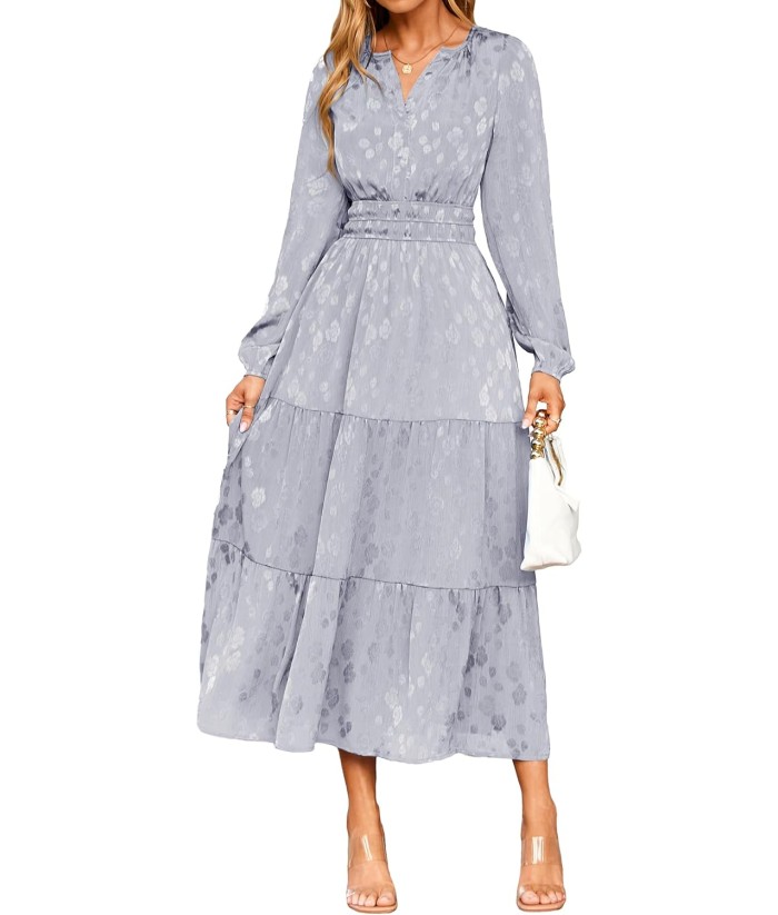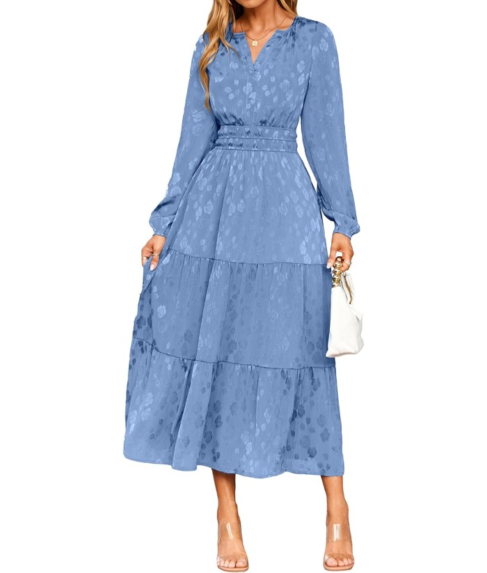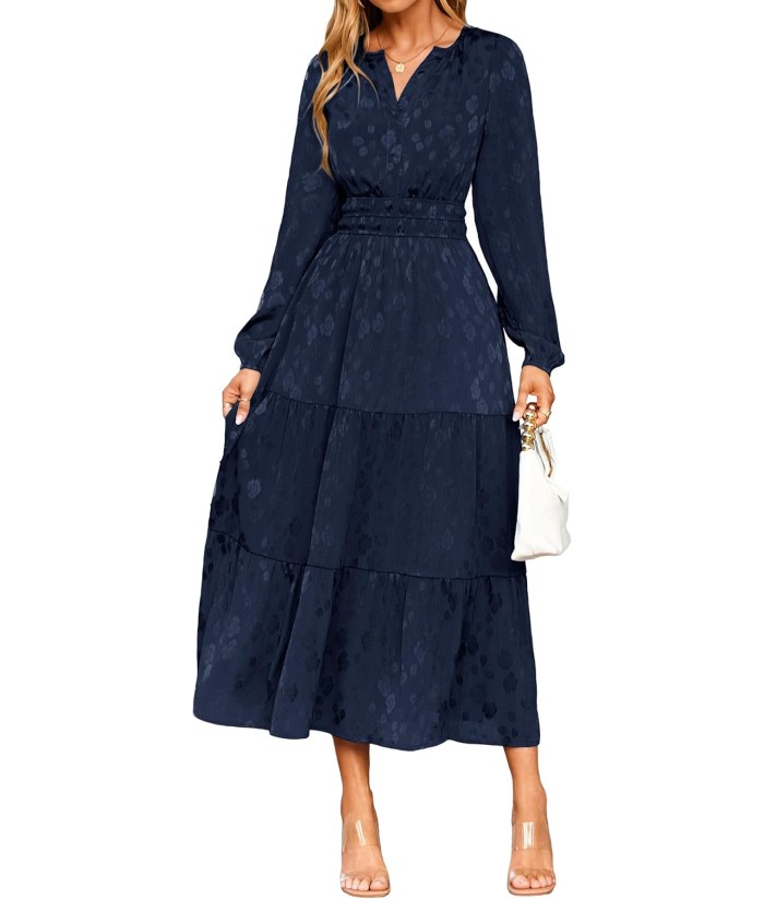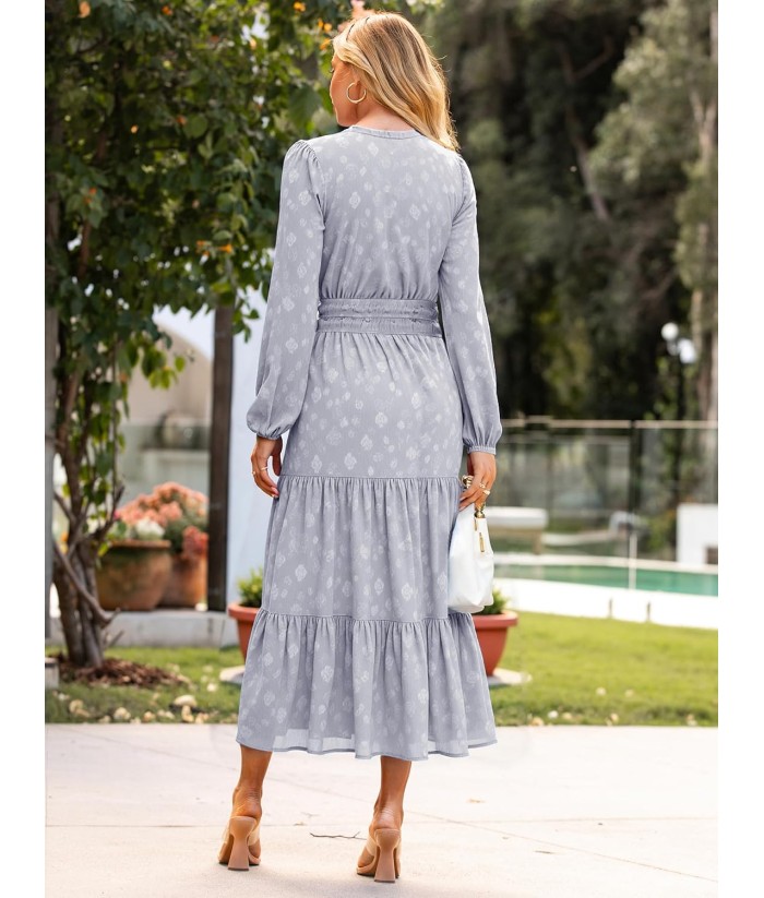 Simplee Womens Casual Long Sleeve Dress Fall Elegant Wedding Guest V-Neck Maxi Floral Dresses 2025 Trendy