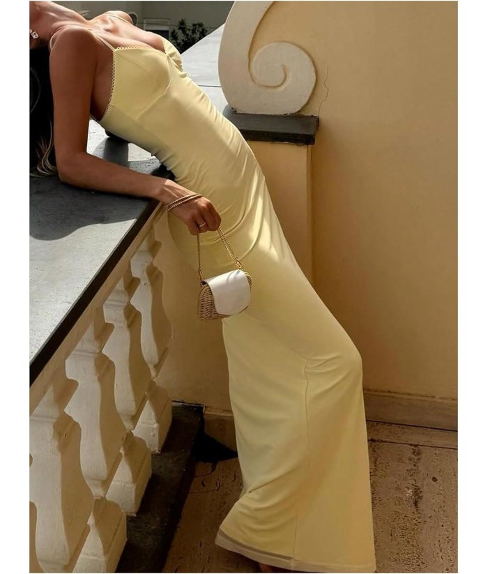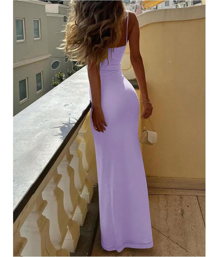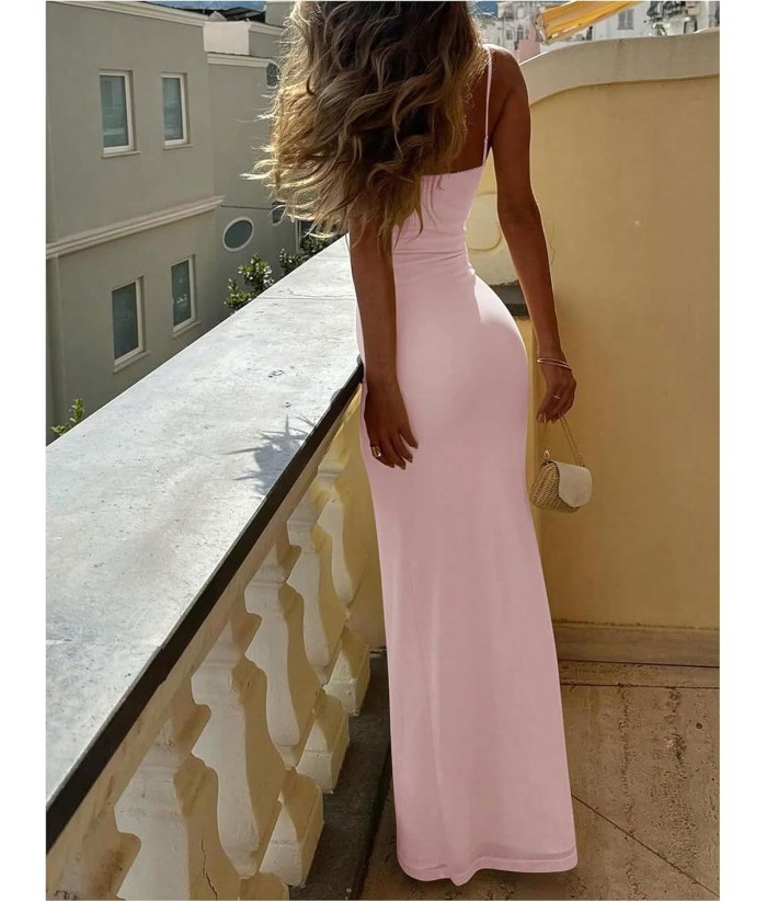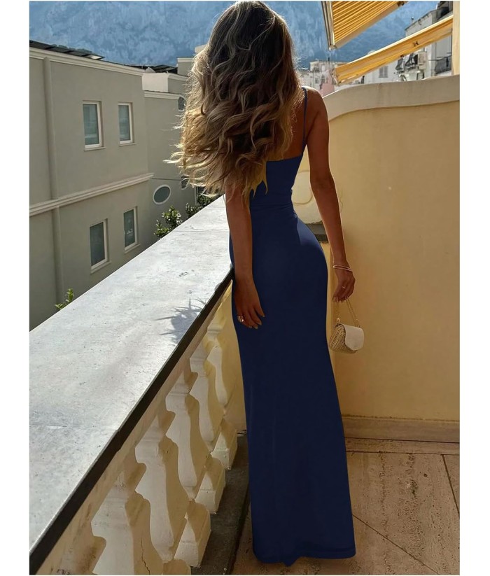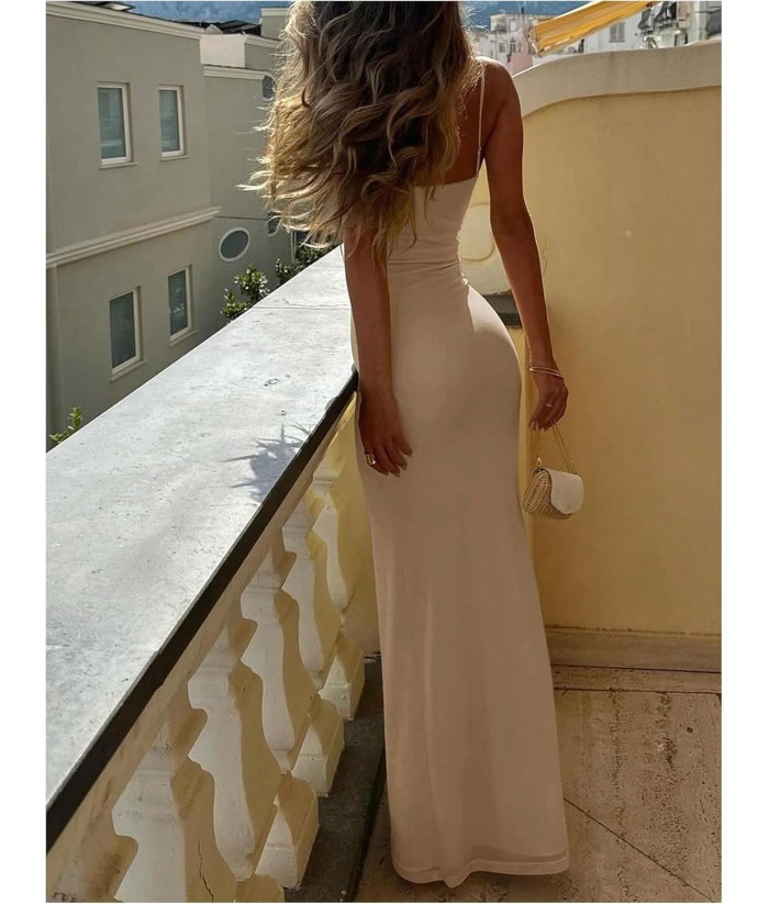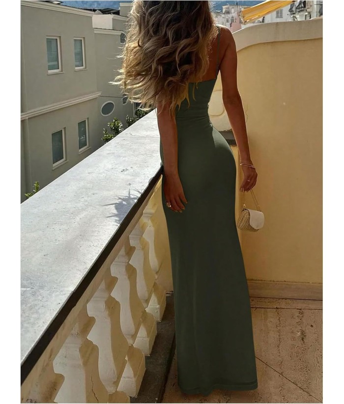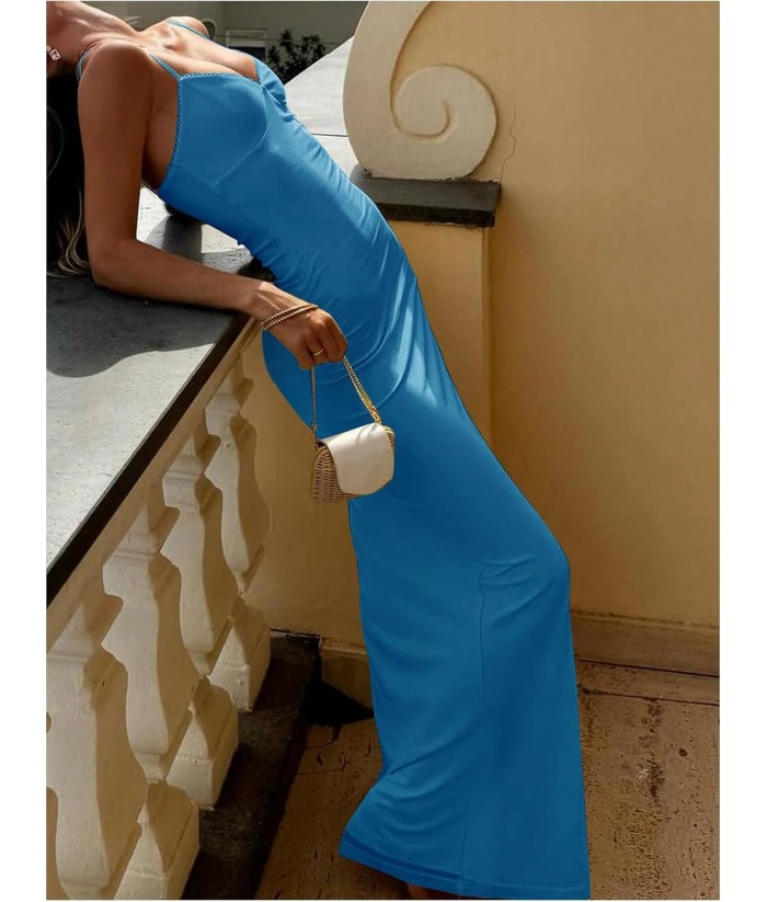 SOLY HUX Women's Maxi Dress V Neck Spaghetti Strap Bodycon Long Cami Dresses