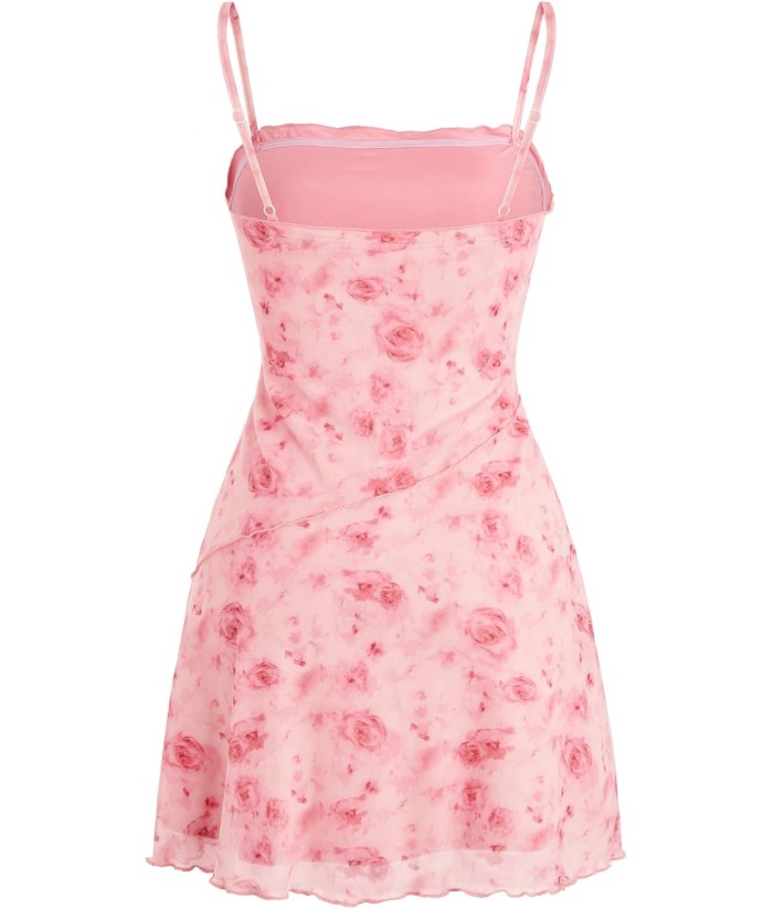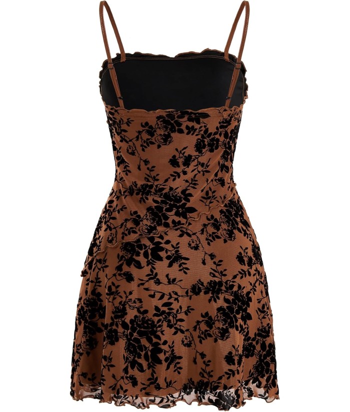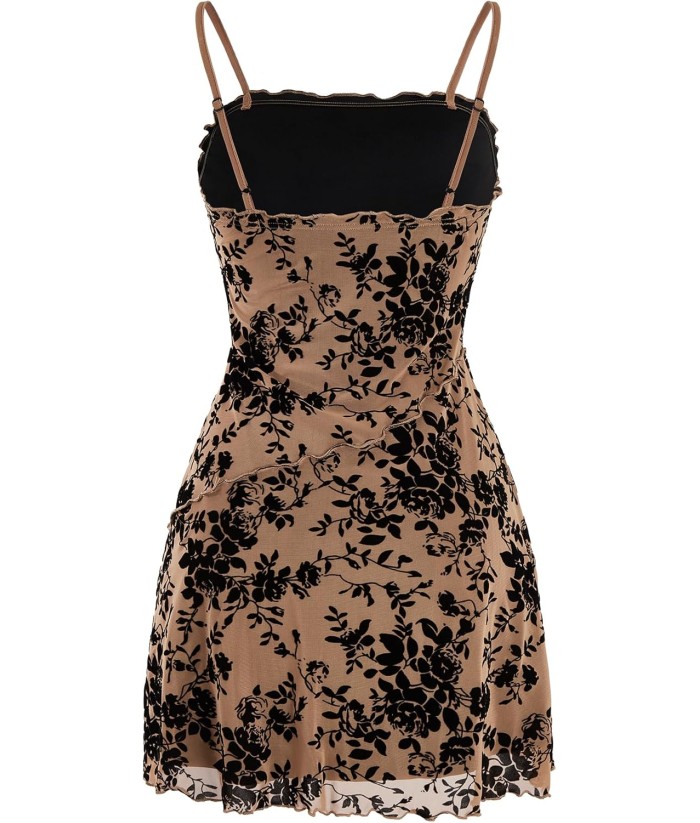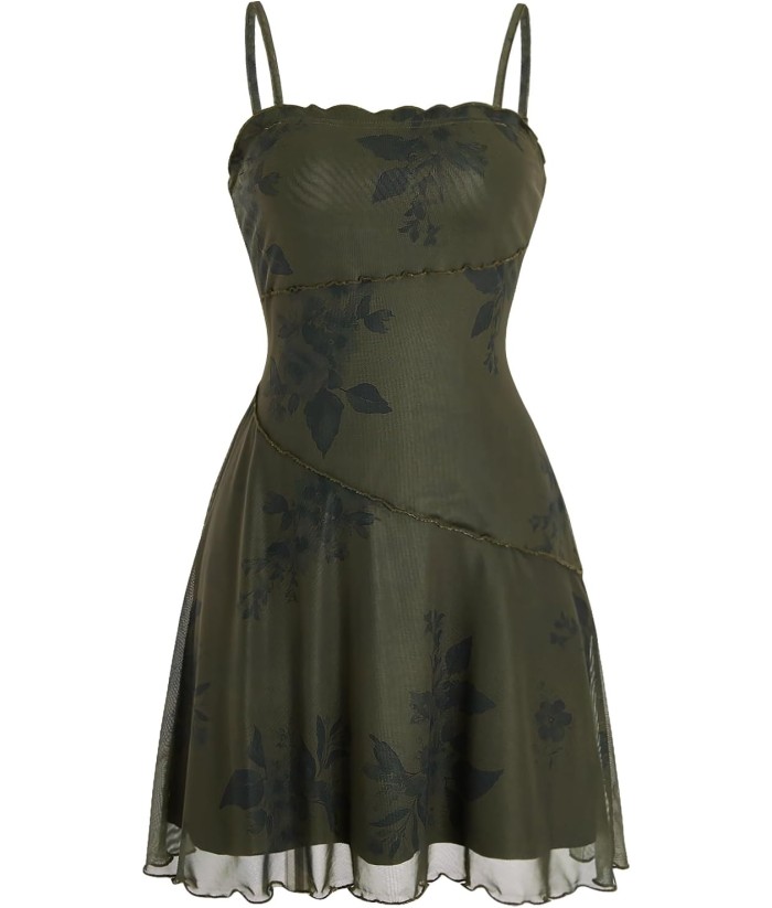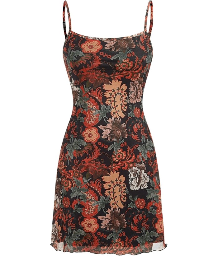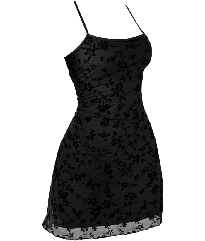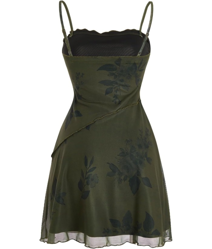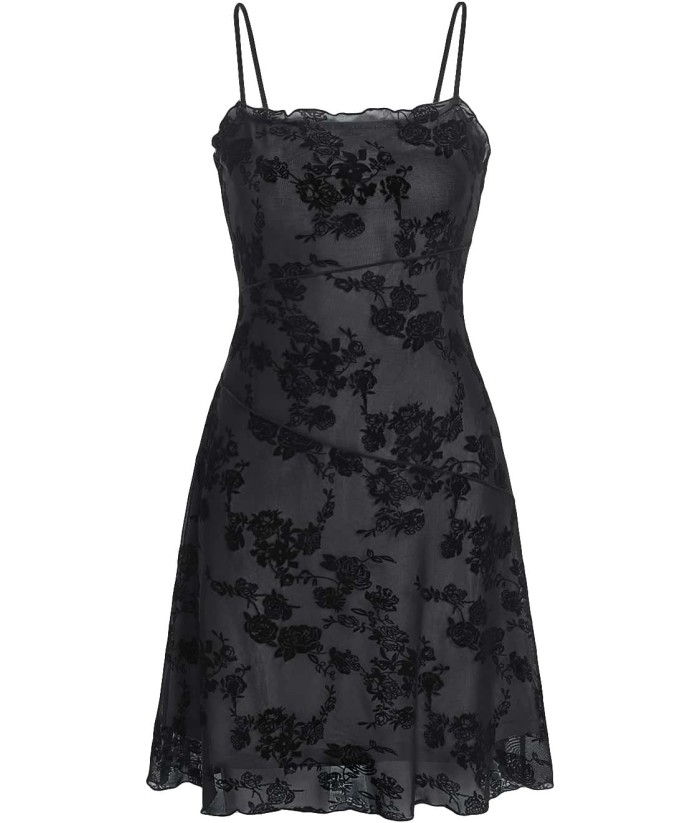 Verdusa Women's Mini Dress Floral Spaghetti Strap Mesh Dresses Going Out Festival Concert Outfits Grunge Gothic Clothes