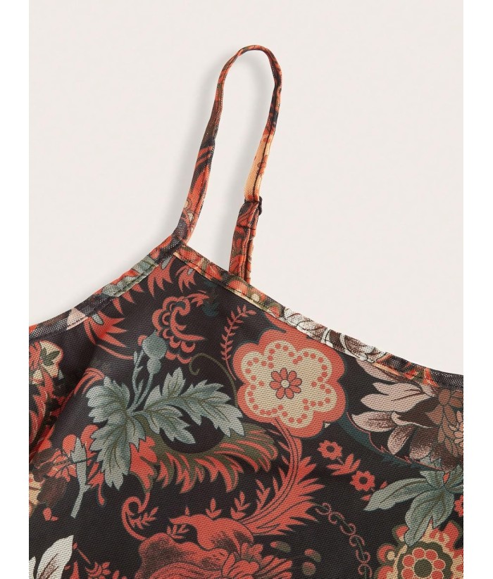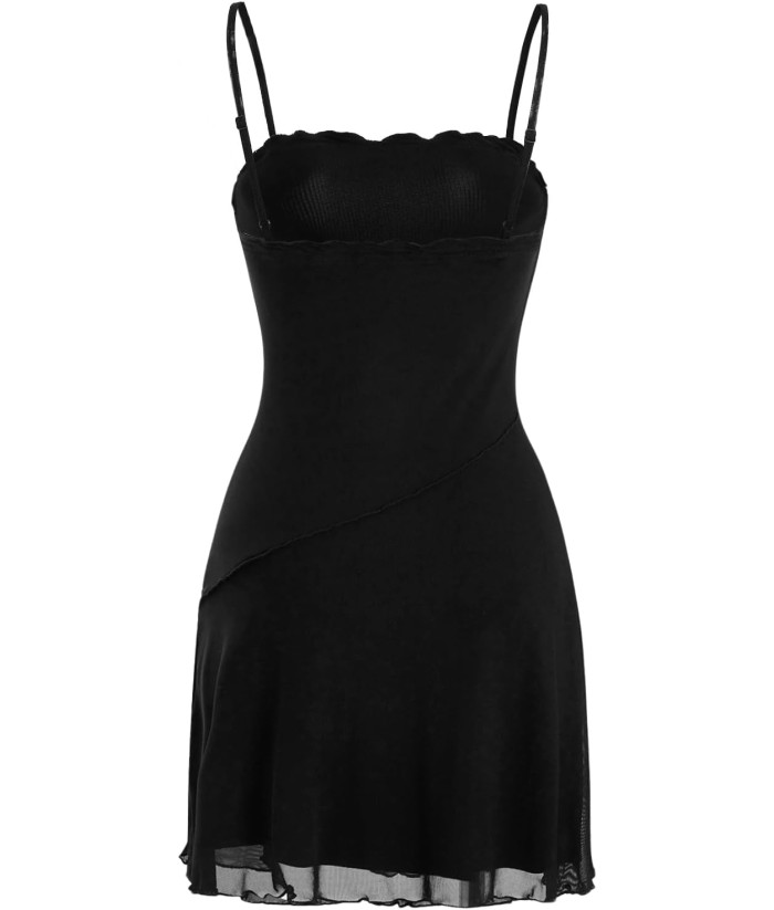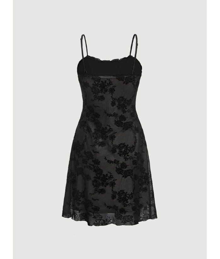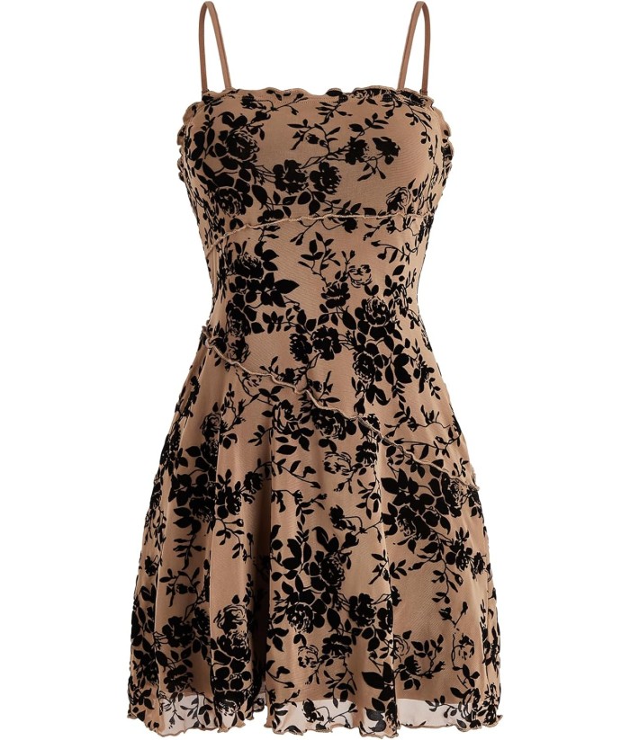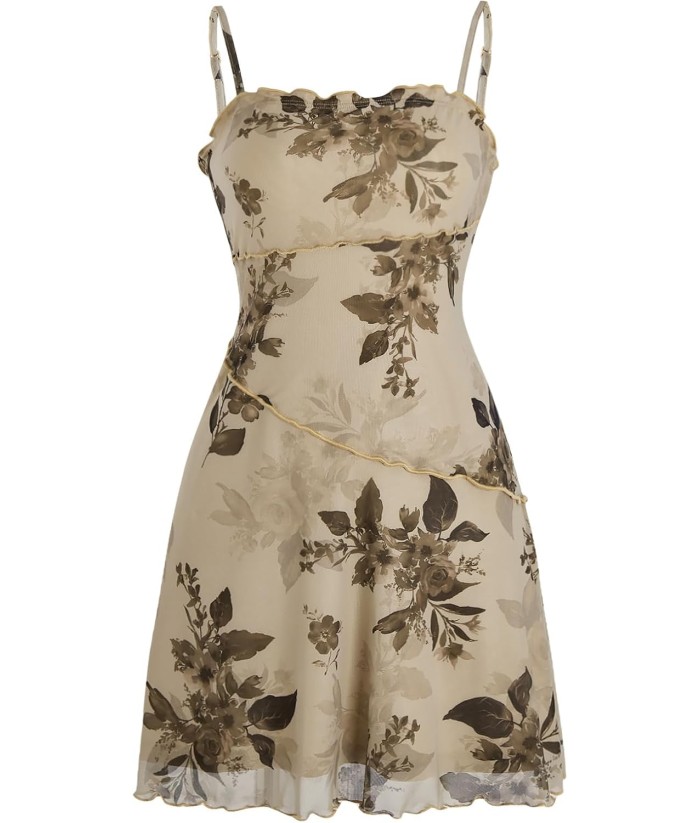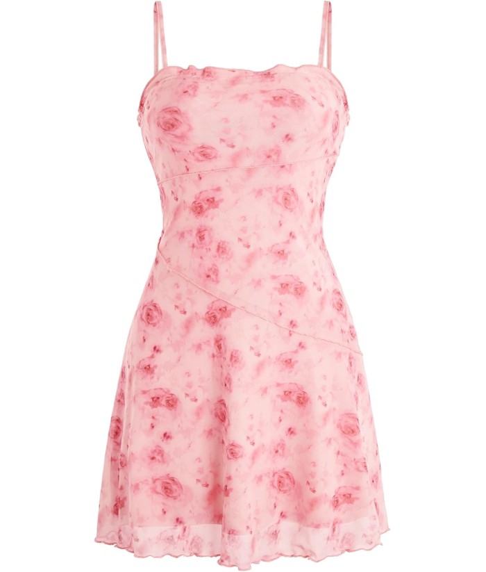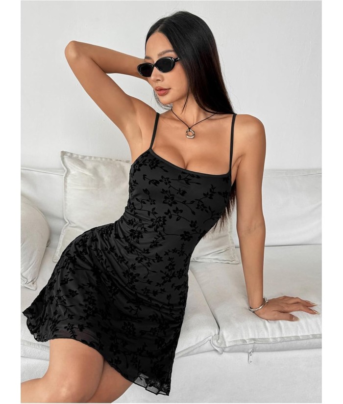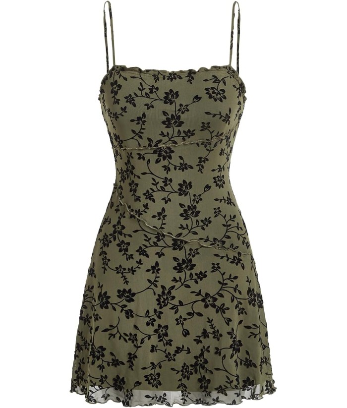 Verdusa Women's Mini Dress Floral Spaghetti Strap Mesh Dresses Going Out Festival Concert Outfits Grunge Gothic Clothes