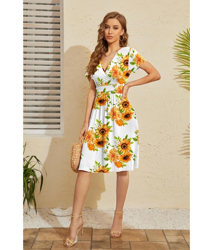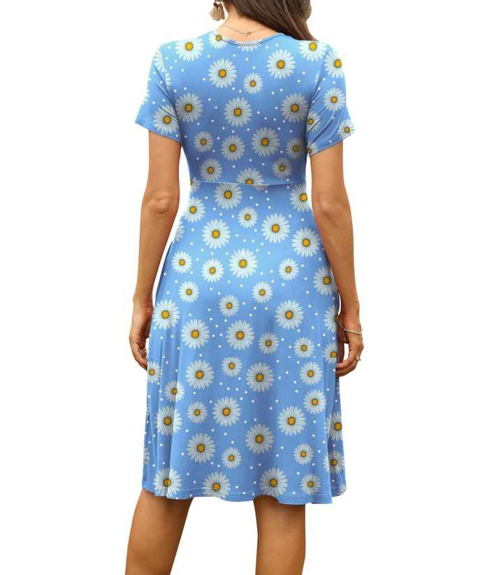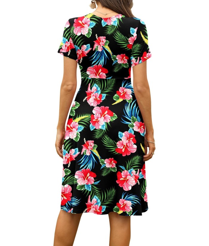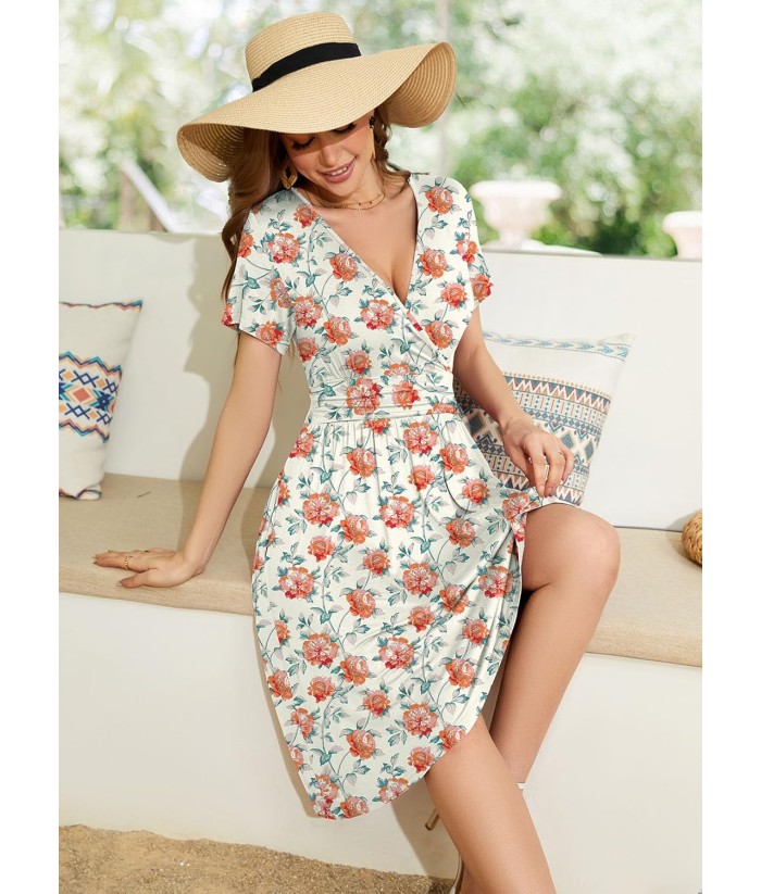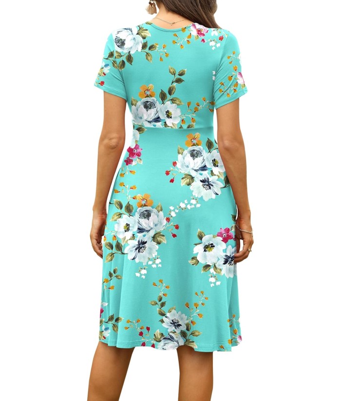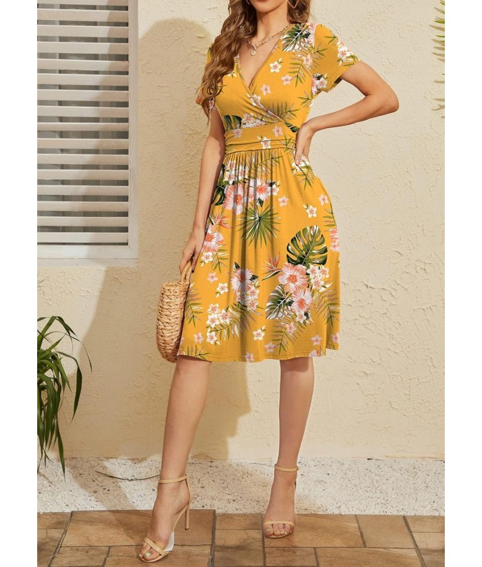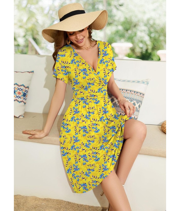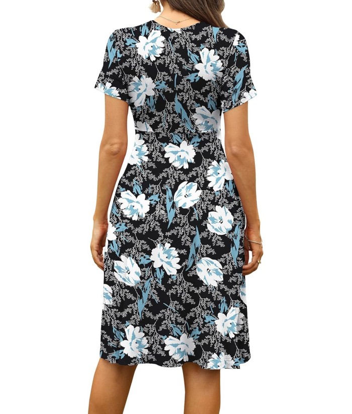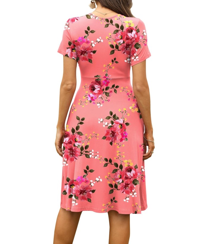 WEACZZY Women's Summer Short Sleeve Casual Dresses V-Neck Floral Party Dress with Pockets