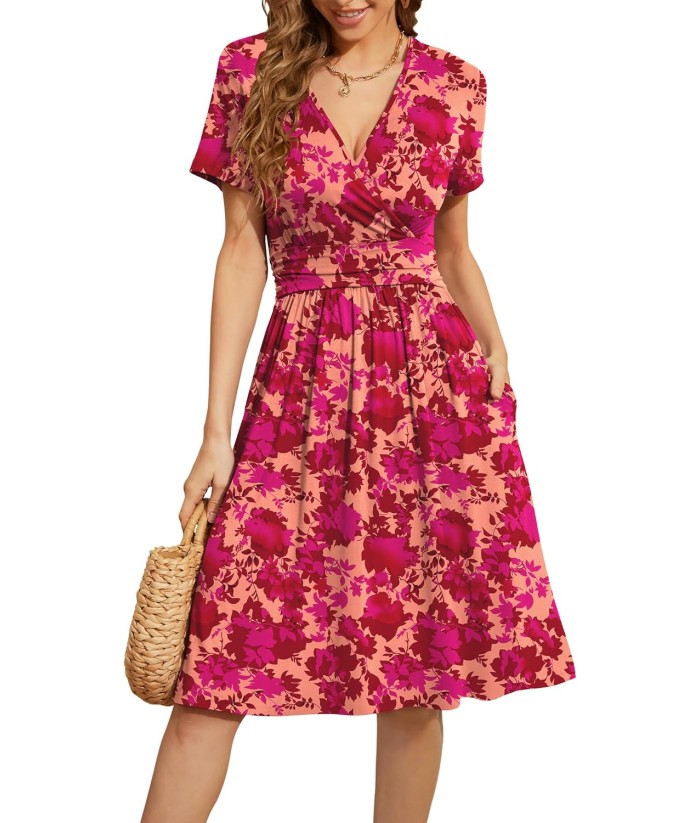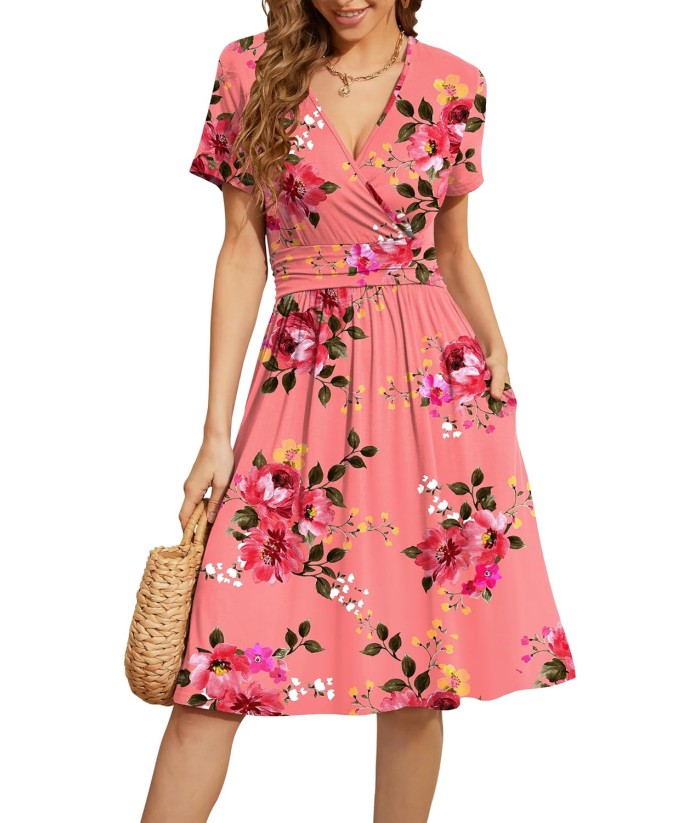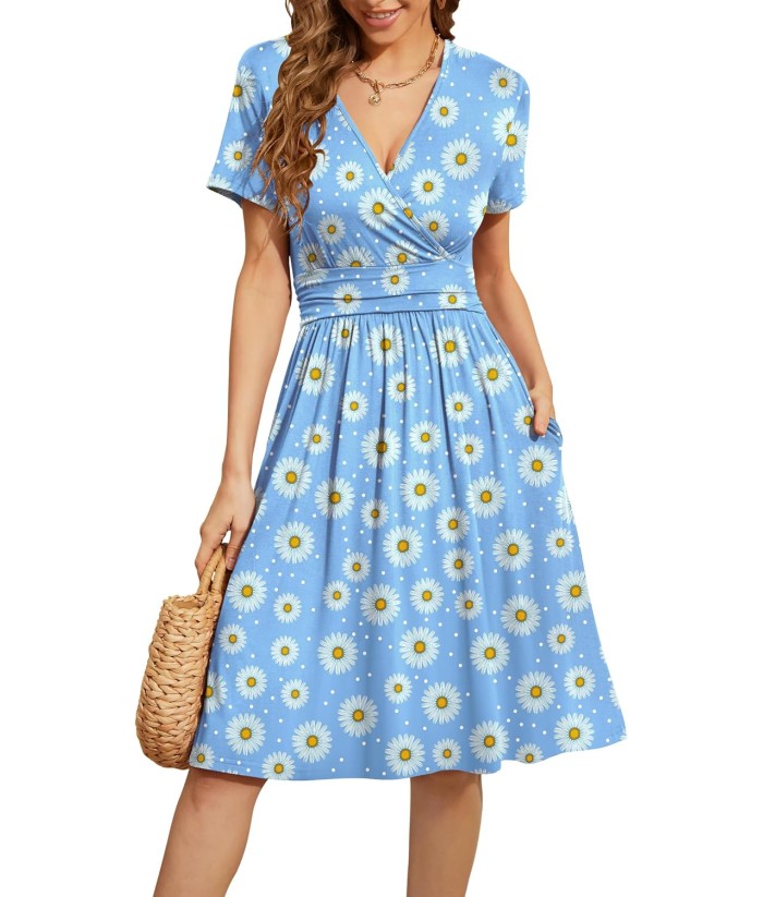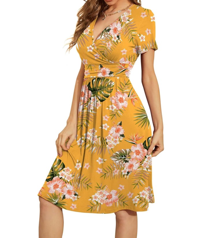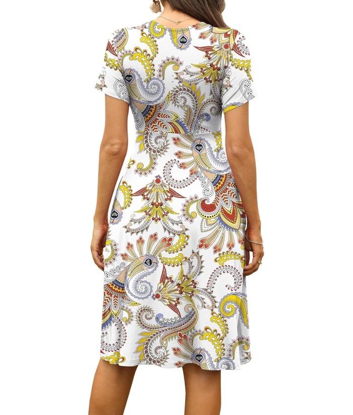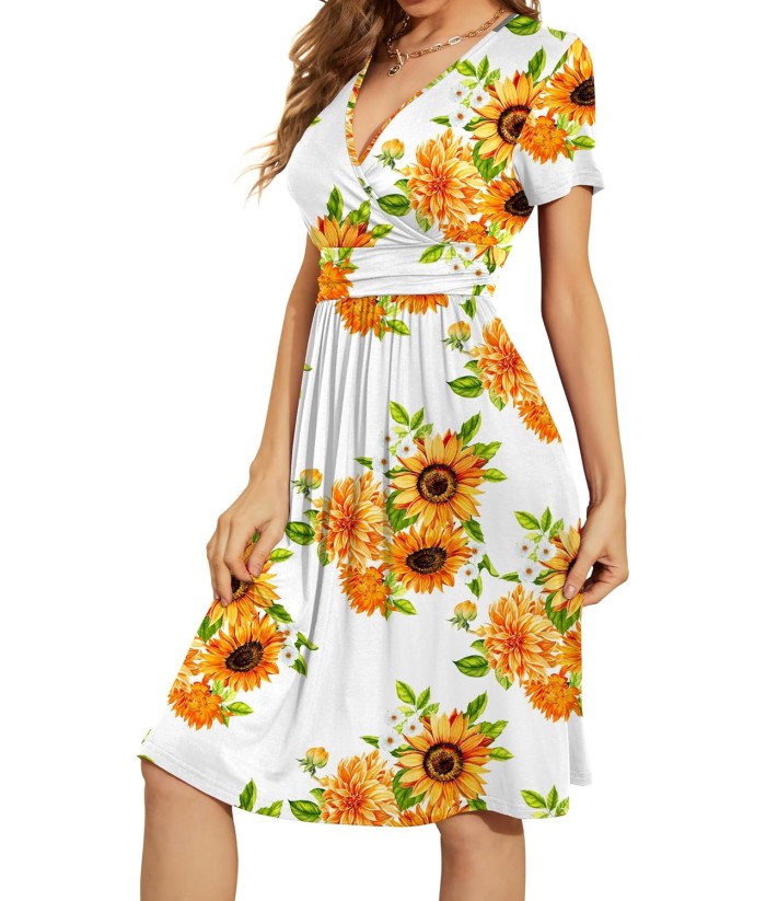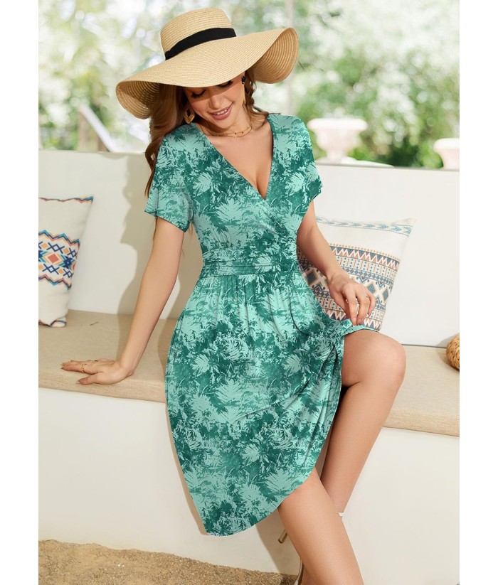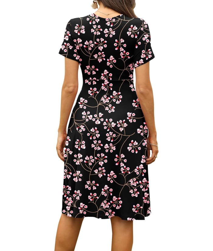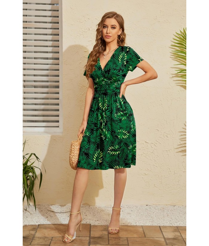 WEACZZY Women's Summer Short Sleeve Casual Dresses V-Neck Floral Party Dress with Pockets