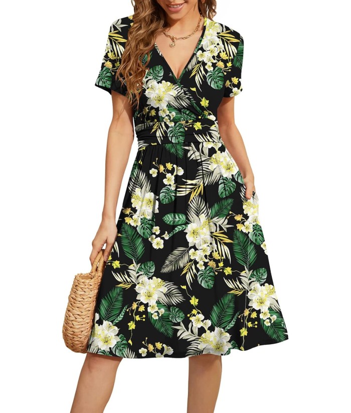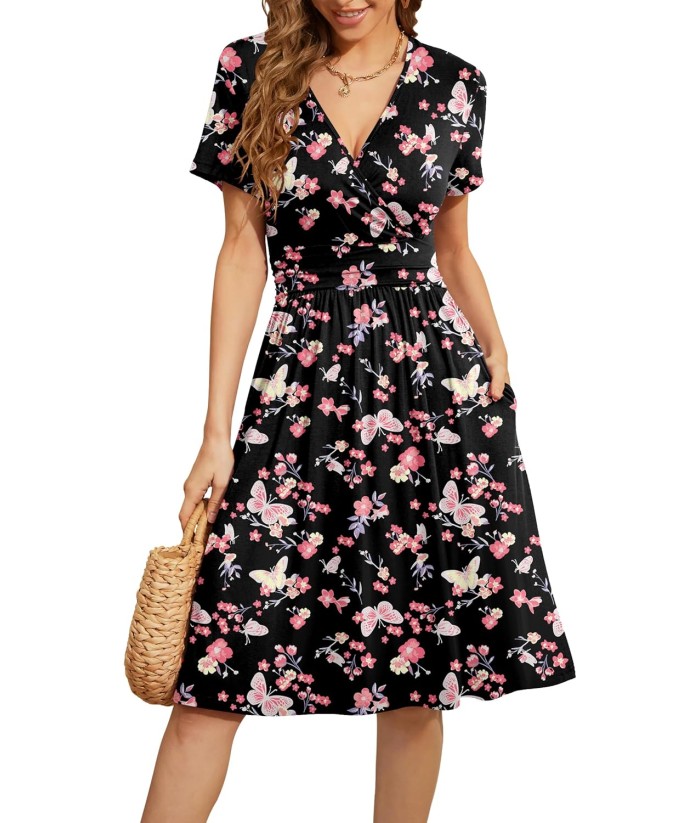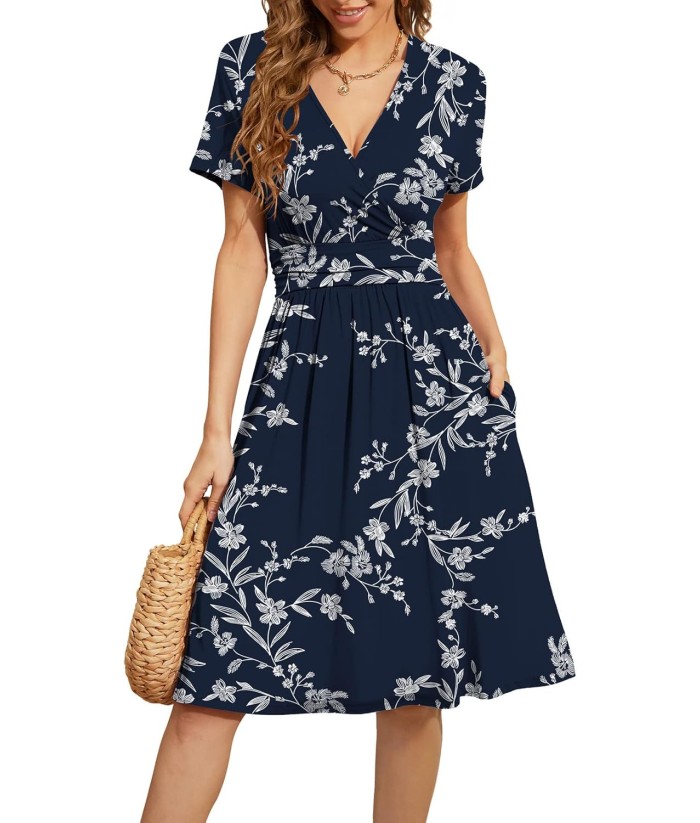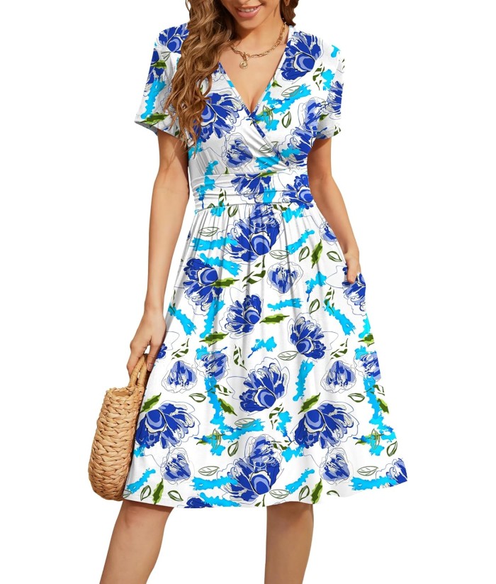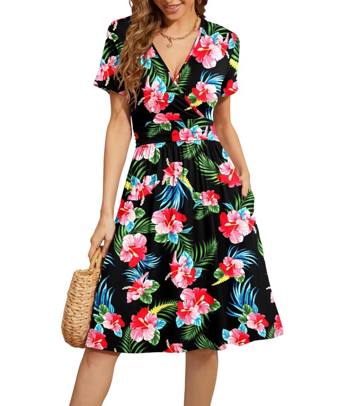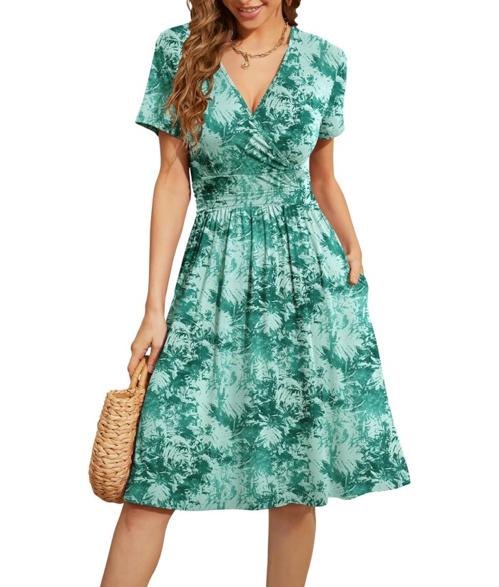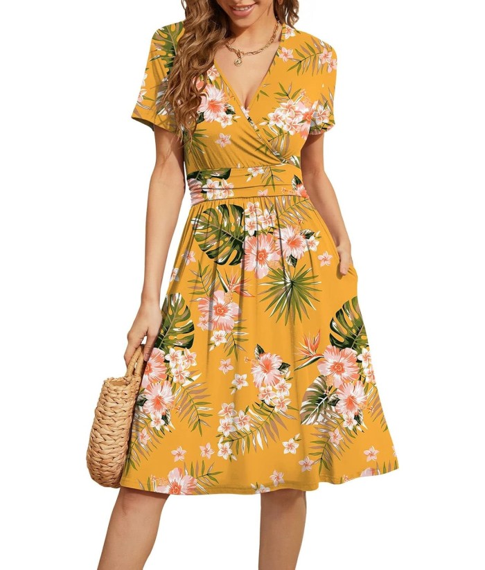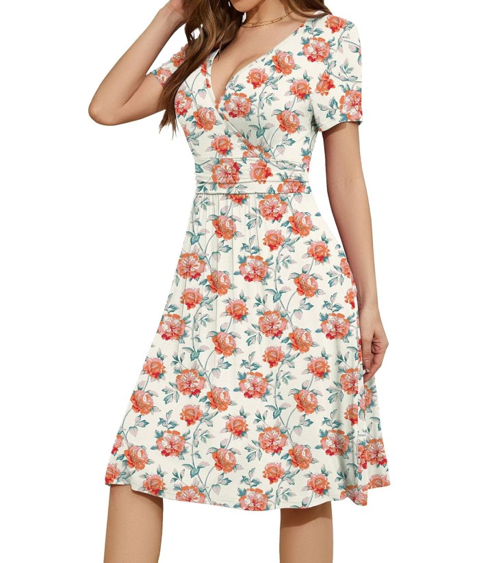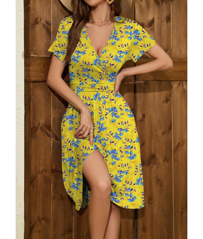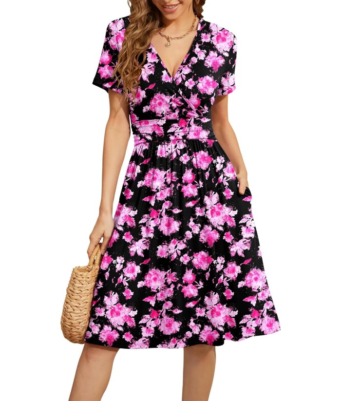 WEACZZY Women's Summer Short Sleeve Casual Dresses V-Neck Floral Party Dress with Pockets