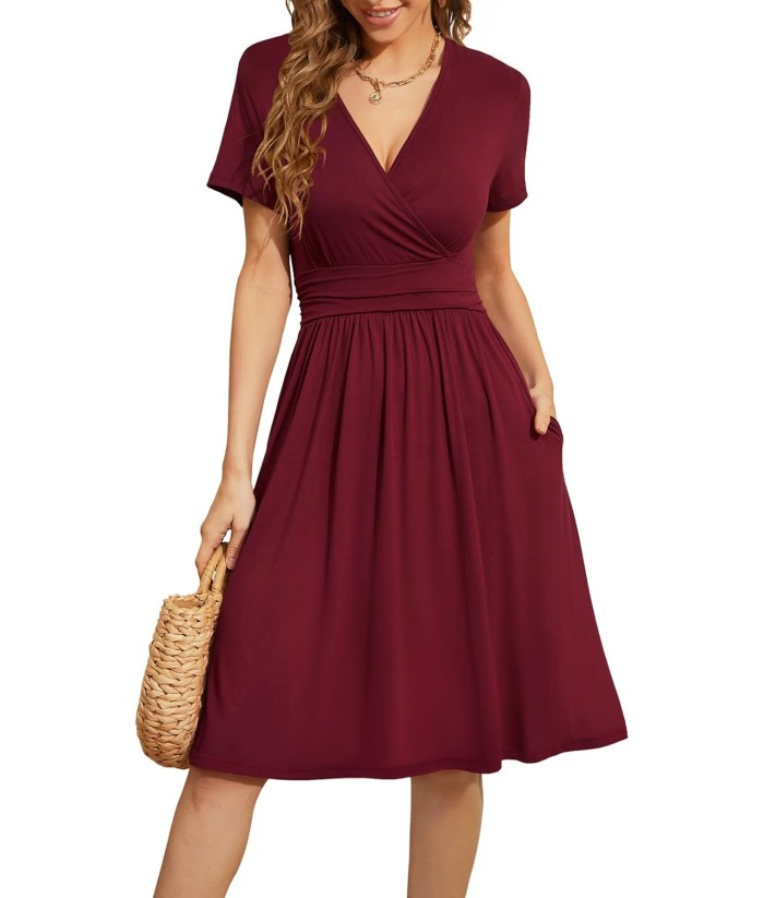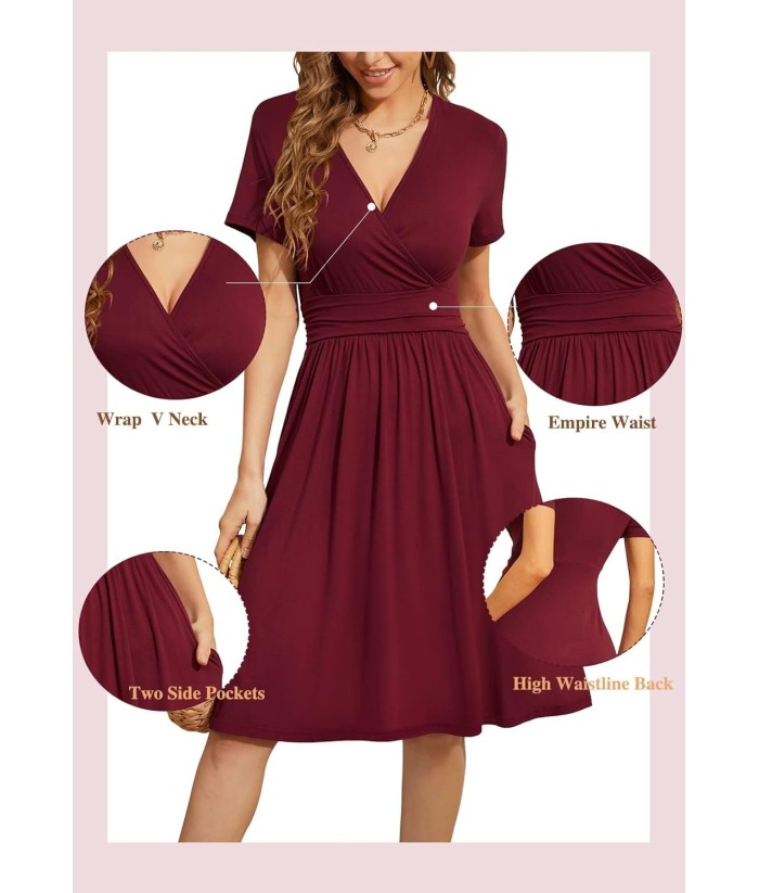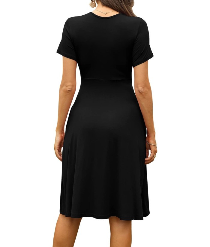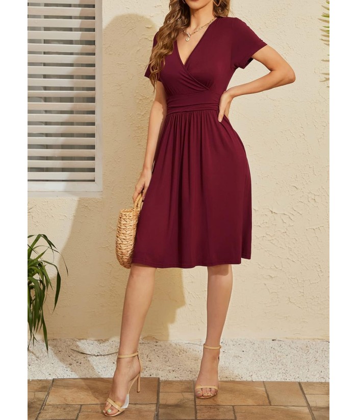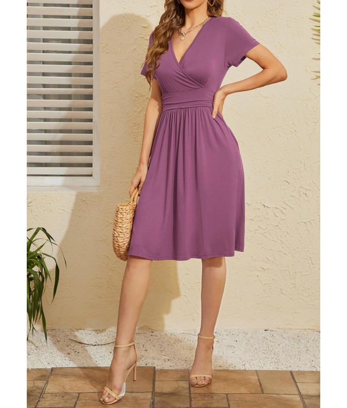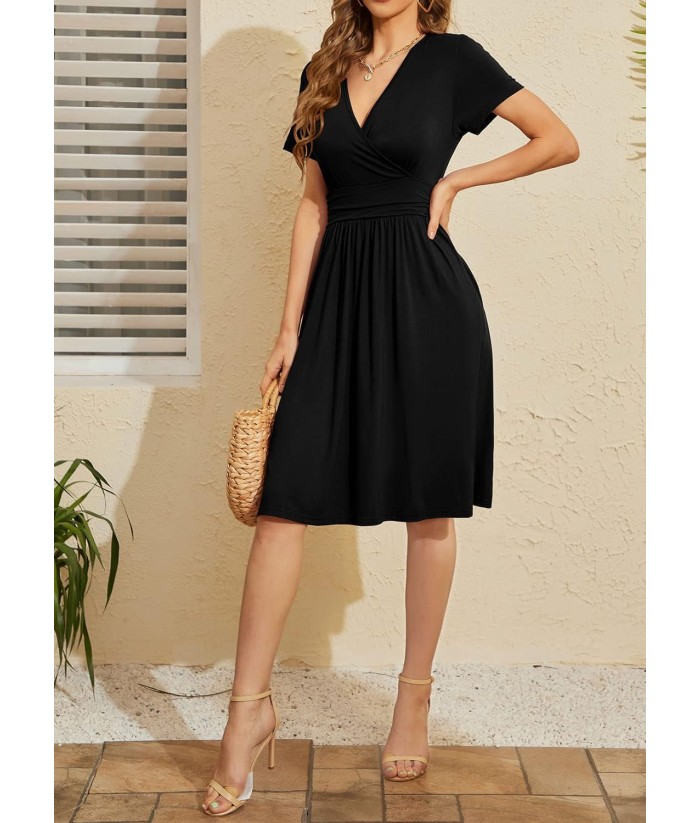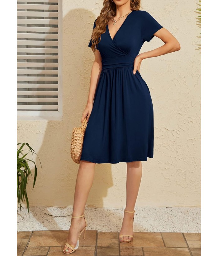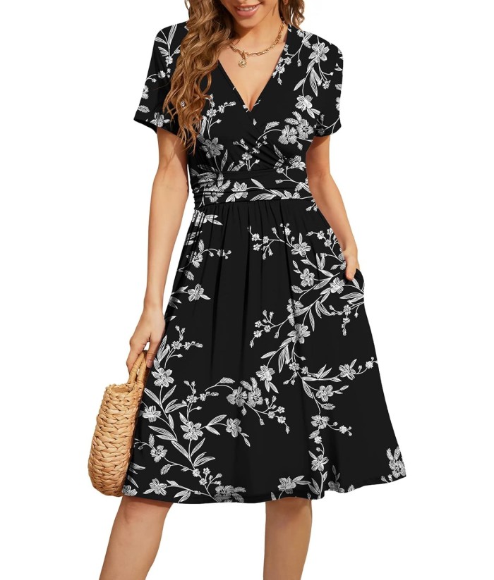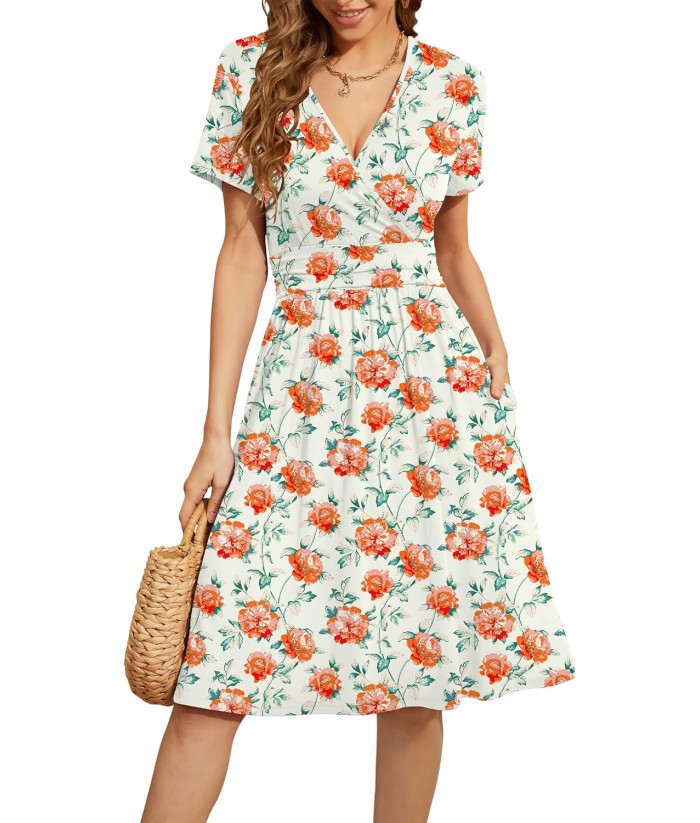 WEACZZY Women's Summer Short Sleeve Casual Dresses V-Neck Floral Party Dress with Pockets