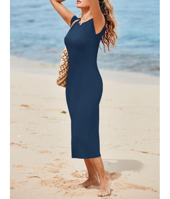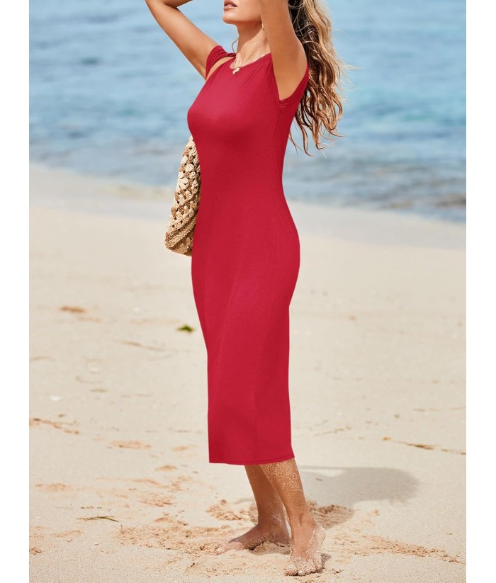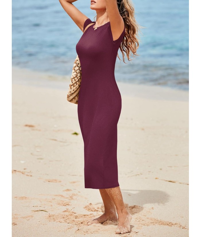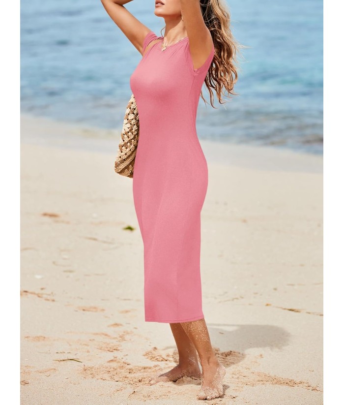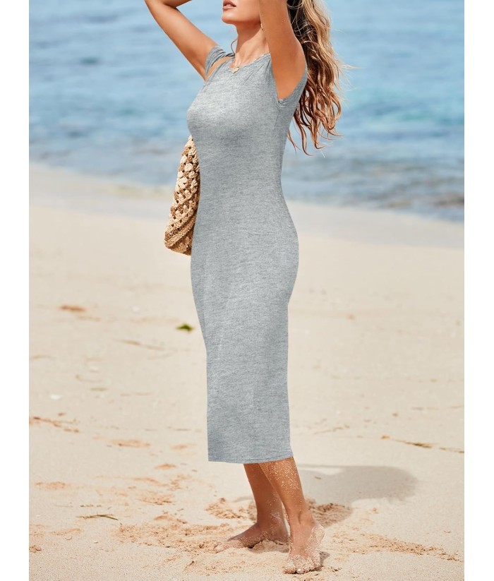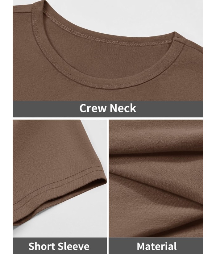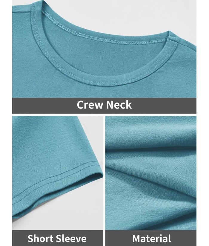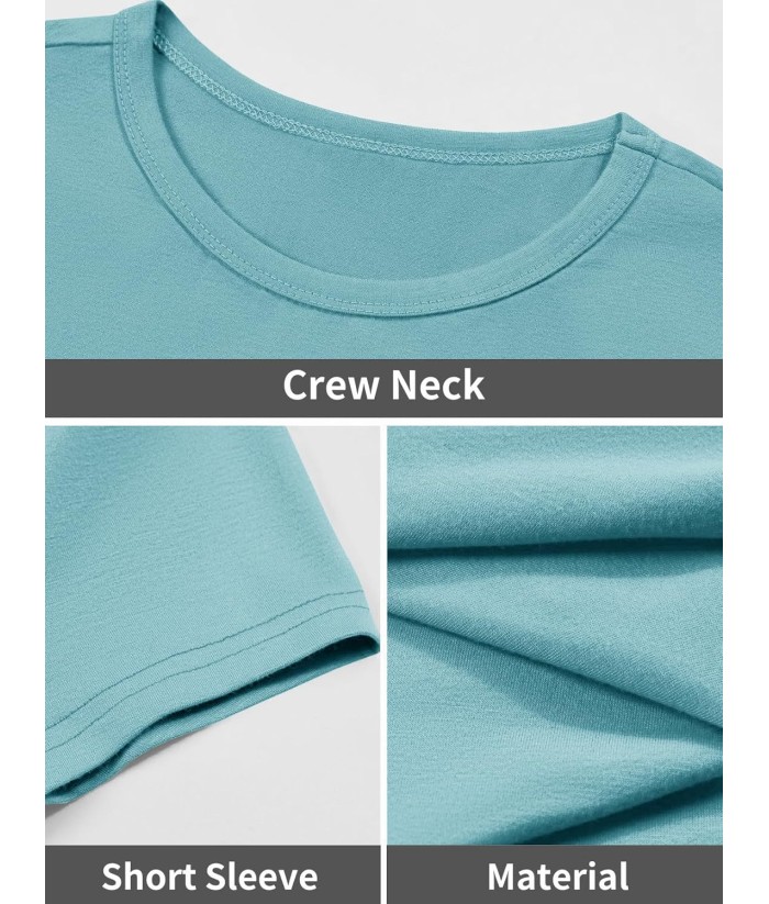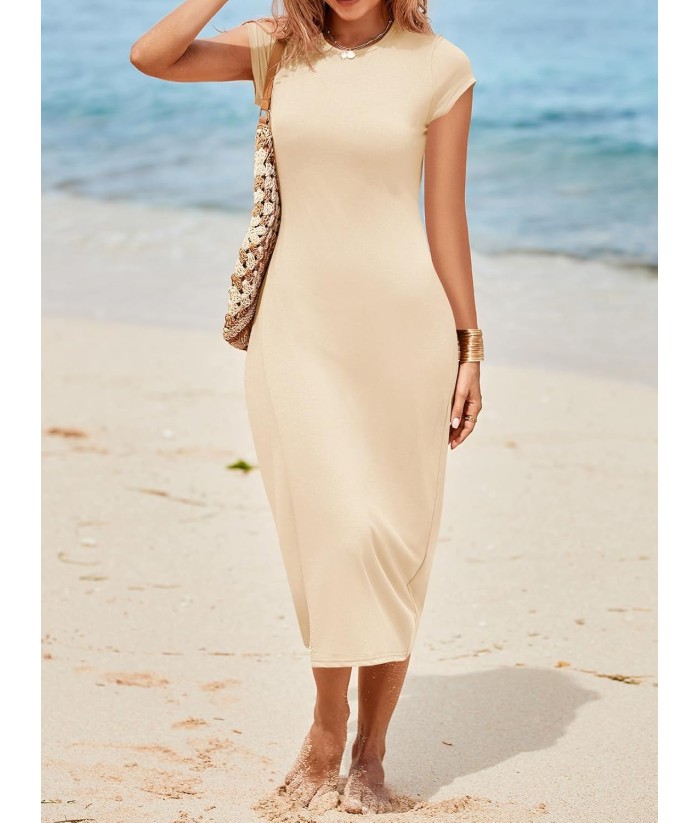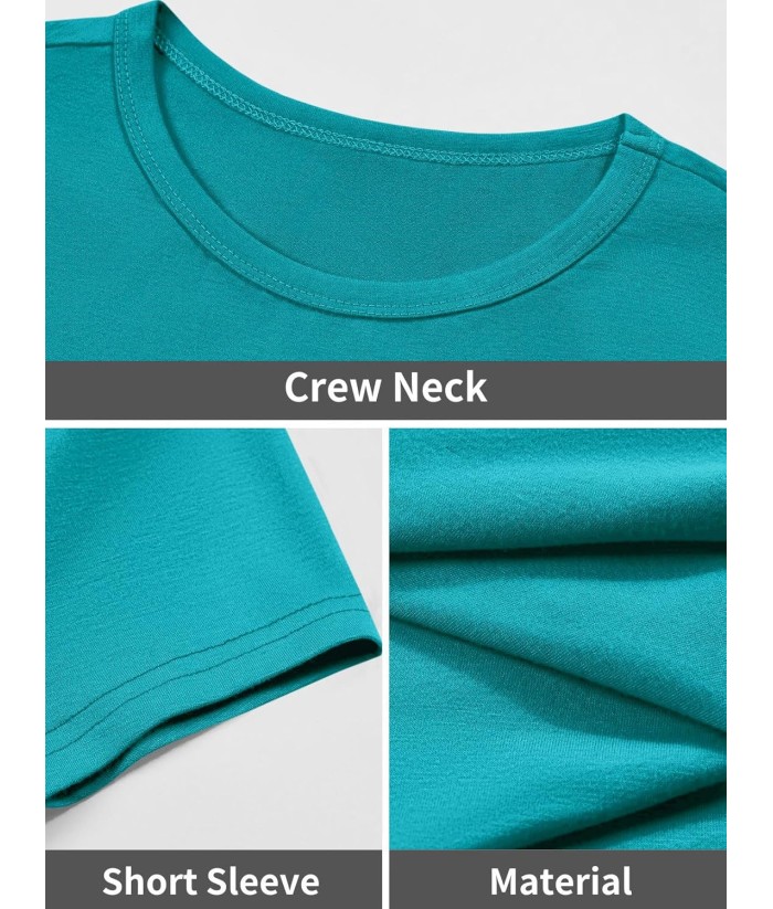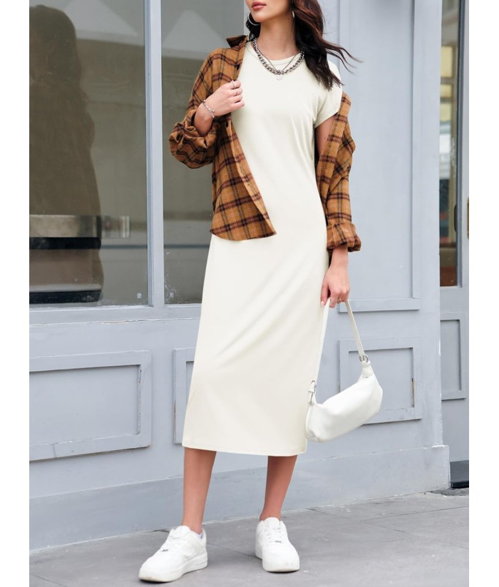 Wenrine Women's Short Sleeve T-Shirt Dress Summer Crew Neck Basic Solid Casual Long Midi Dresses