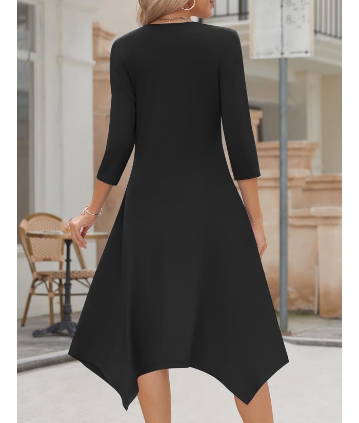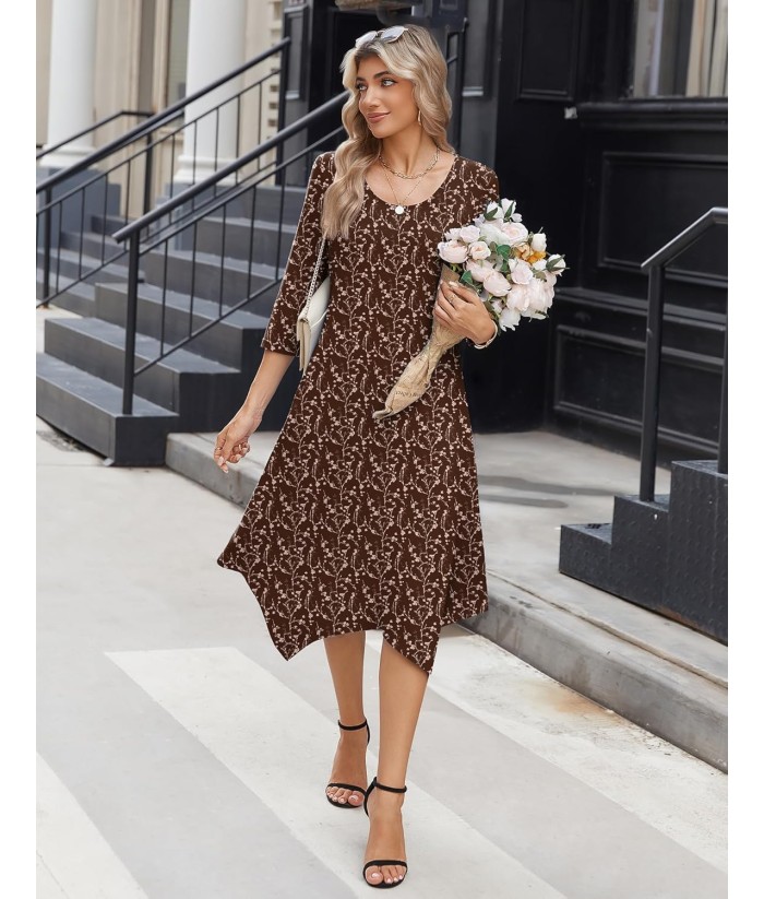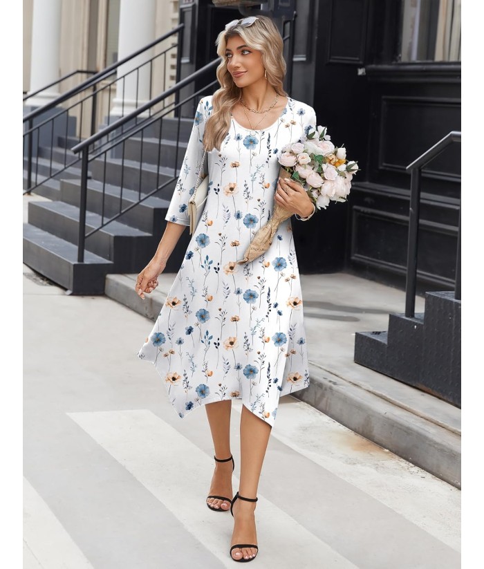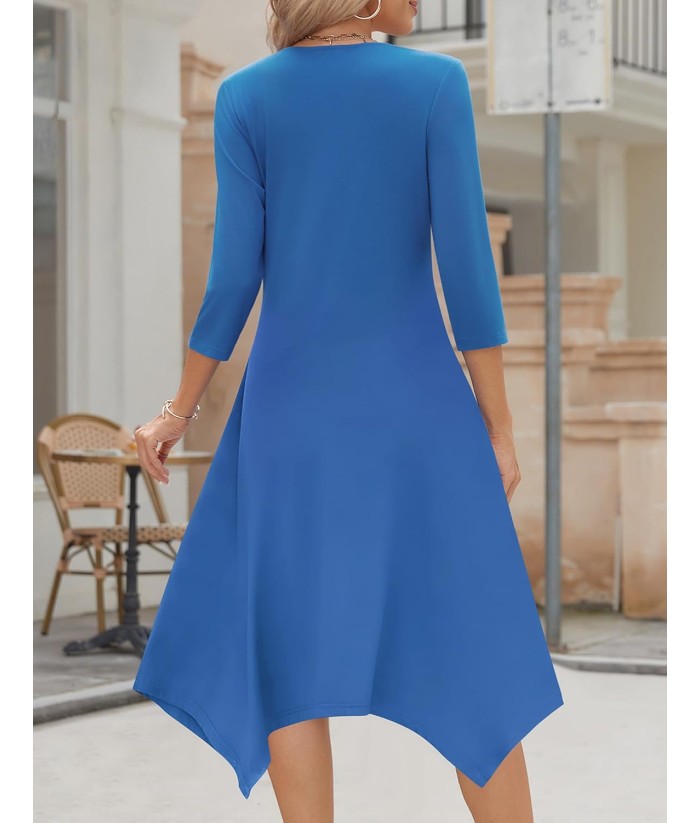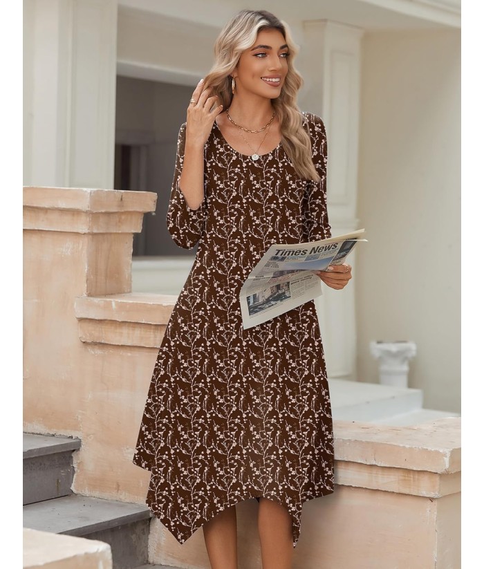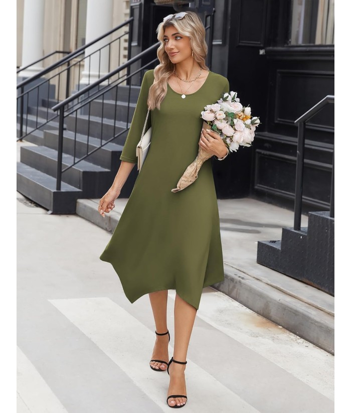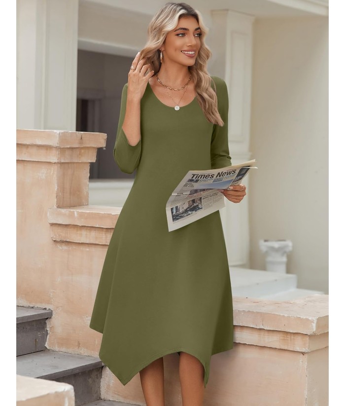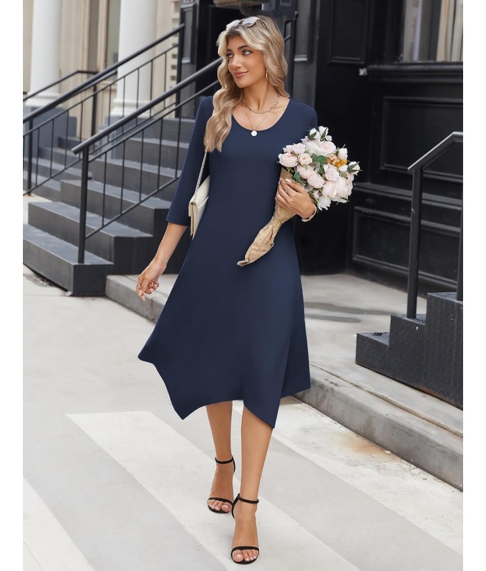 Zeagoo Midi Women 3/4 Sleeve Dress Casual Dresses with Pockets 2025 Fall A Line Dress Elegant Formal Modest Dresses