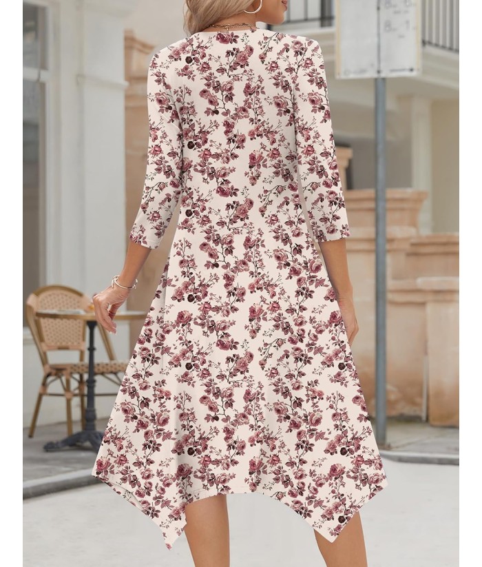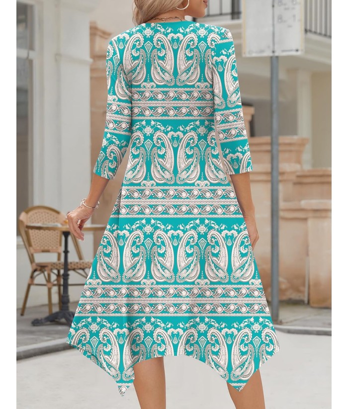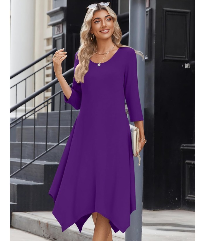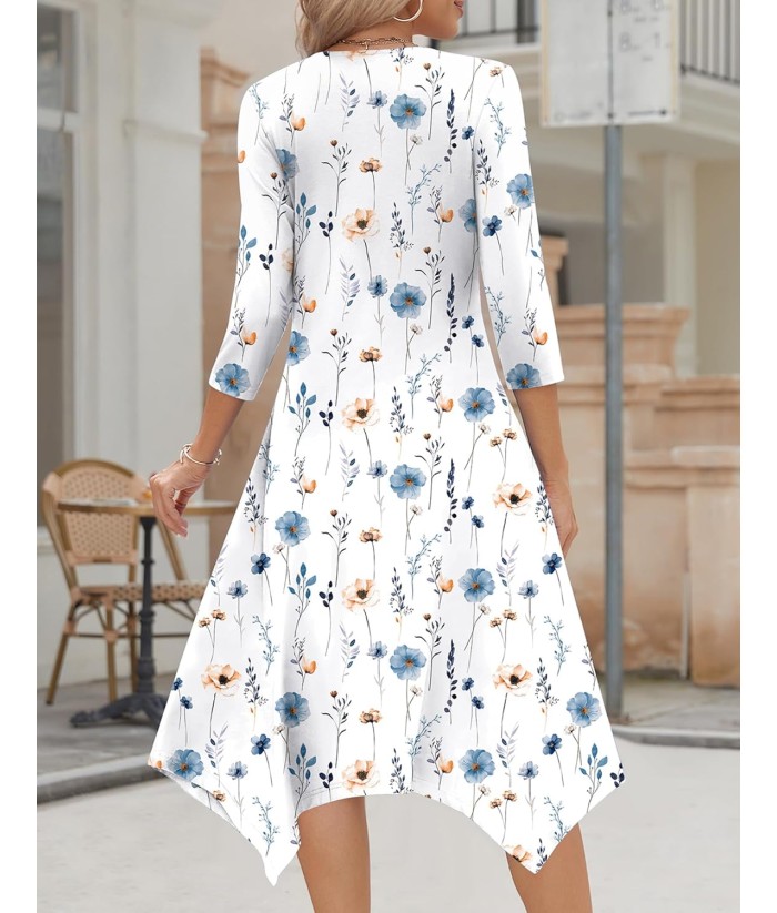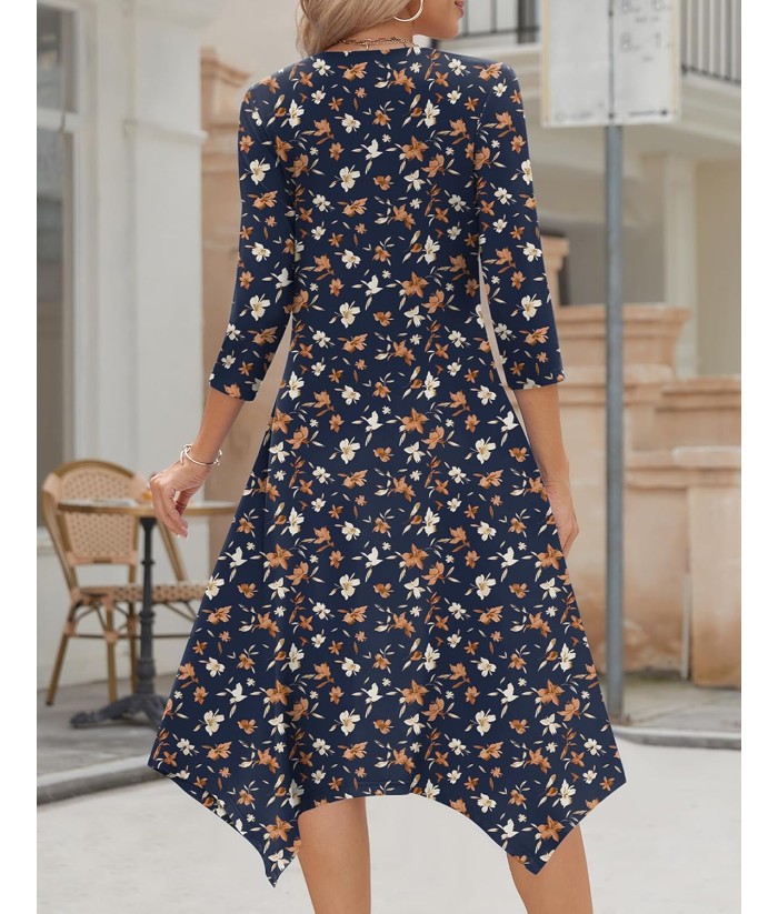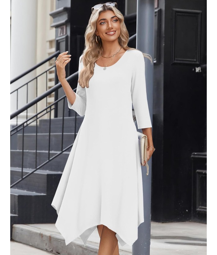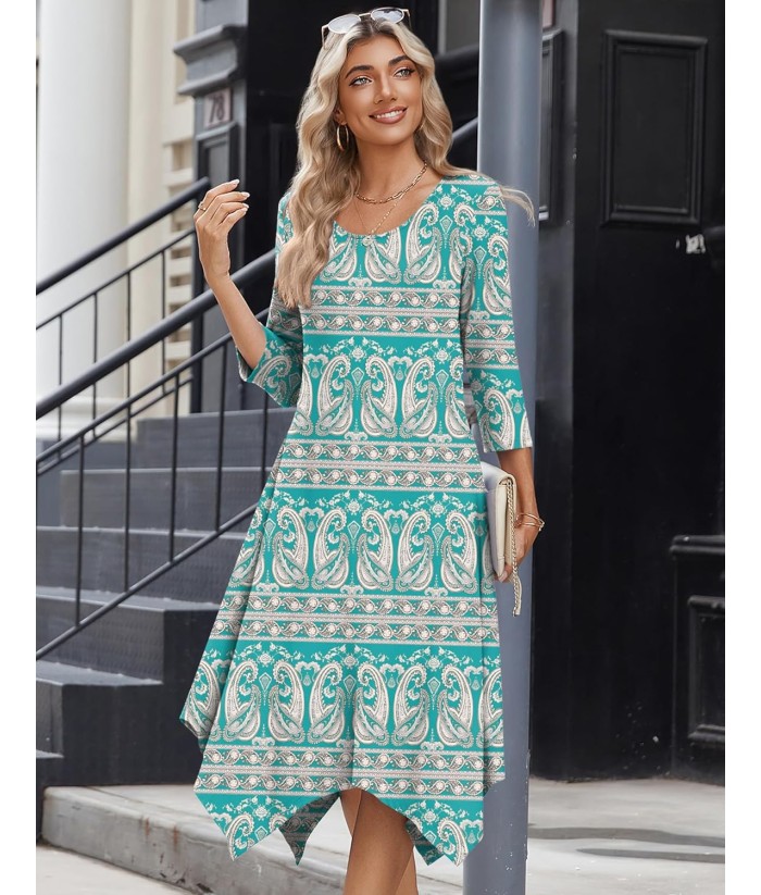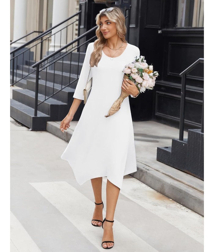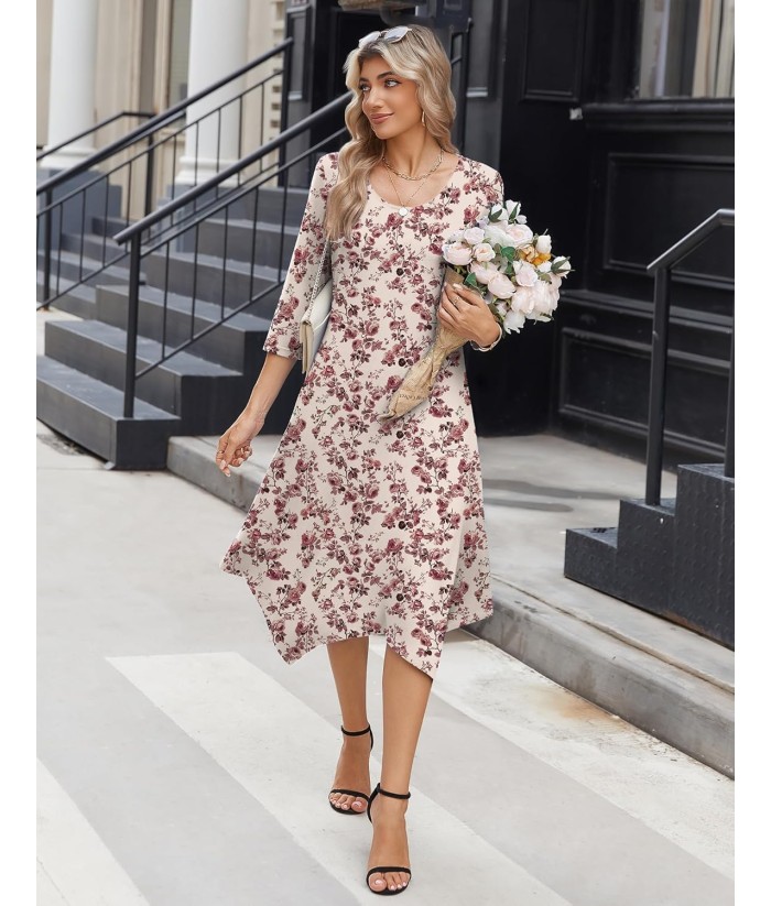 Zeagoo Midi Women 3/4 Sleeve Dress Casual Dresses with Pockets 2025 Fall A Line Dress Elegant Formal Modest Dresses