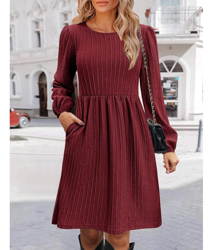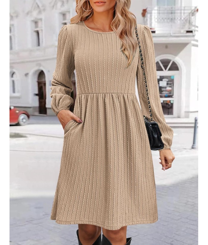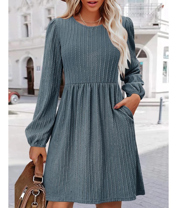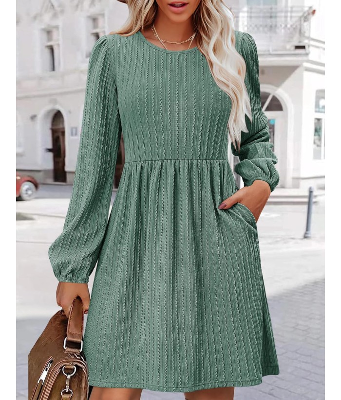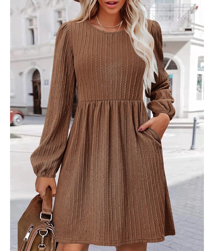 Zeagoo Women's Fall Sweater Dresses with Pockets Crew Neck Long Sleeve A-Line Dresses for Women 2025 Casual Winter Dresses