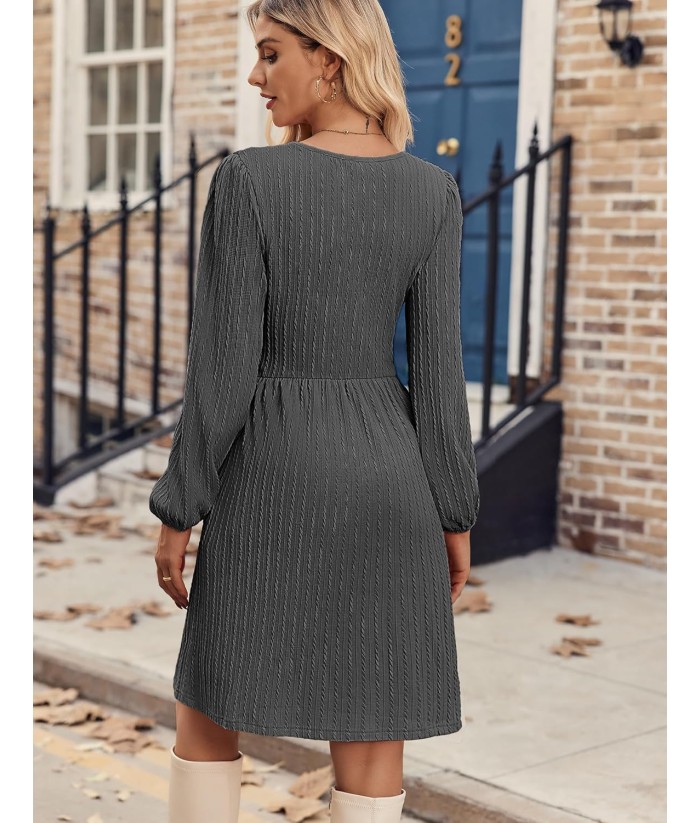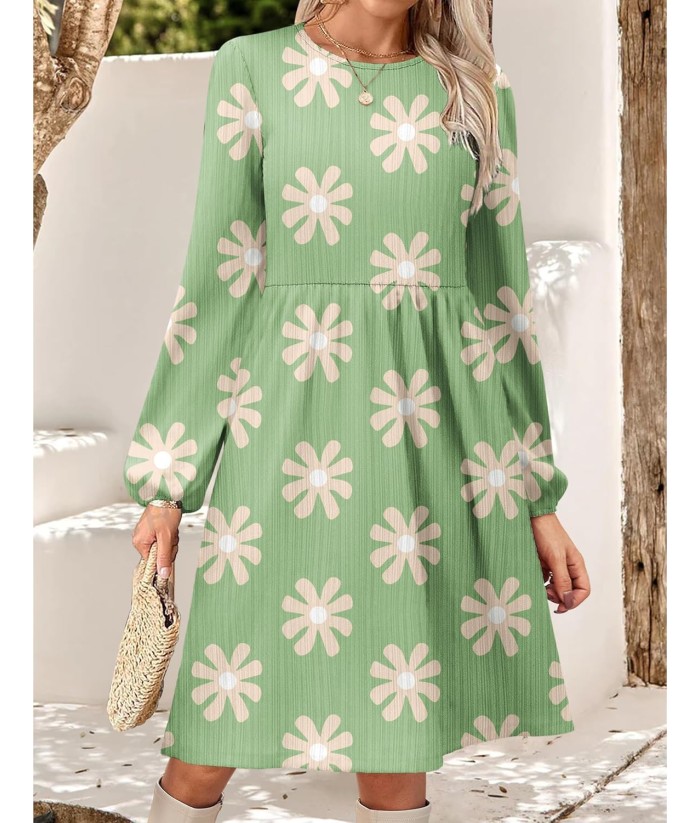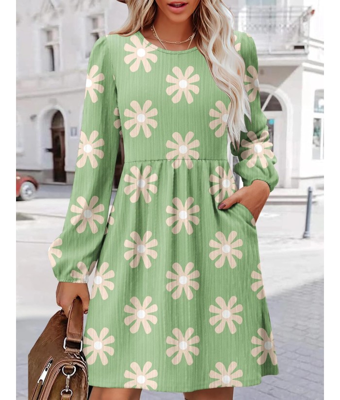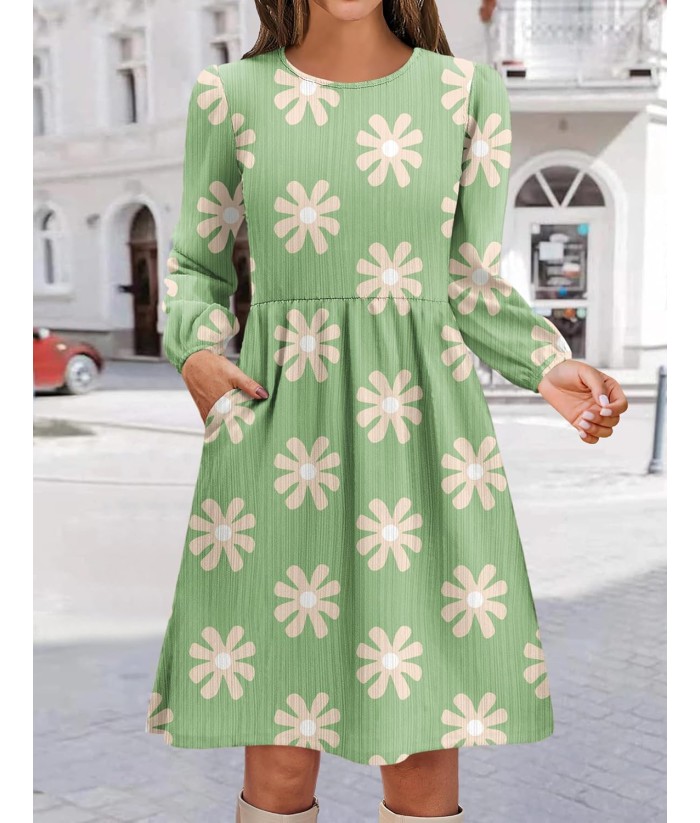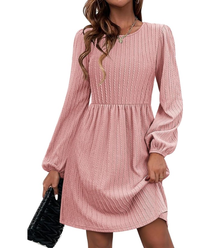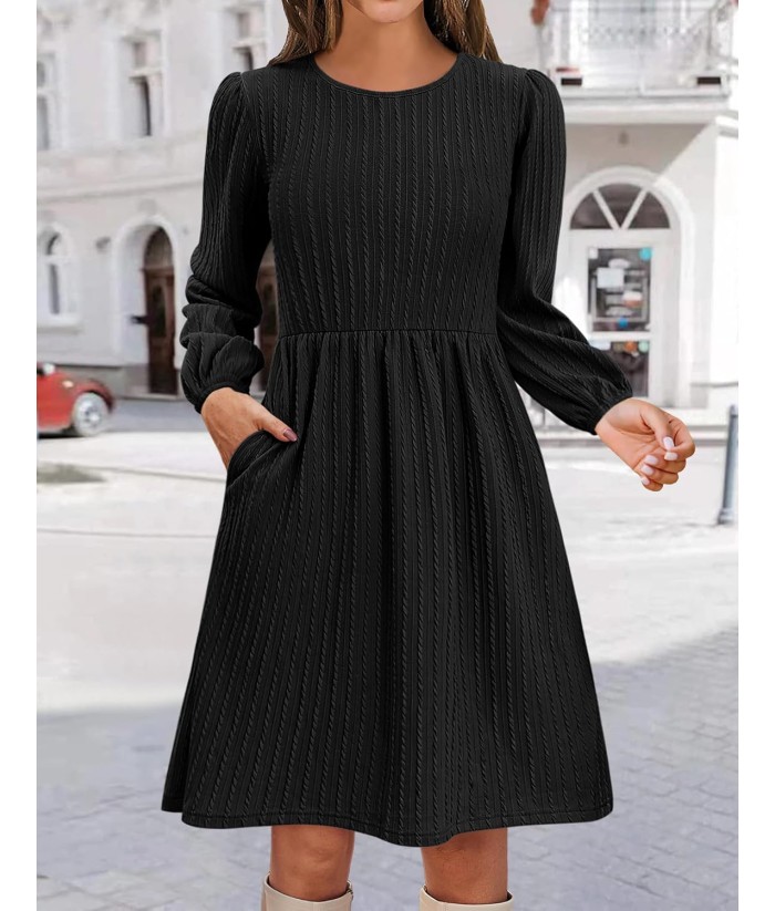 Zeagoo Women's Fall Sweater Dresses with Pockets Crew Neck Long Sleeve A-Line Dresses for Women 2025 Casual Winter Dresses