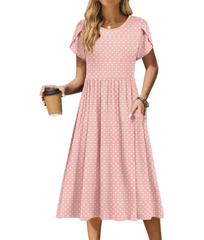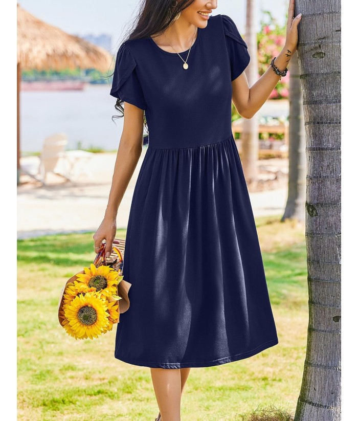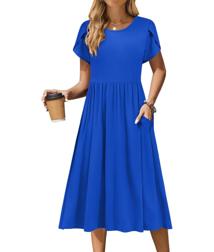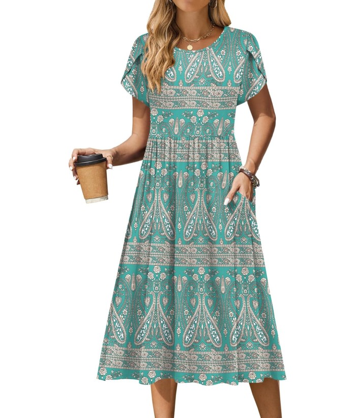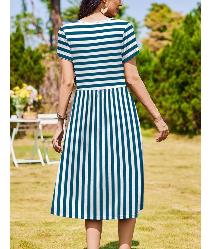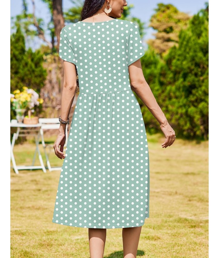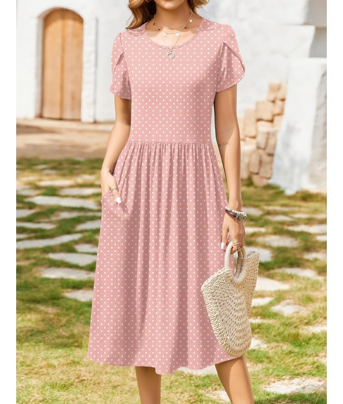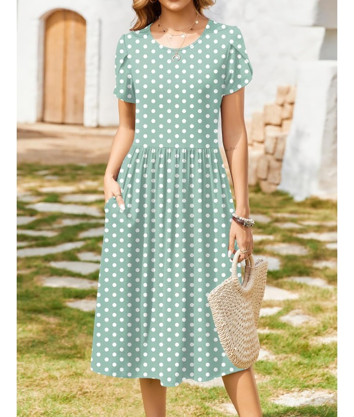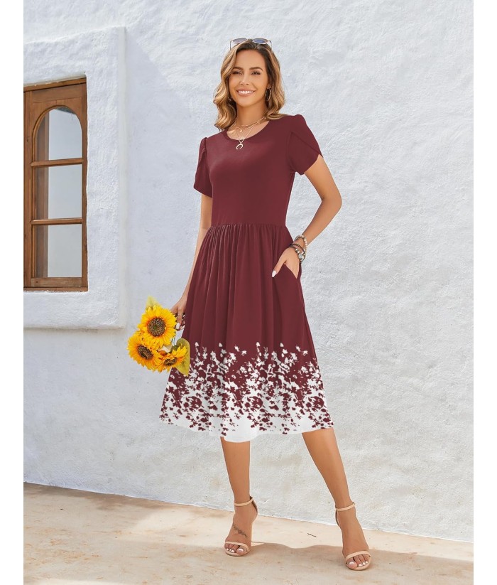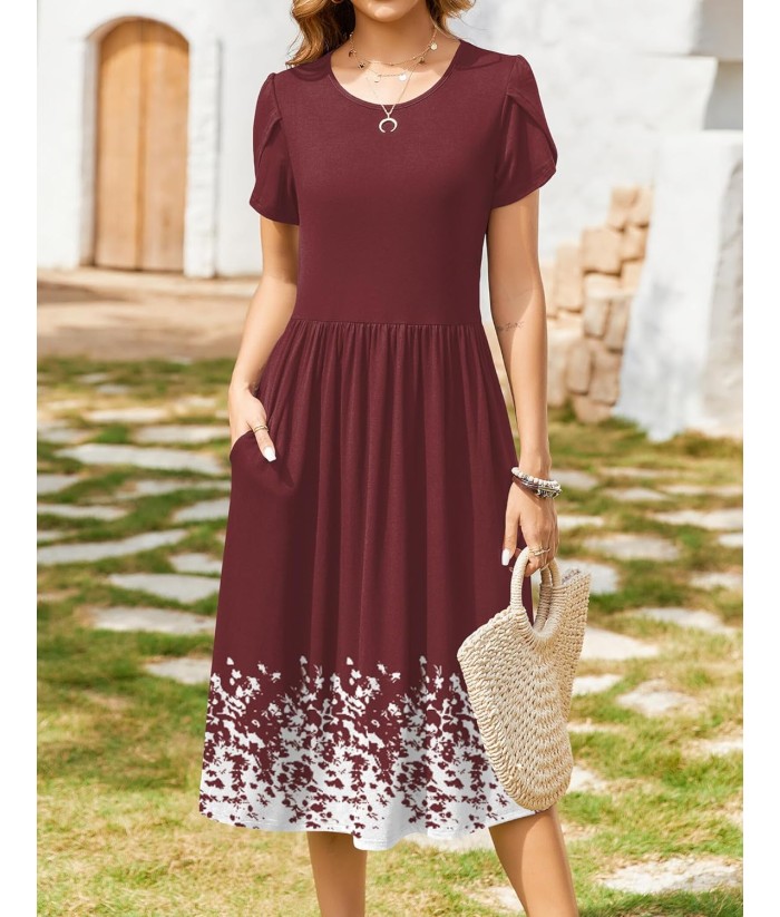 Zeagoo Women Summer Short Sleeve Midi Dress with Pockets Casual Aline Flowy Tshirt Dress Floral Vocation Beach Sundress