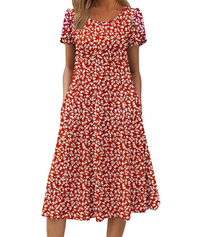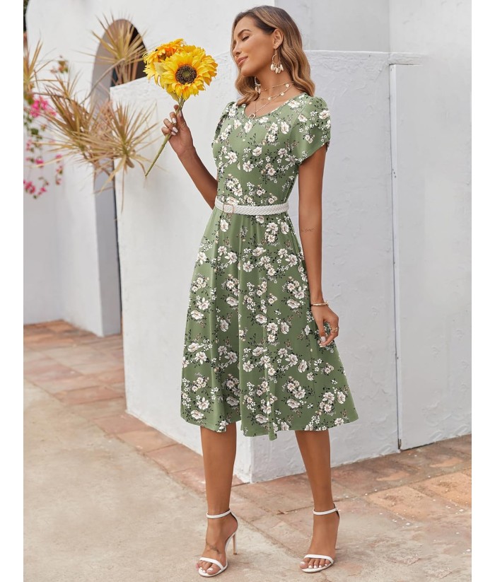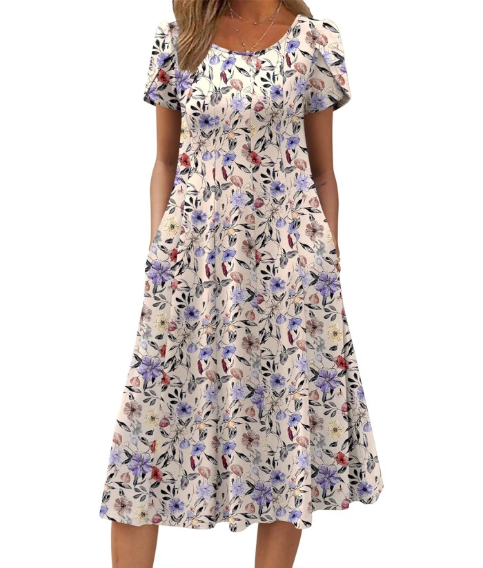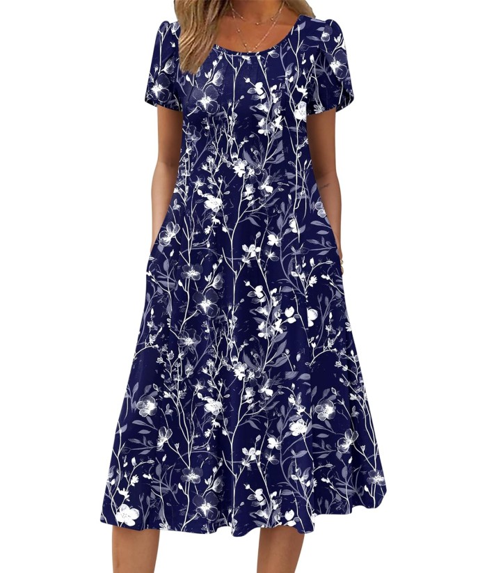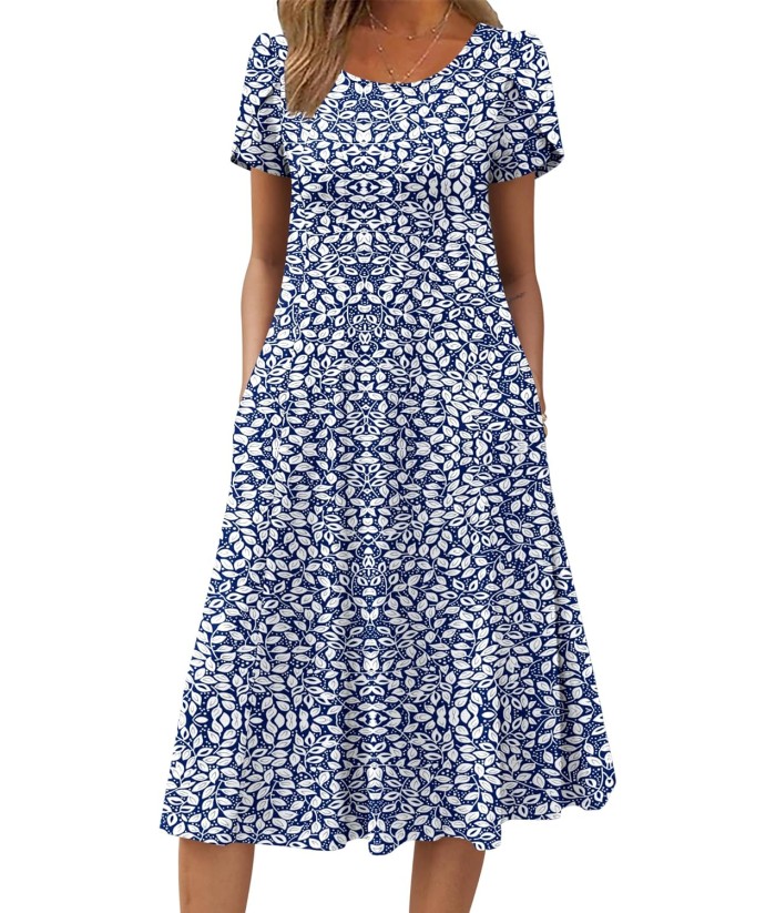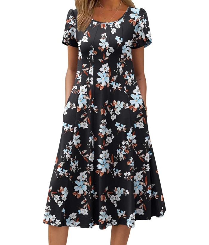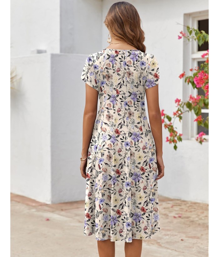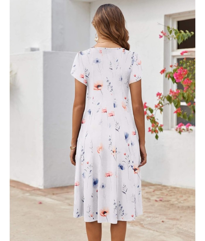 Zeagoo Womens Casual Dresses for Summer Short Sleeve Flare Midi Dress Loose Flowy Beach Sundress