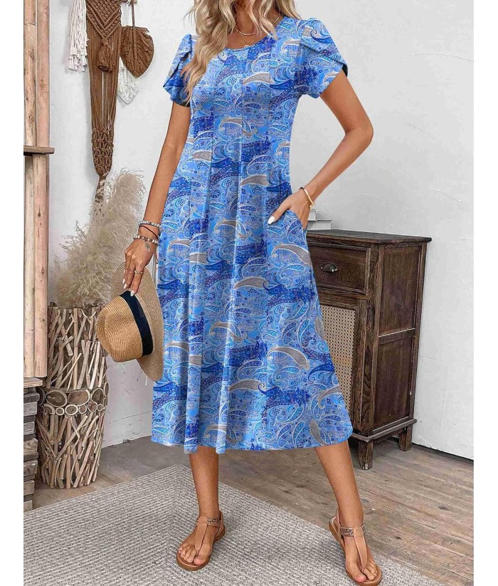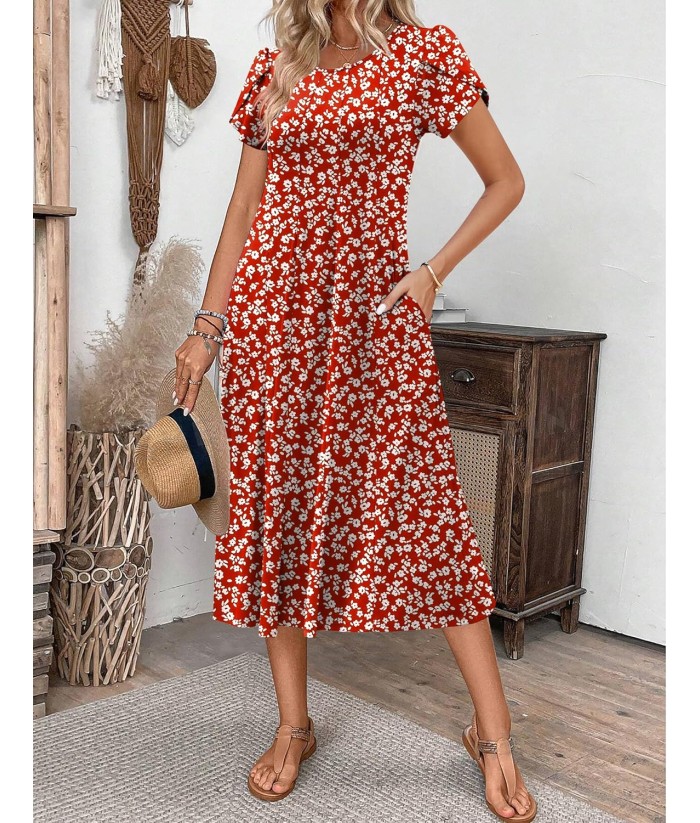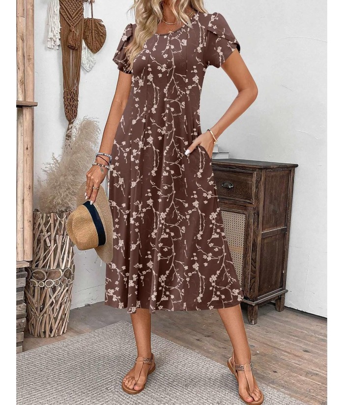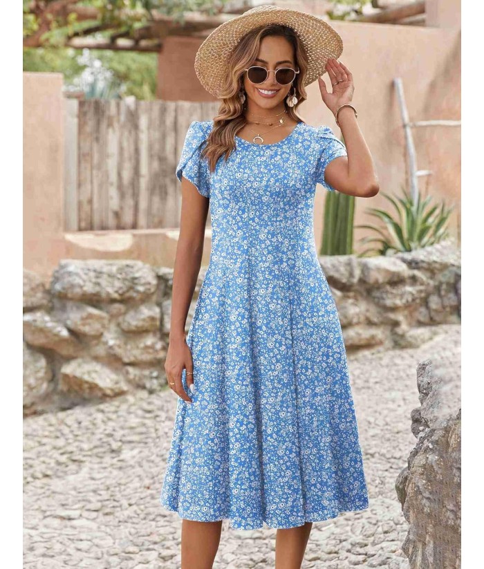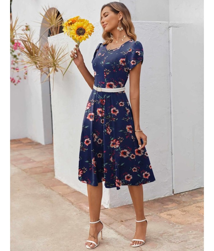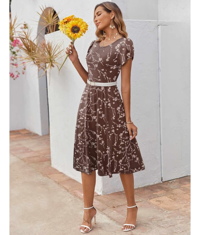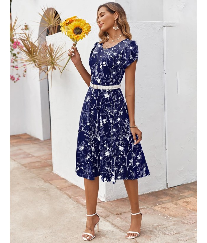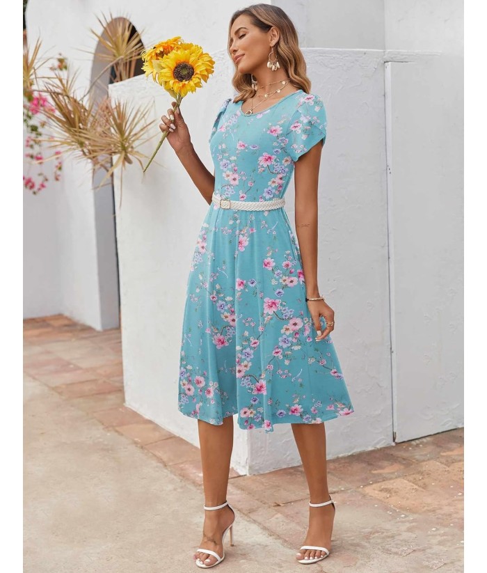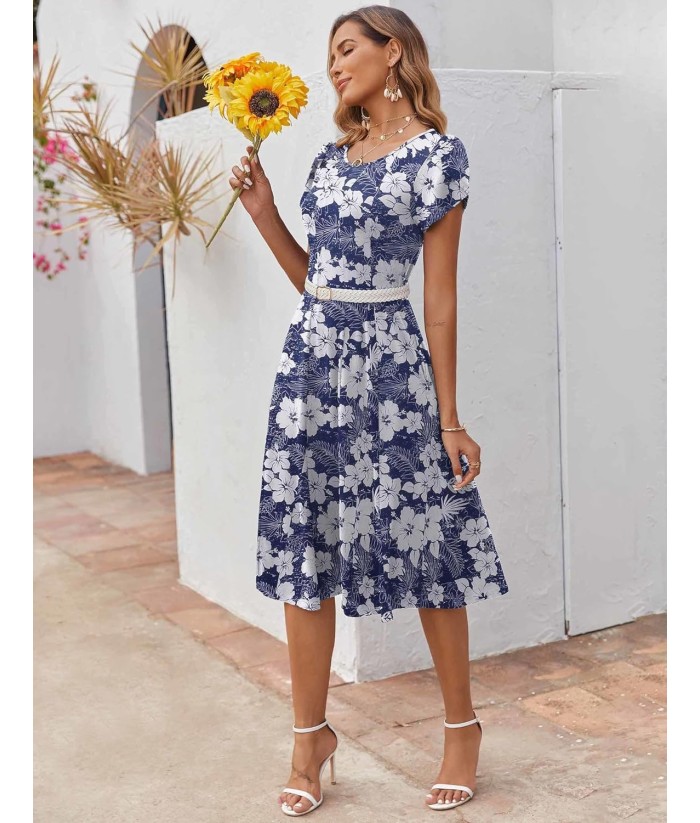 Zeagoo Womens Casual Dresses for Summer Short Sleeve Flare Midi Dress Loose Flowy Beach Sundress