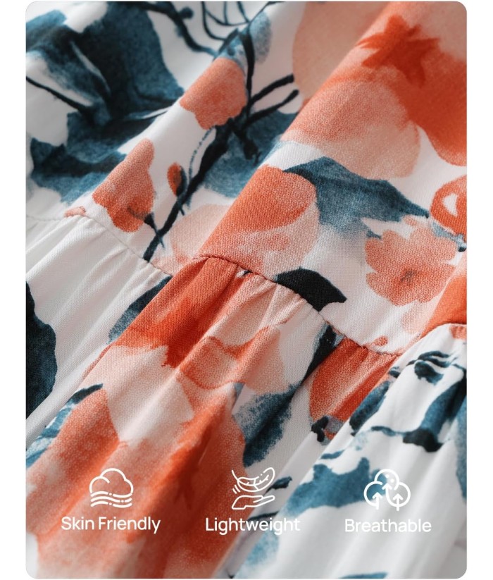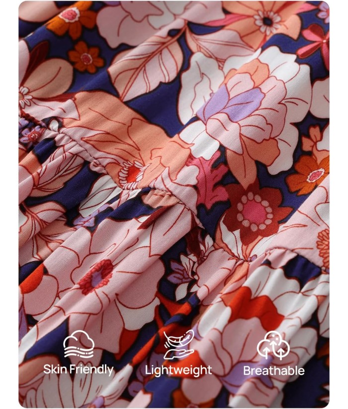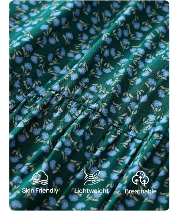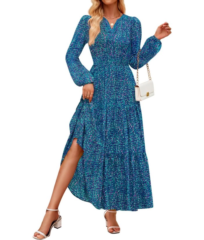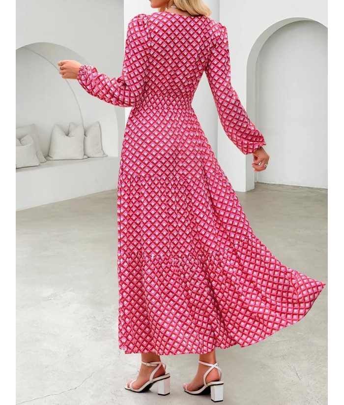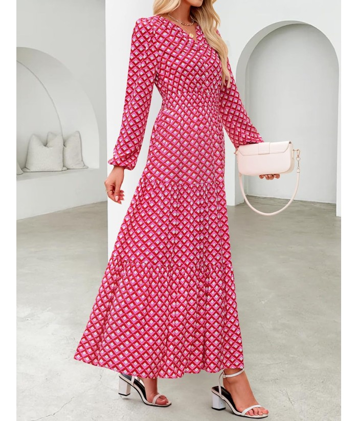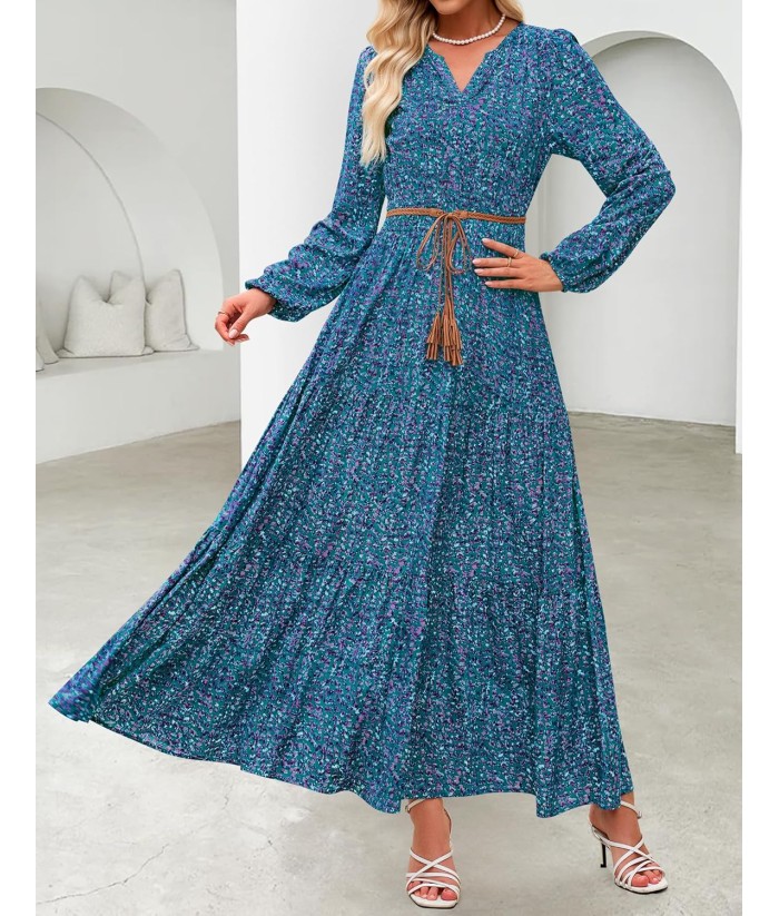 ZESICA Women's 2025 Fall Long Sleeve Maxi Dress Floral Print V Neck Empire Waist A Line Tiered Flowy Boho Party Dresses