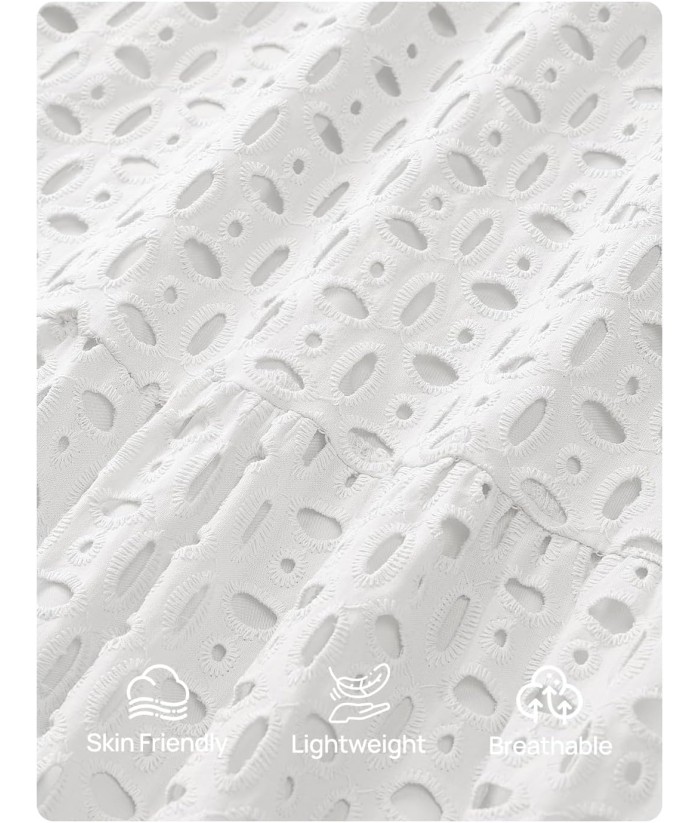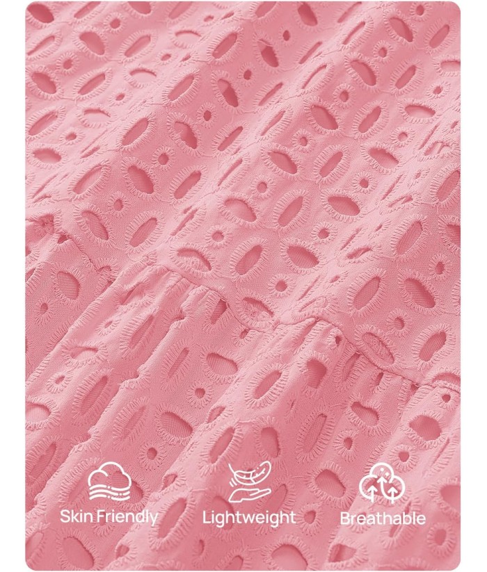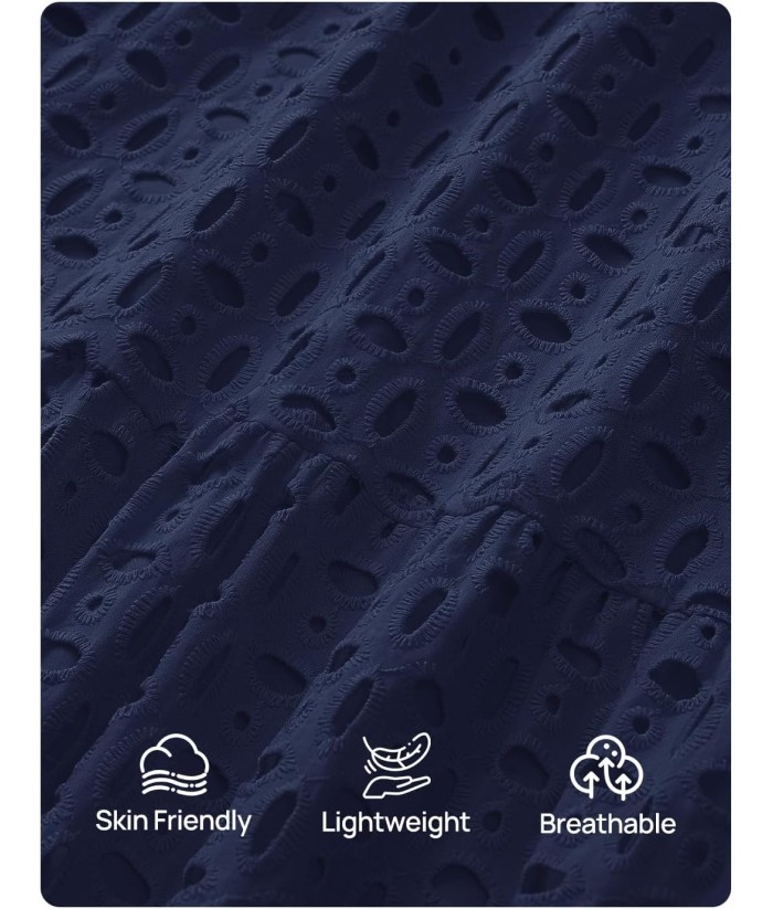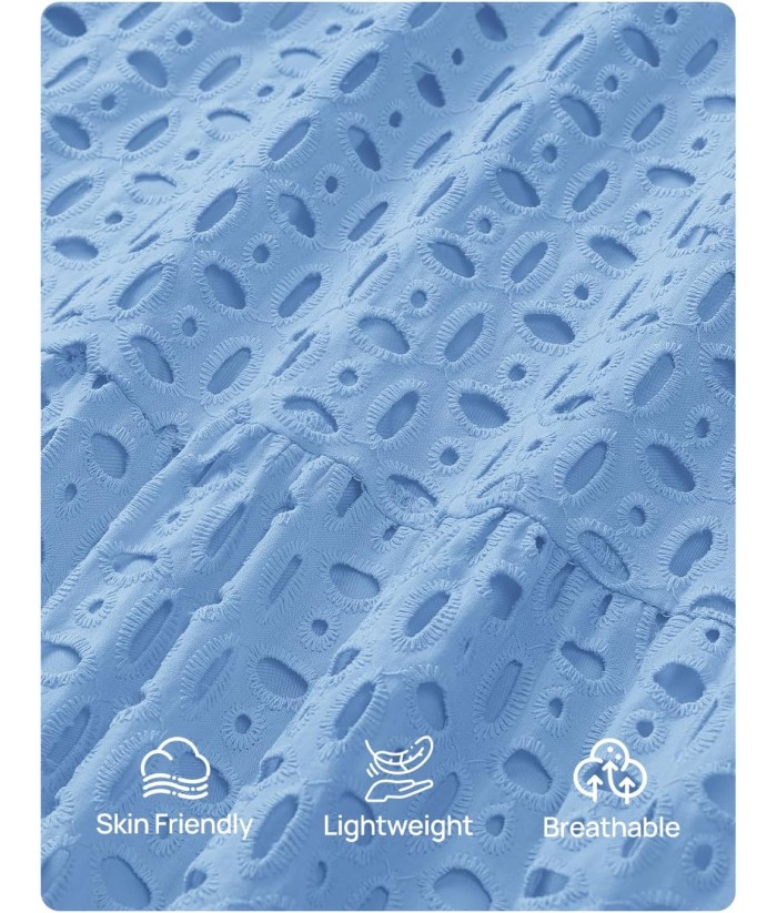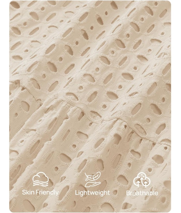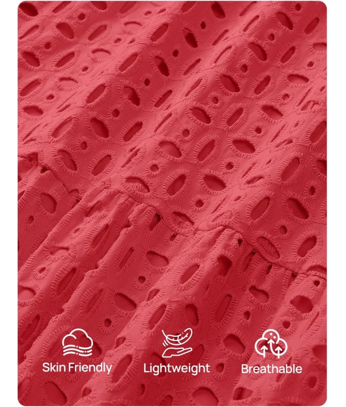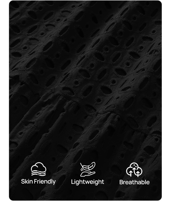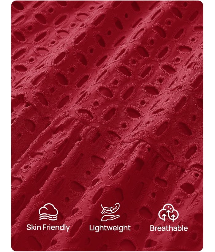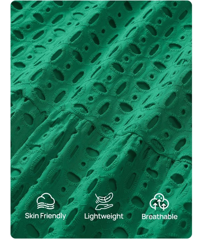 ZESICA Women's 2025 Fall Long Sleeve Maxi Dress V Neck Hollow Out Eyelet A Line Long Flowy Casual Party Dresses