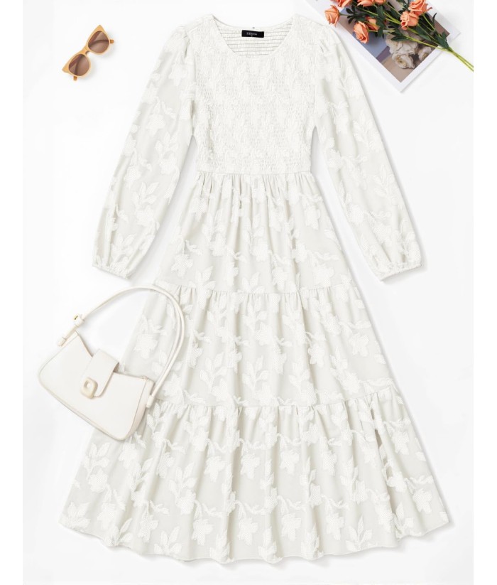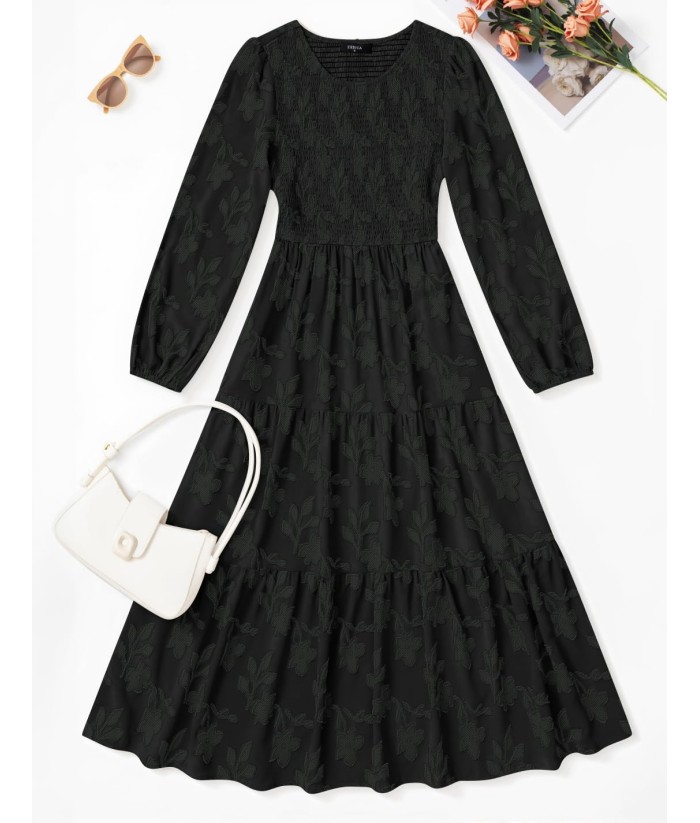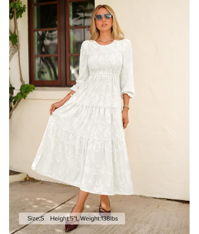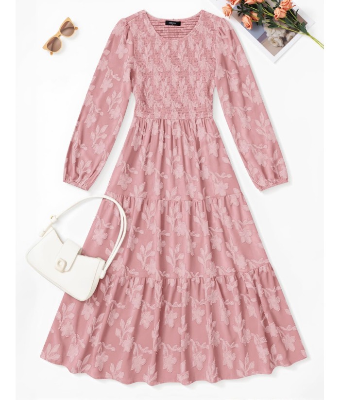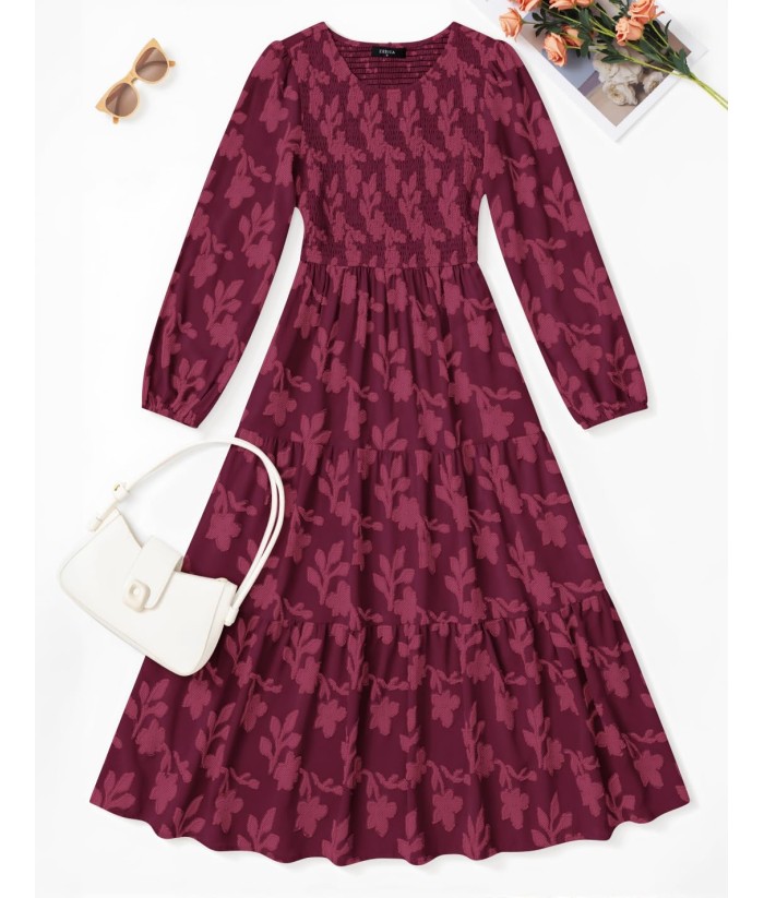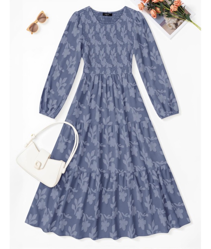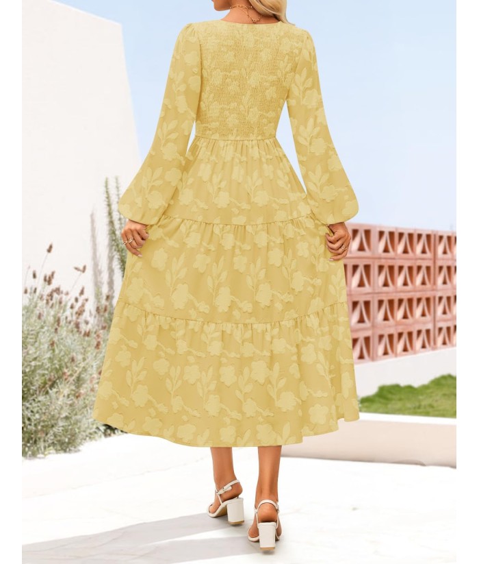 ZESICA Women's Fall Boho Floral Midi Dress 2025 Casual Long Sleeve Crewneck Flowy Wedding Guest Long Dresses