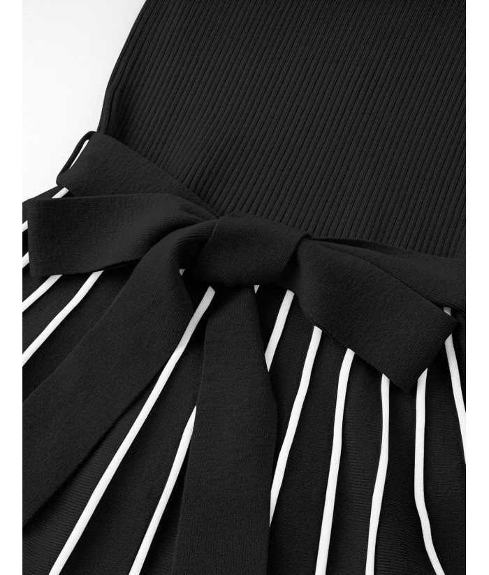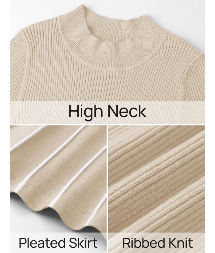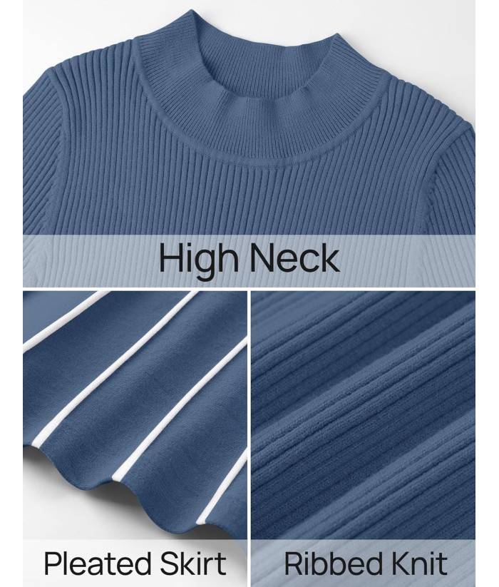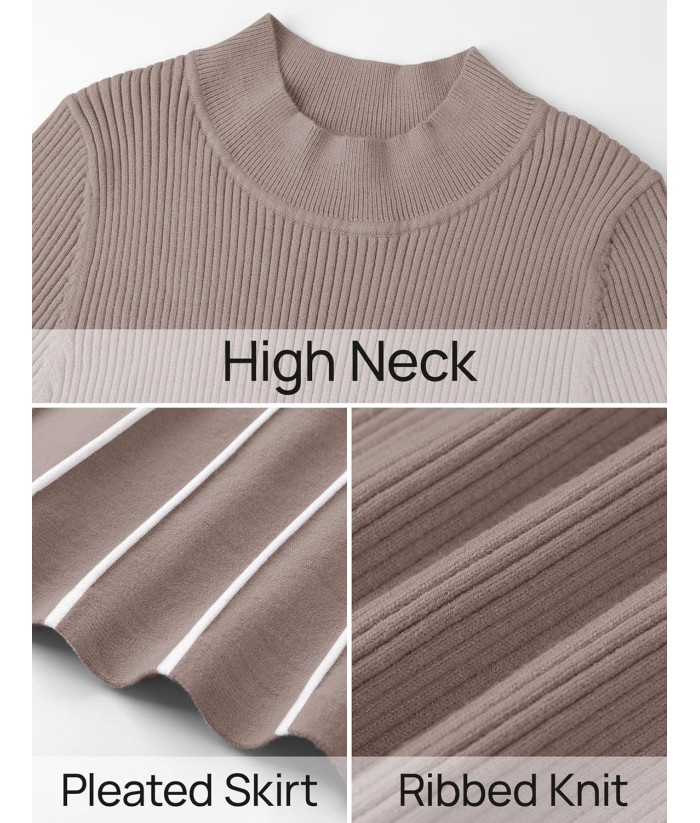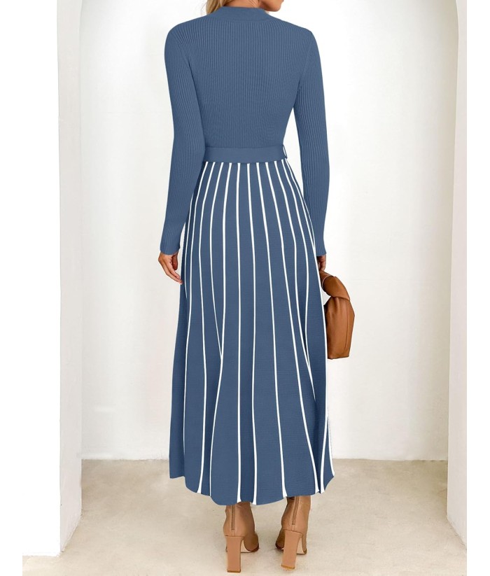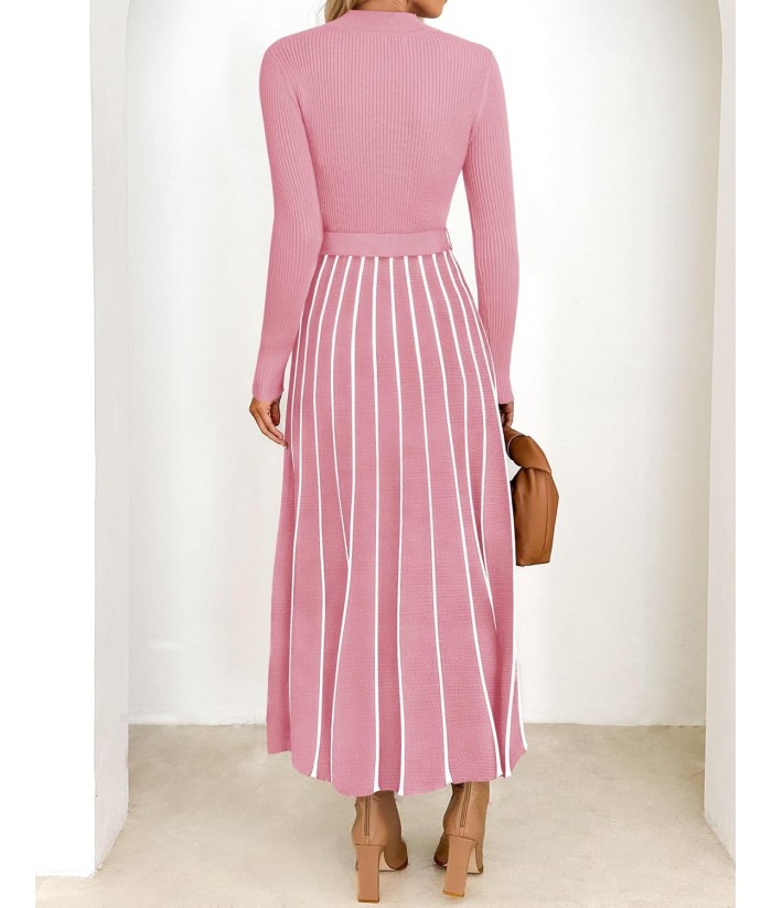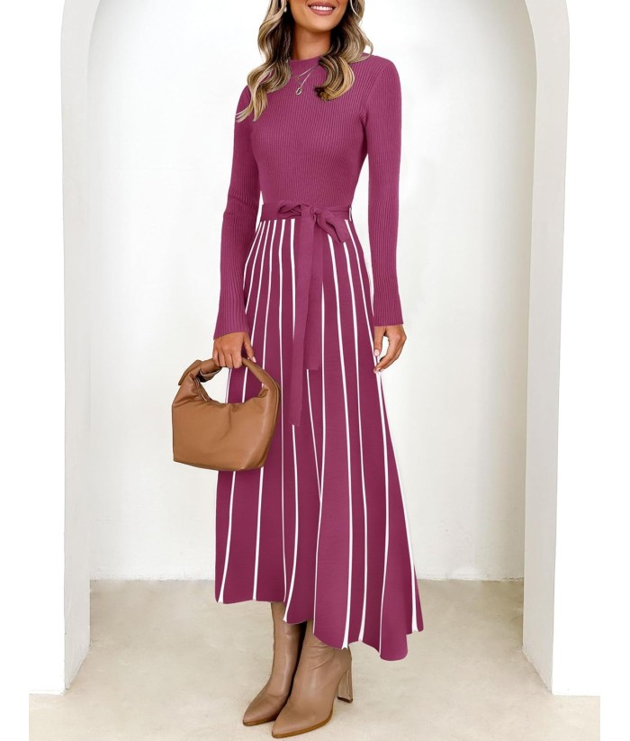 ZESICA Womens 2025 Fall Turtleneck Long Sleeve Sweater Dress Tie Waist Casual Loose Ribbed Knit A Line Midi Dresses